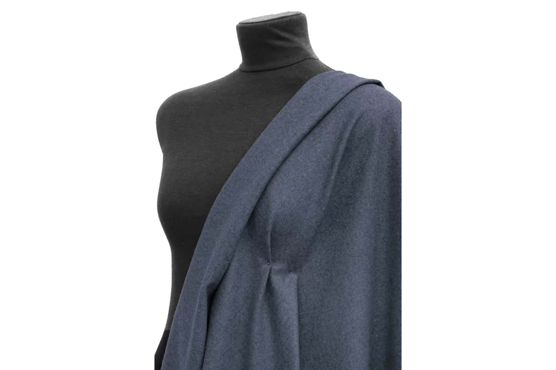 Очень классная костюмная шерстяная фланель дымчато-голубого оттенка. Тактильно очень приятная, мягкая, слегка суховатая, немного колется. Примерно 0,6 мм толщиной. С легким ворсом с двух сторон. Немножко тянется и не просвечивает. Не мнется, . Пластичная. Хорошо драпируется и неплохо держит форму. Отлично подойдет на теплые костюмы, жакеты или теплые рубашки. Уход деликатный.