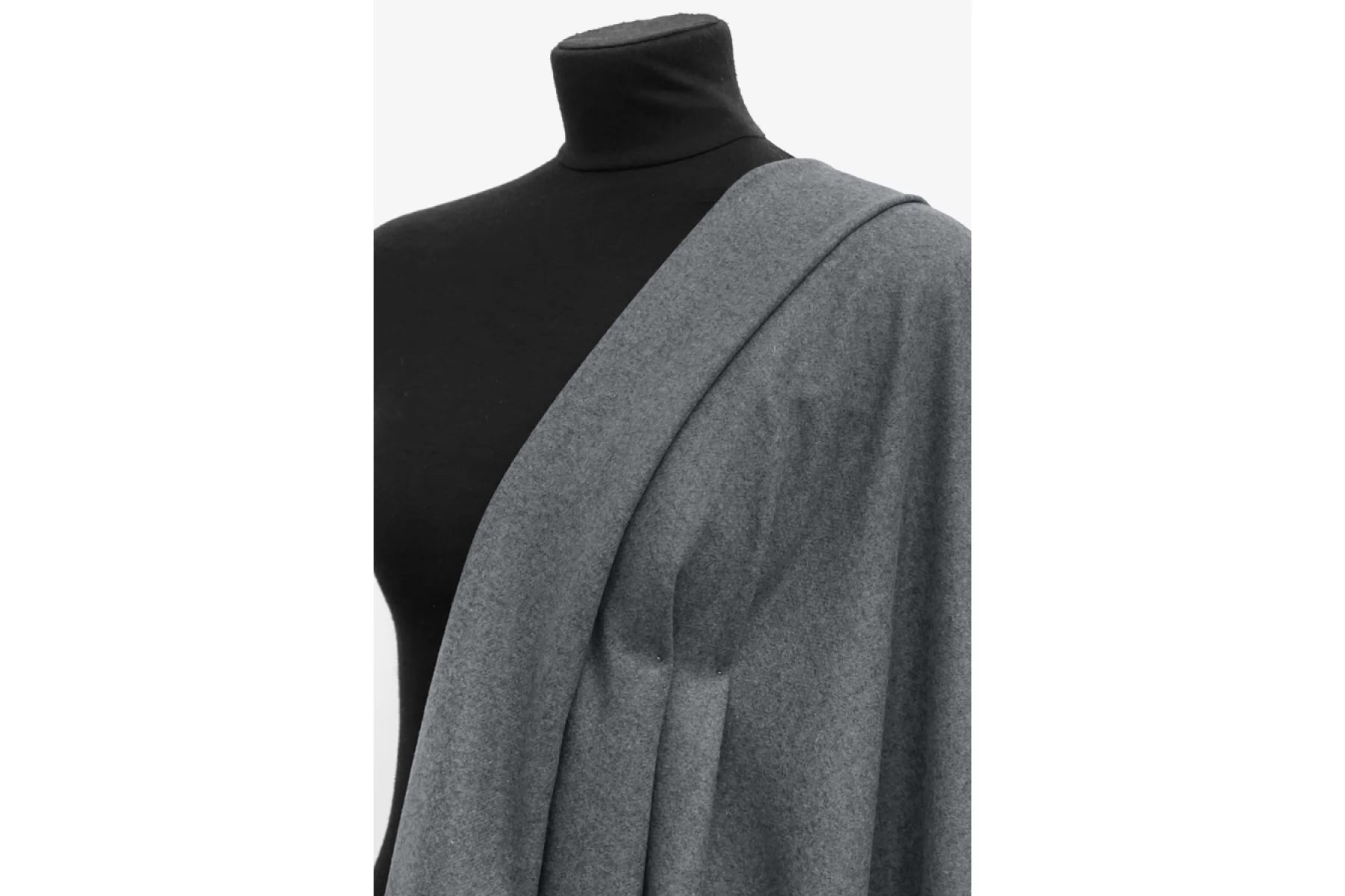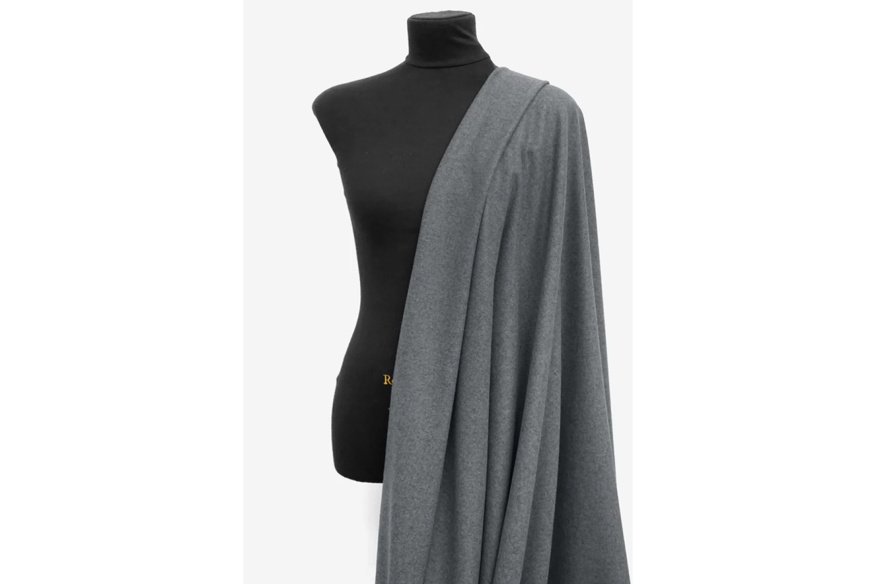 Очень классная костюмная шерстяная фланель серо-голубого оттенка. Тактильно очень приятная, мягкая, слегка суховатая, немного колется. Примерно 0,6 мм толщиной. С легким ворсом с двух сторон. Немножко тянется и не просвечивает. Не мнется, . Пластичная. Хорошо драпируется и неплохо держит форму. Отлично подойдет на теплые костюмы, жакеты или теплые рубашки. Уход деликатный.