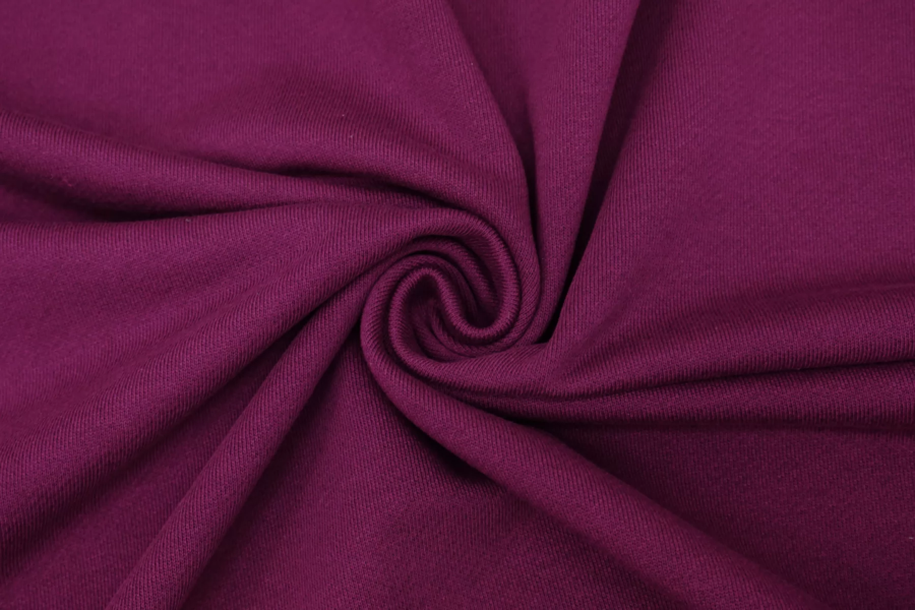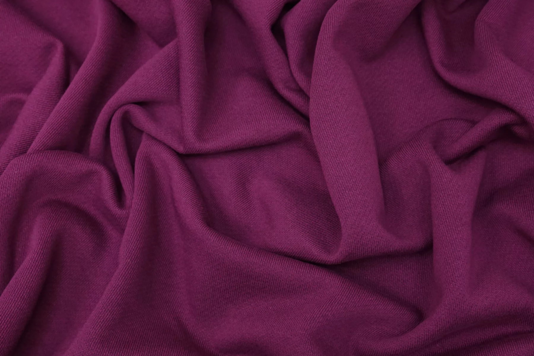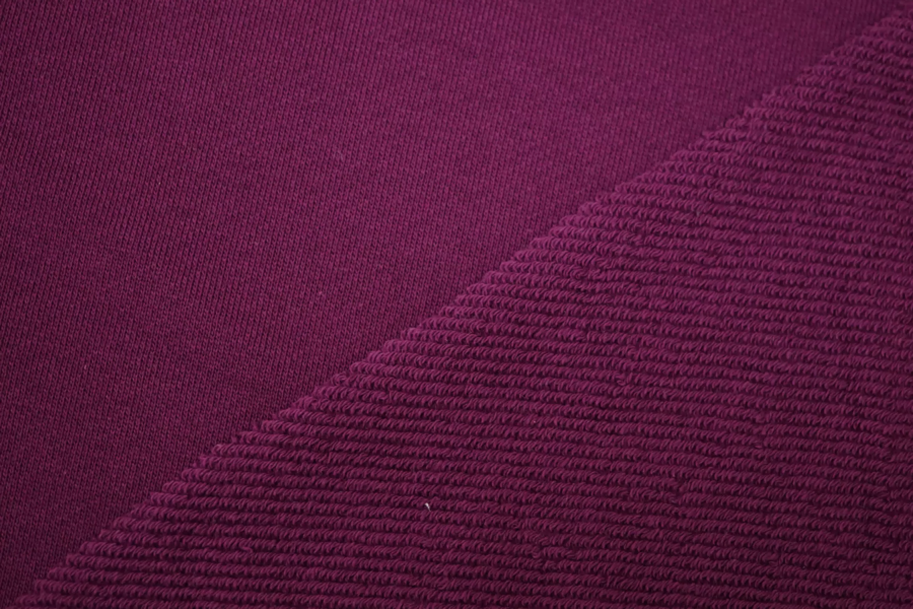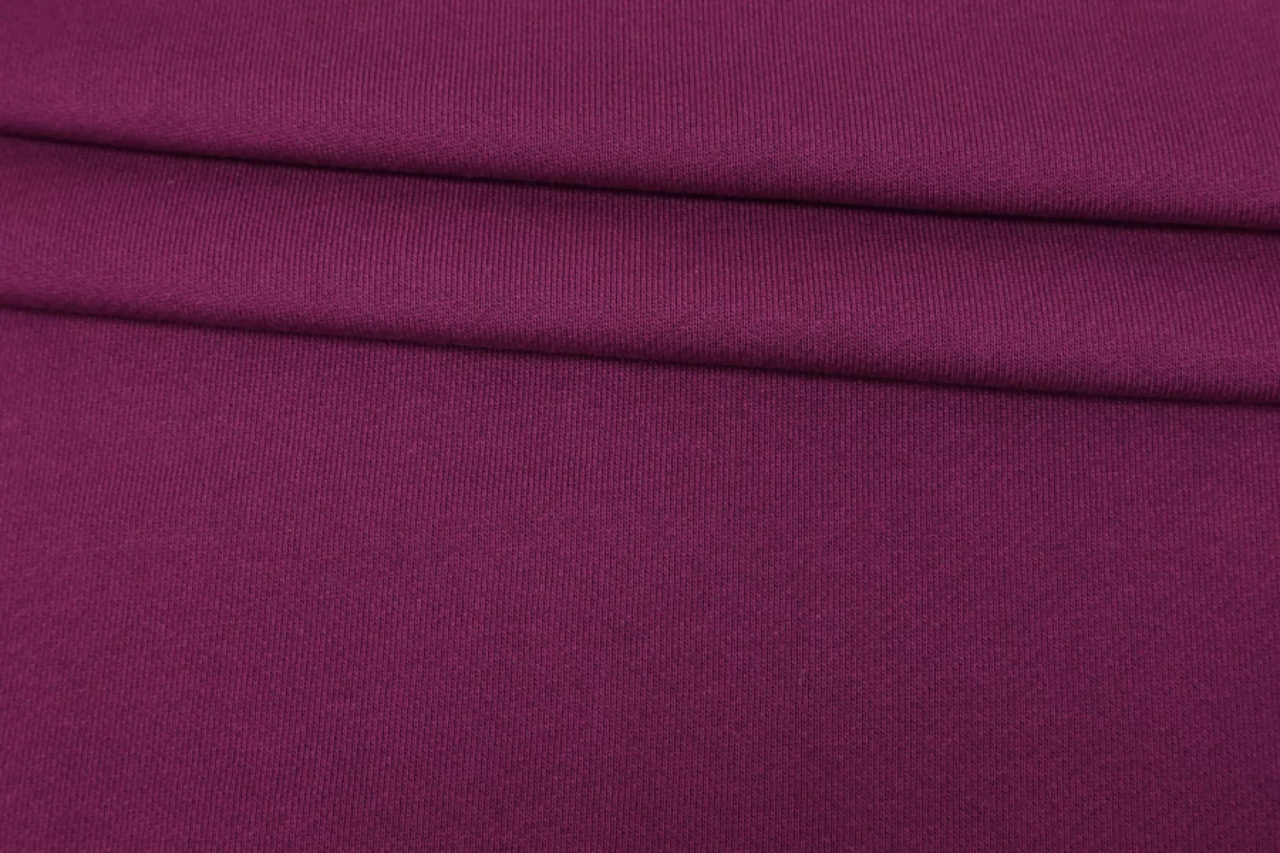 ВНИМАНИЕ!! Встречаются небольшие пятна и полосы см. фото. Отличного качества хлопковый футер в красивом насыщенном баклажановом оттенке, изнаночная сторона в диагональную петельку. Материал приятный наощупь. Средней плотности, мягкий, пластичный. Неплохо тянется. Слегка сминается, но восстанавливается. Отличный вариант для спортивных костюмов, свитшотов, худи или спортивных брюк.