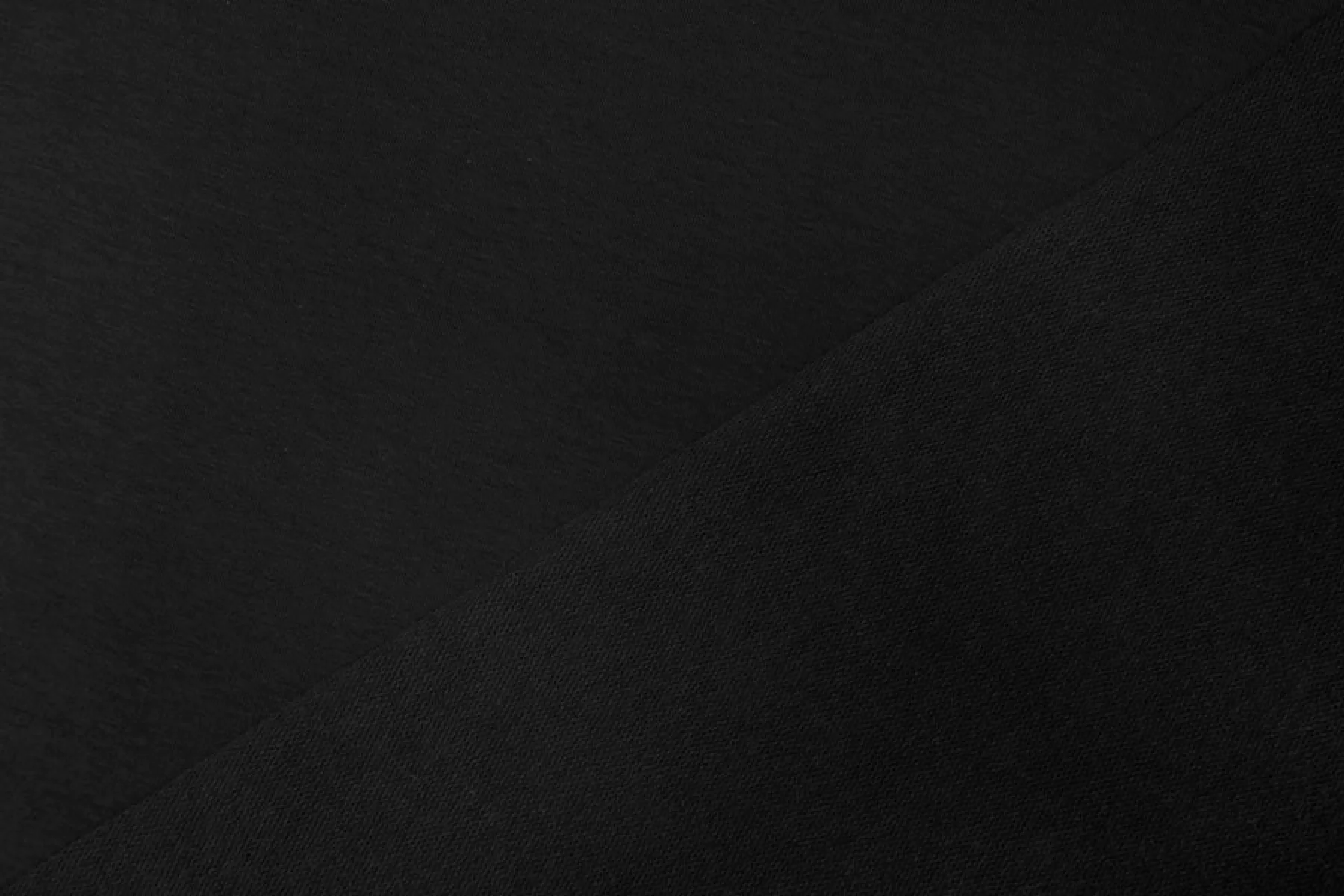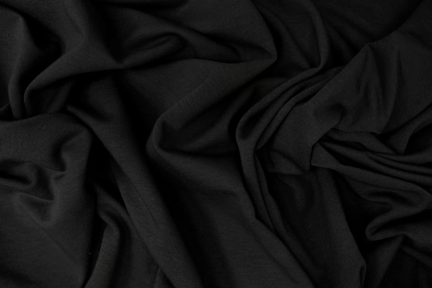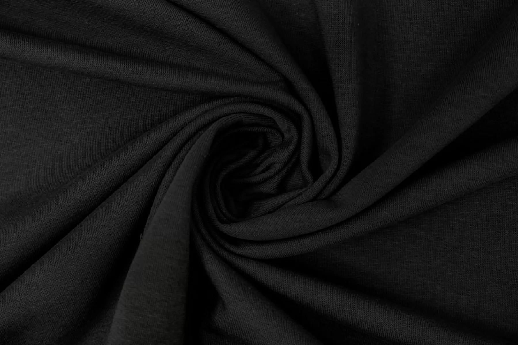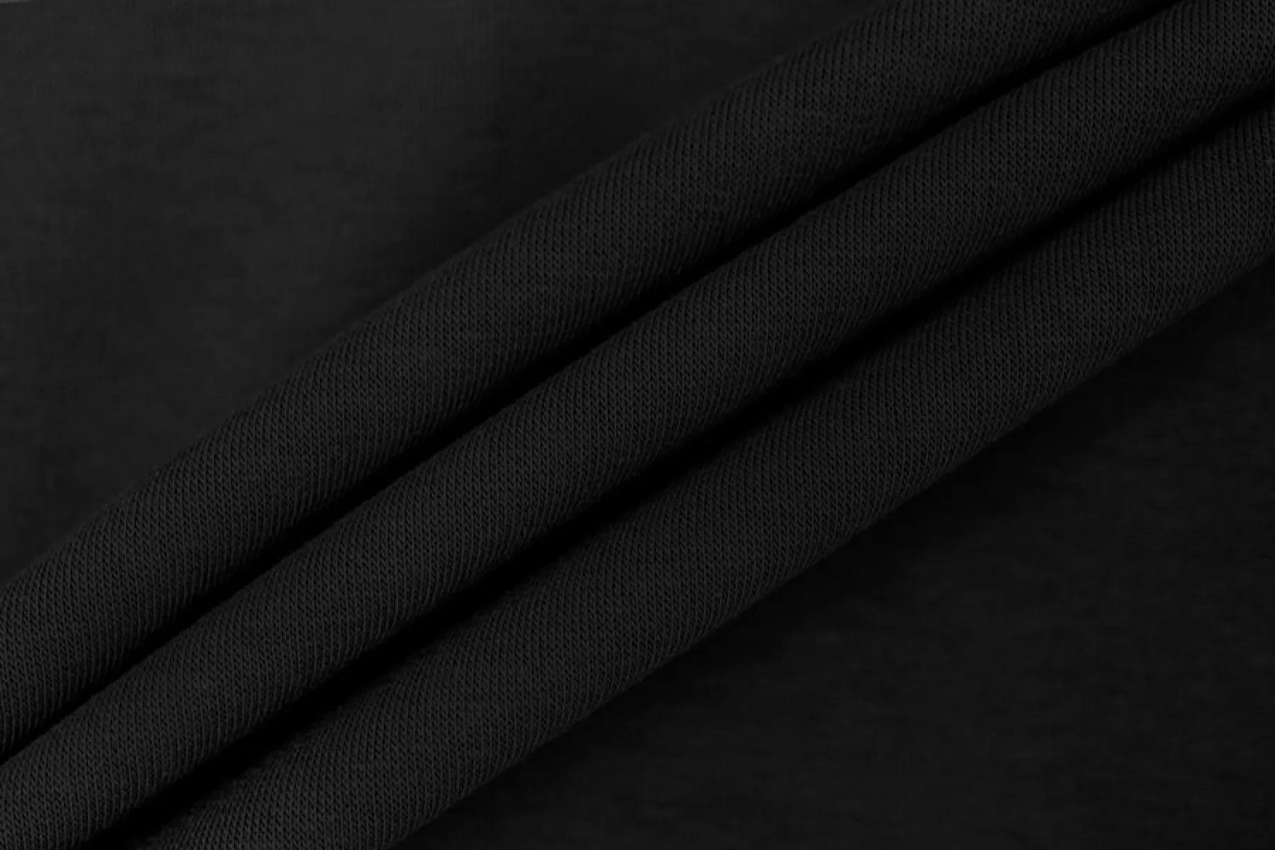 Прекрасный италянский хлопковый футер петля 2-х нитка тонкий в классическом черном цвете. Очень приятный и мягкий наощупь. Хорошо тянется. Не просвечивает. Держит форму, при этом пластичный. Отличный вариант на теплые комфортные спортивные и домашние костюмы, а также платья, лонгсливы, свитшоты, штаны или шорты.