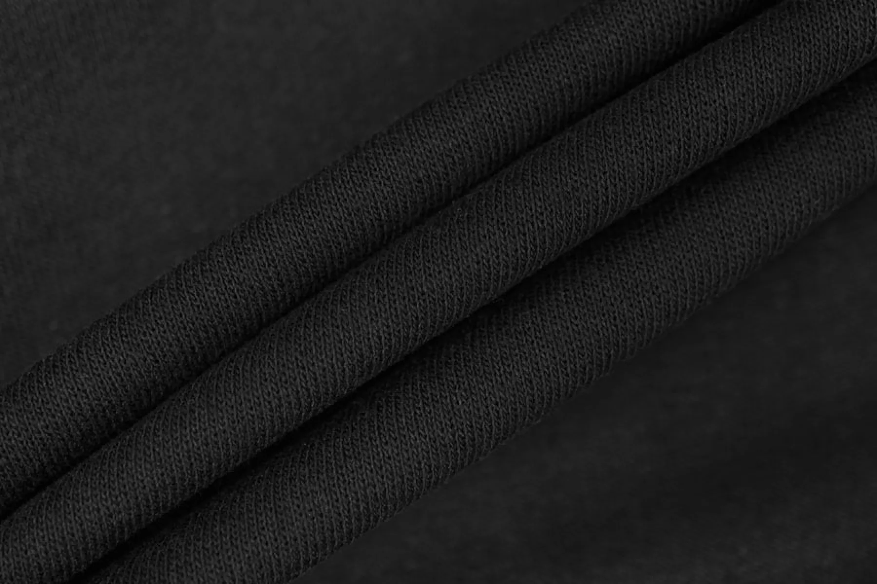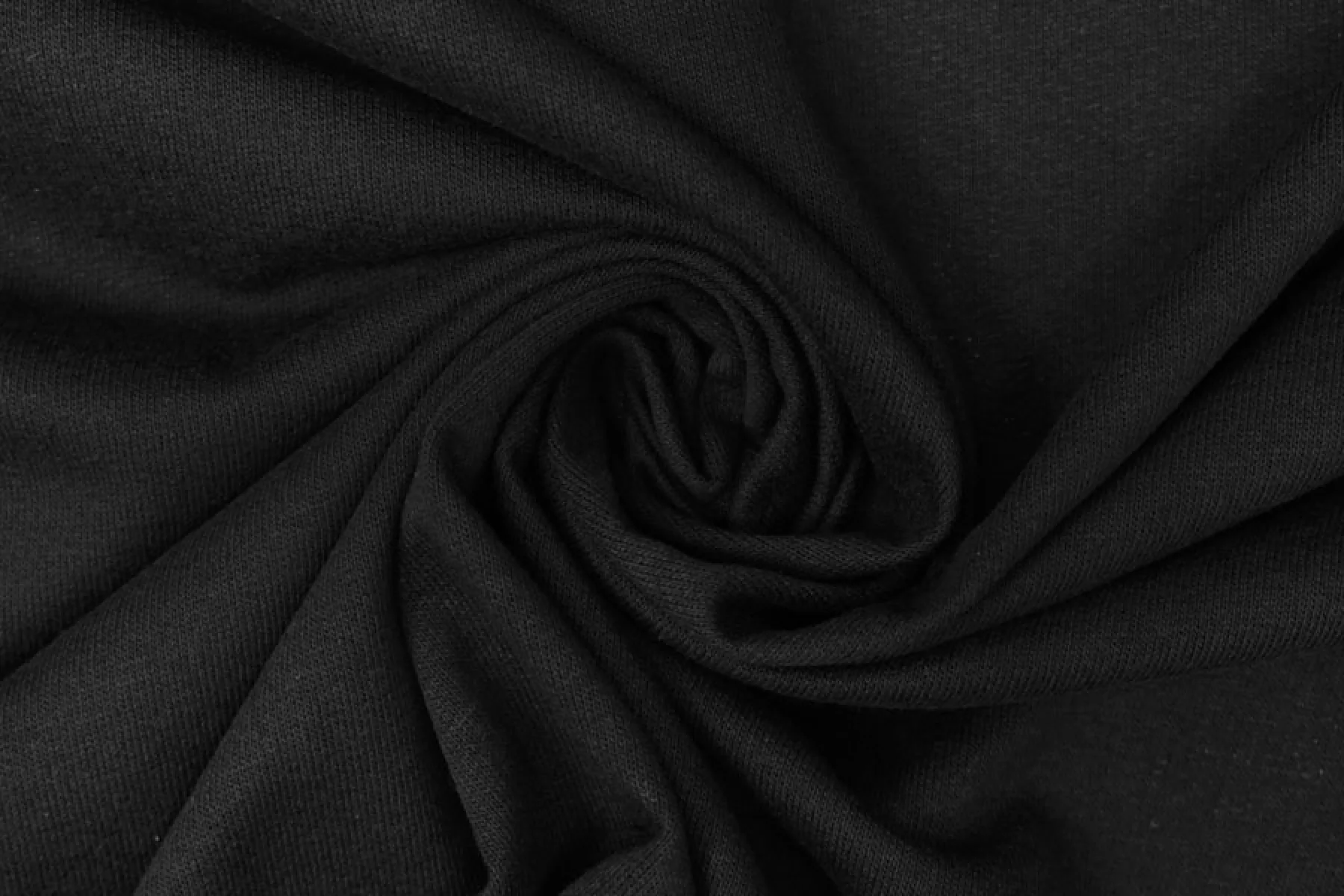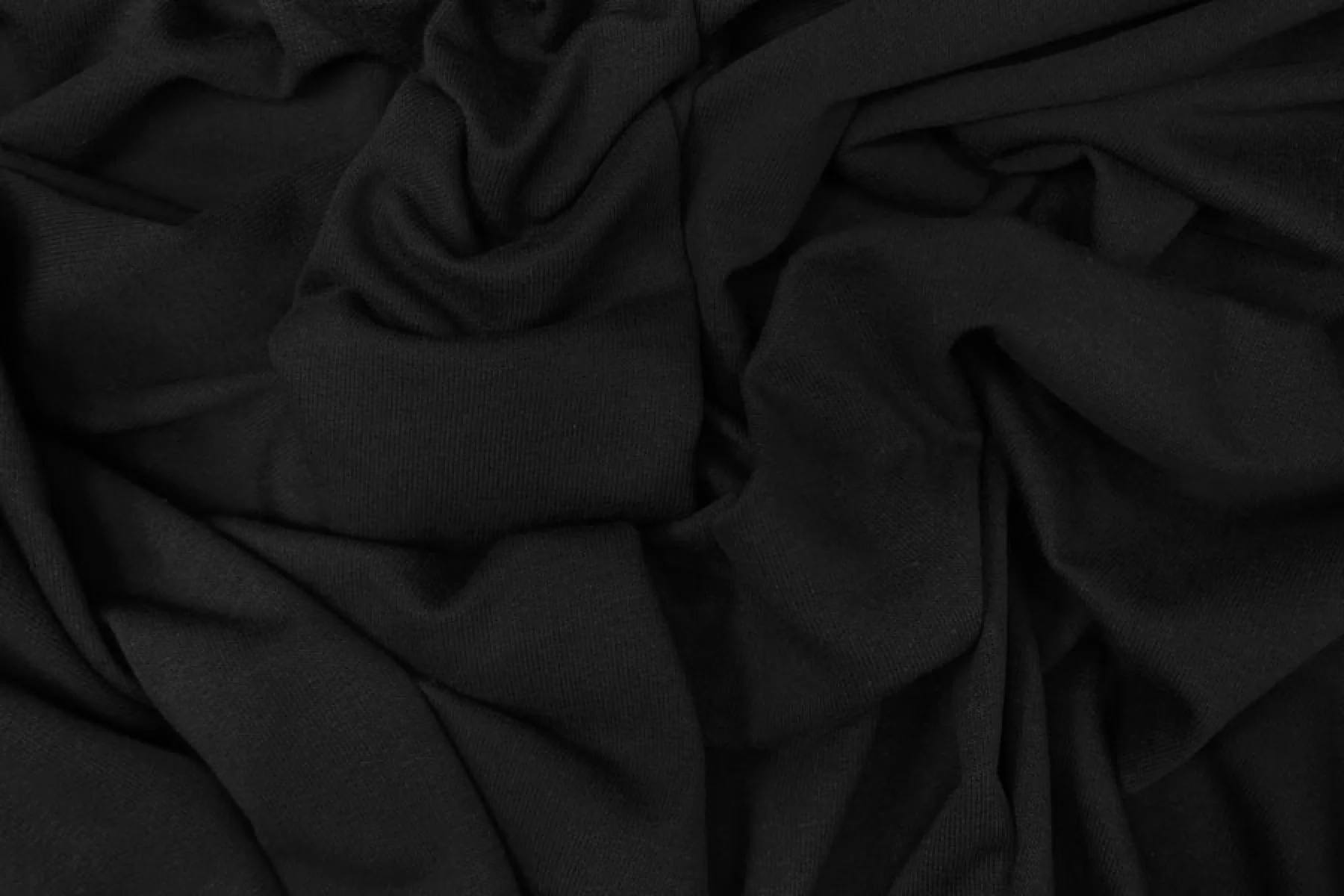 Прекрасный италянский хлопковый футер петля 2-х нитка тонкий в классическом черном цвете. Очень приятный и мягкий наощупь. Хорошо тянется. Не просвечивает. Держит форму, при этом пластичный. Отличный вариант на теплые комфортные спортивные и домашние костюмы, а также платья, лонгсливы, свитшоты, штаны или шорты.