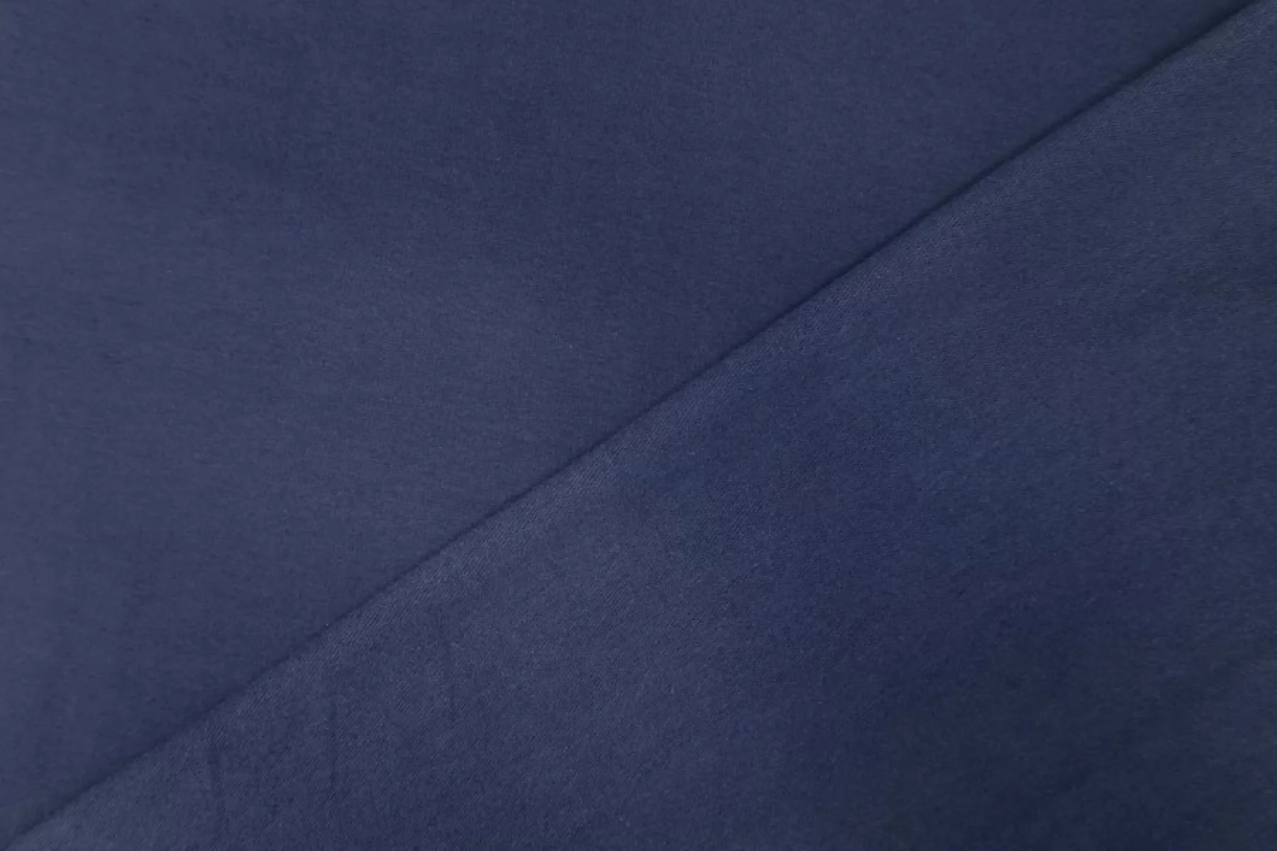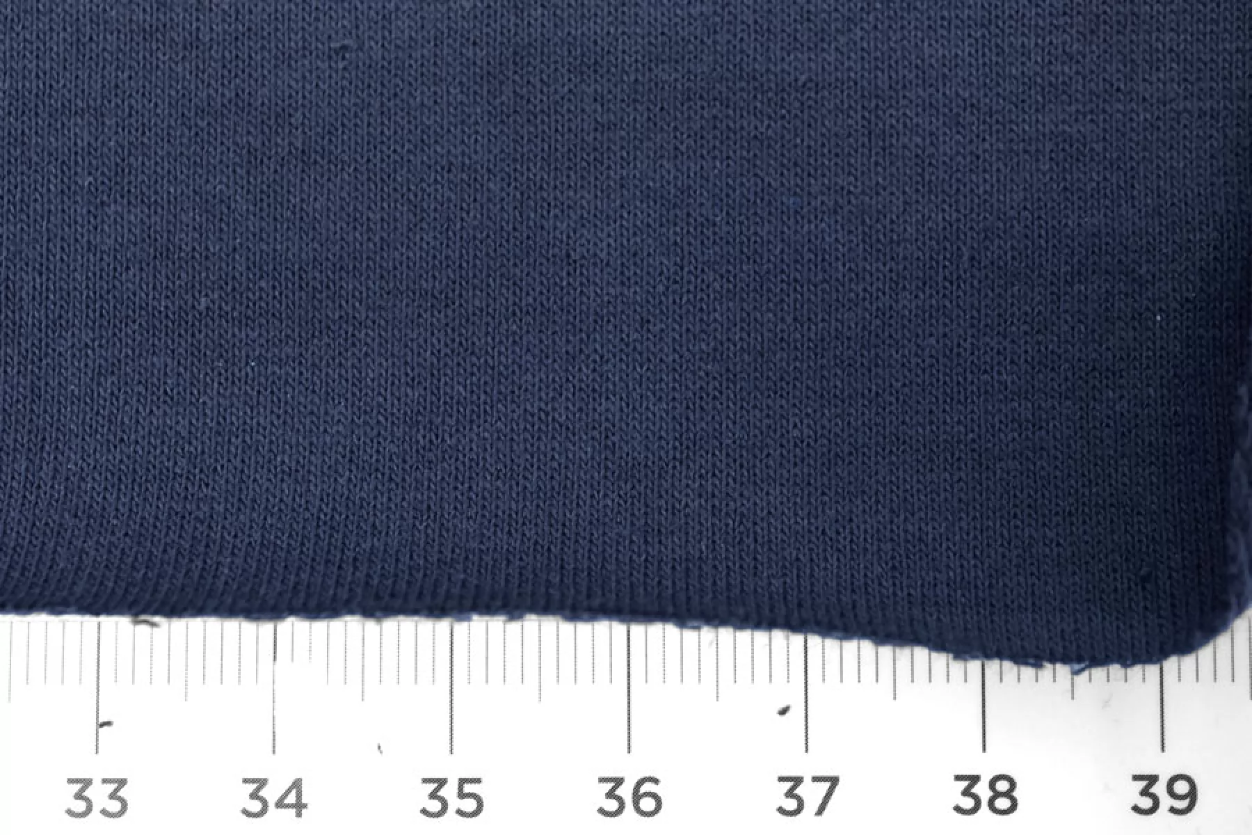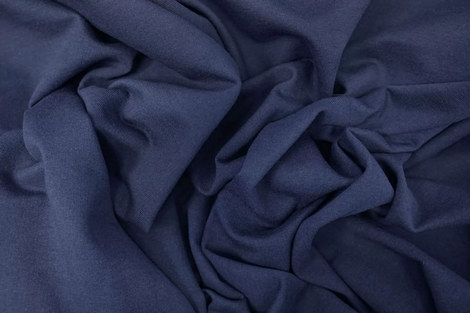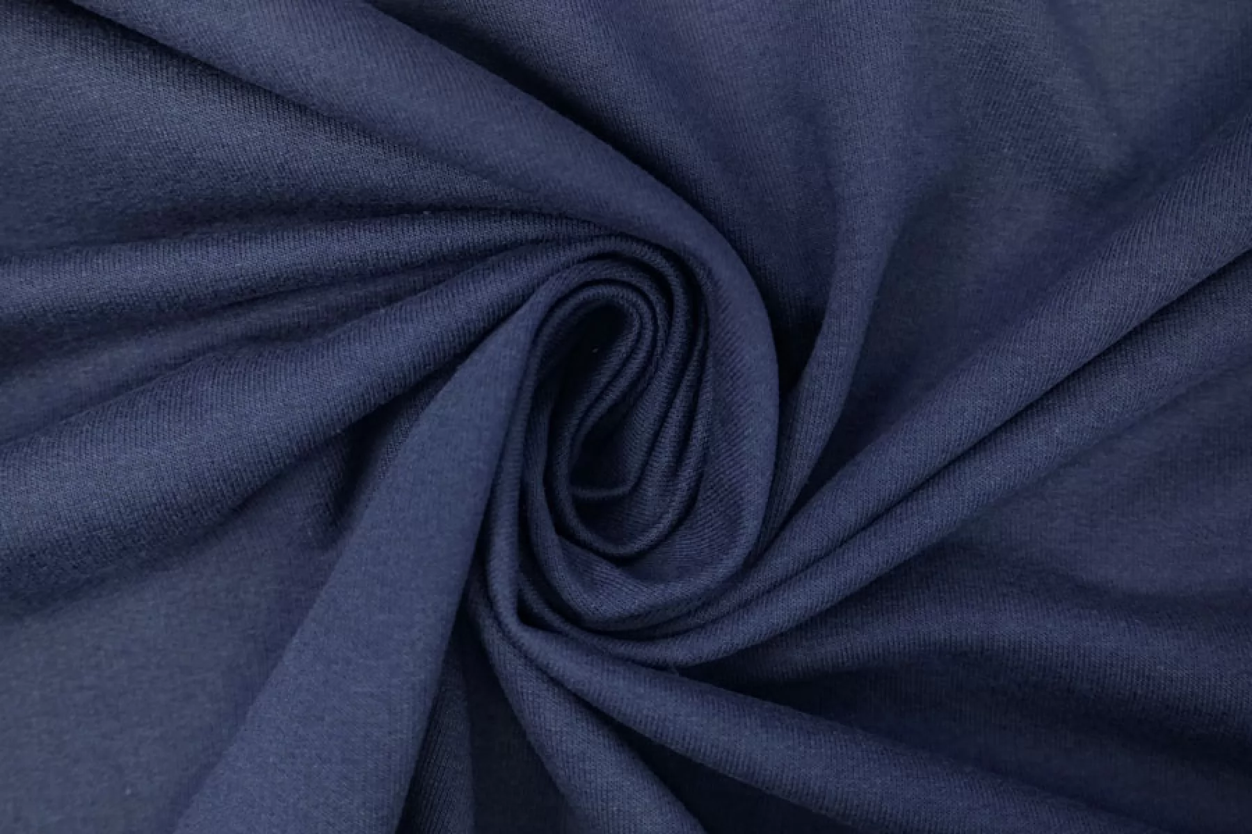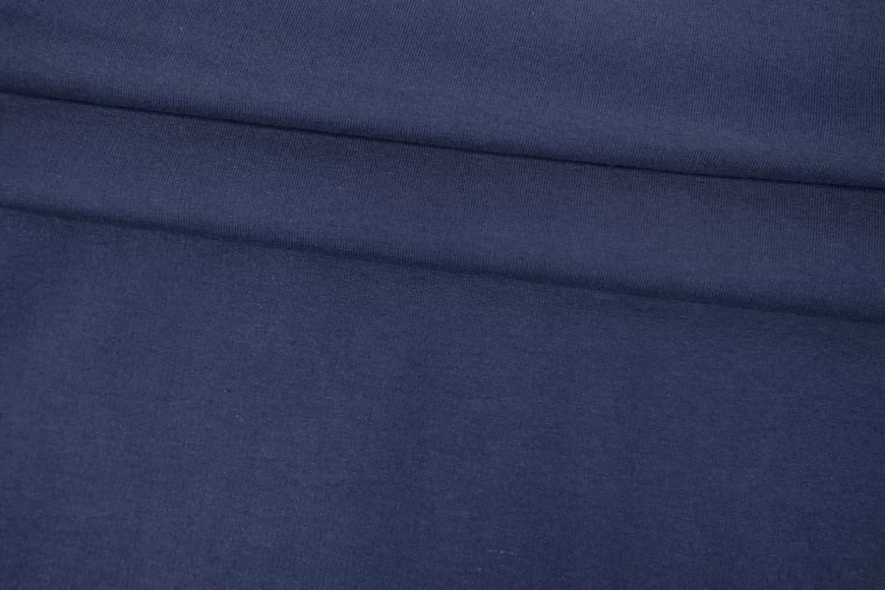 Прекрасный италянский хлопковый футер петля 2-х нитка тонкий в синем оттенке. Очень приятный и мягкий наощупь. Хорошо тянется. Не просвечивает. Держит форму, при этом пластичный. Отличный вариант на теплые комфортные спортивные и домашние костюмы, а также платья, лонгсливы, свитшоты, штаны или шорты.