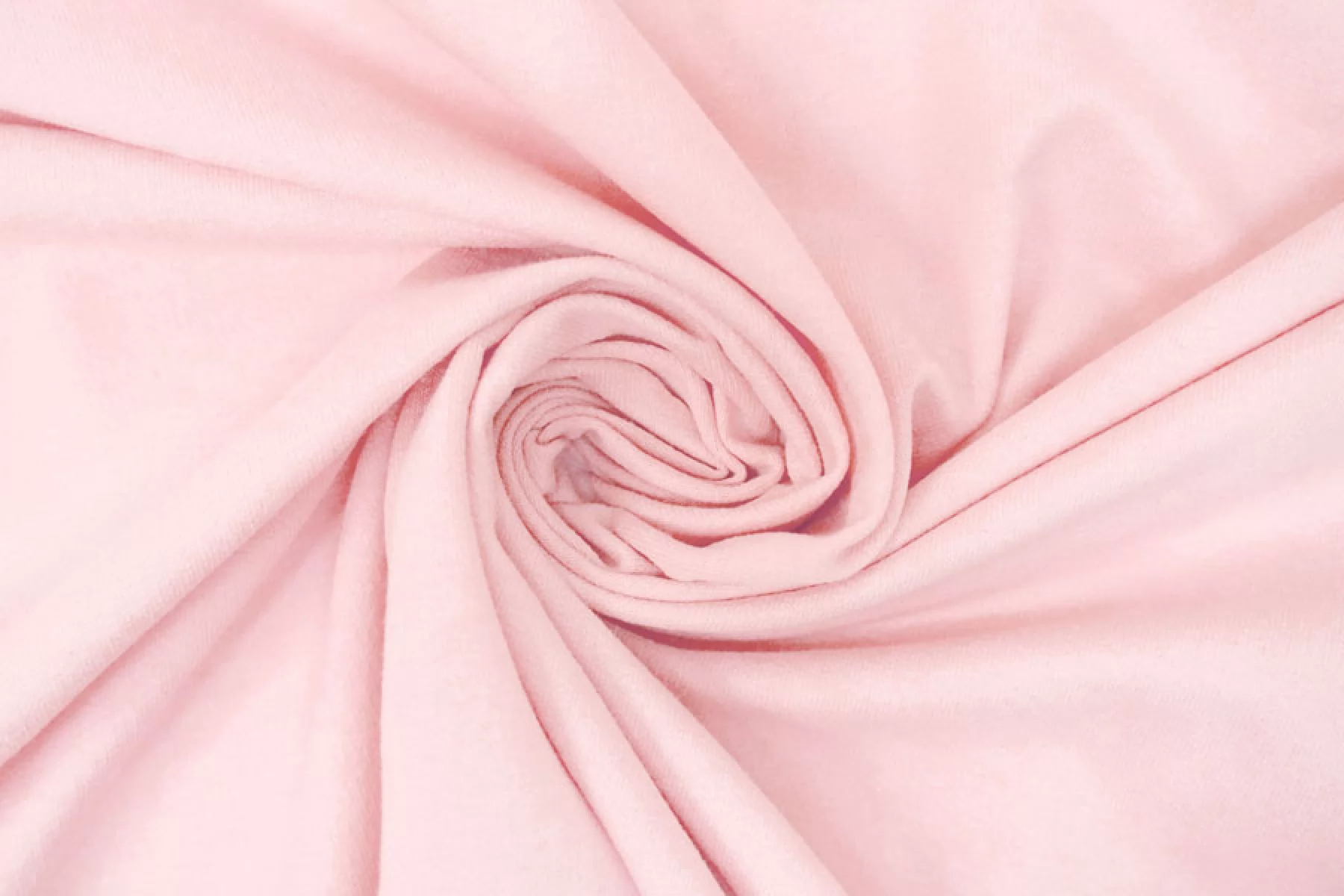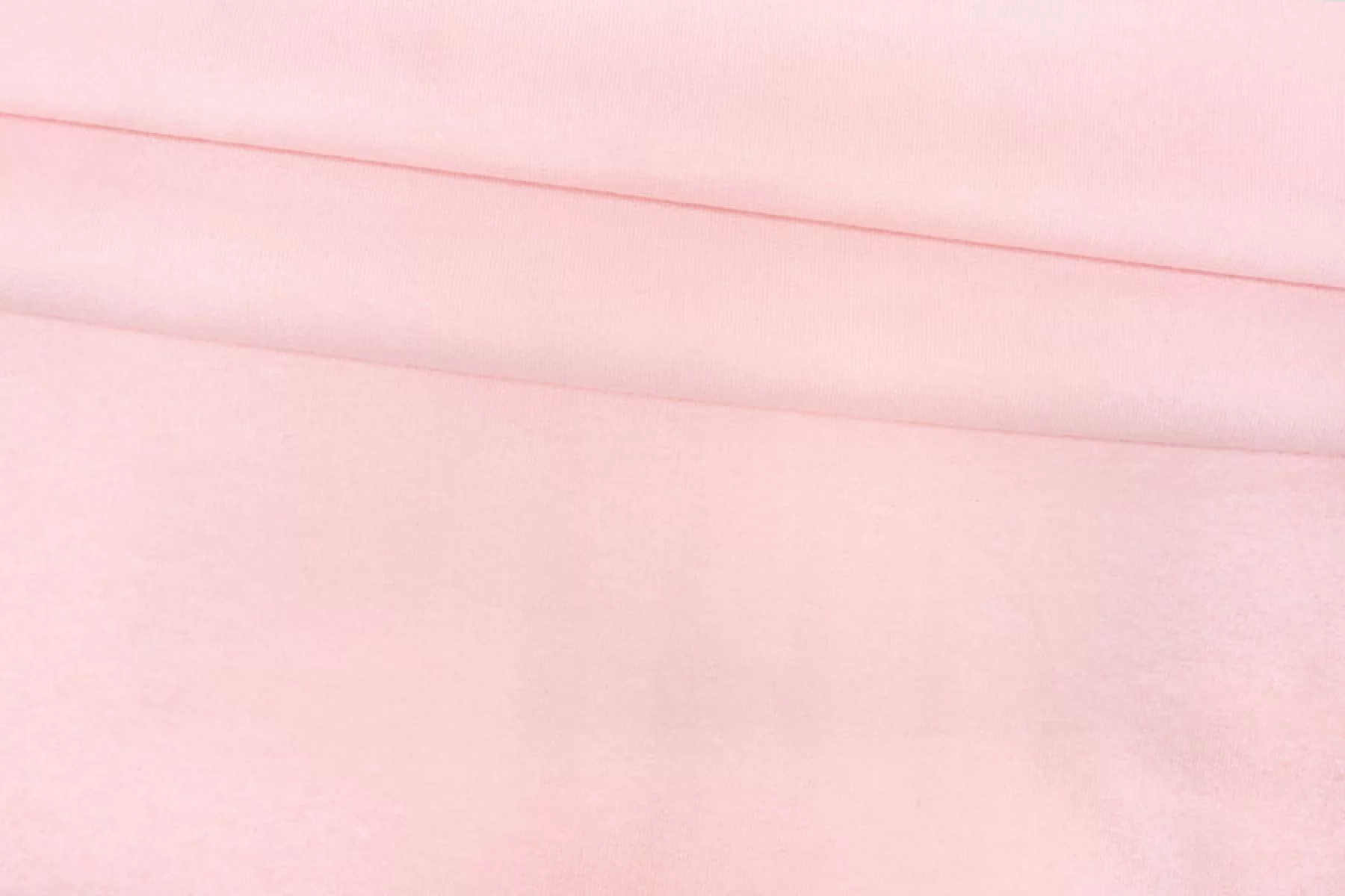 Прекрасный италянский хлопковый футер петля 2-х нитка тонкий в светло-розовом оттенке. Очень приятный и мягкий наощупь. Хорошо тянется. Не просвечивает. Держит форму, при этом пластичный. Отличный вариант на теплые комфортные спортивные и домашние костюмы, а также платья, лонгсливы, свитшоты, штаны или шорты.