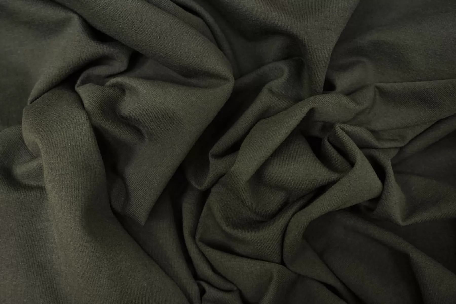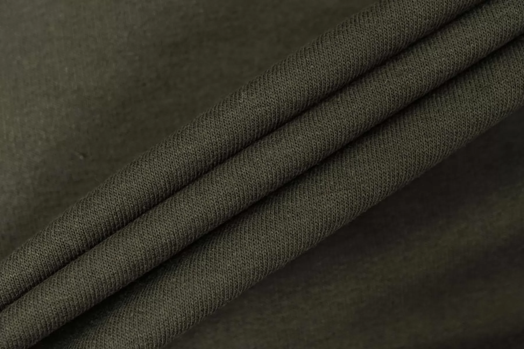 Прекрасный италянский хлопковый футер петля 2-х нитка тонкий в зеленом оттенке хаки. Очень приятный и мягкий наощупь. Хорошо тянется. Не просвечивает. Держит форму, при этом пластичный. Отличный вариант на теплые комфортные спортивные и домашние костюмы, а также платья, лонгсливы, свитшоты, штаны или шорты.