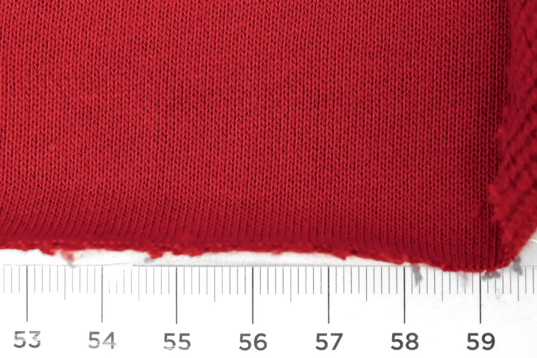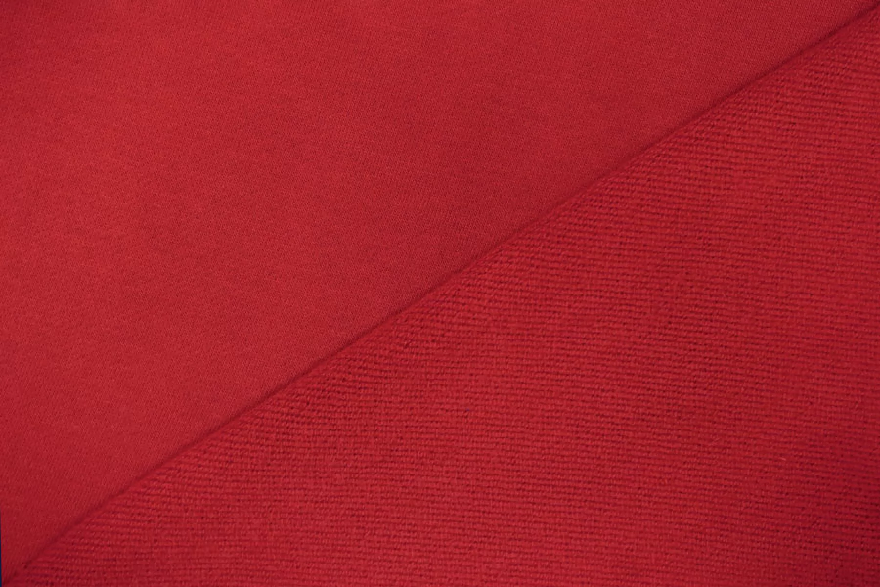 Прекрасный футер петля красного цвета петля 3-х нитка с легким начесом. Не толстый, приятный наощупь, мягий. Тянется. Формодержащий. Не просвечивает. Достаточно пластичный. Слегка сминается, но восстанавливается практически полностью. Отличный вариант для худи, толстовки, свитшота, штанов и платья, а также спортивного костюма. Обратите внимание на отличную ширину!