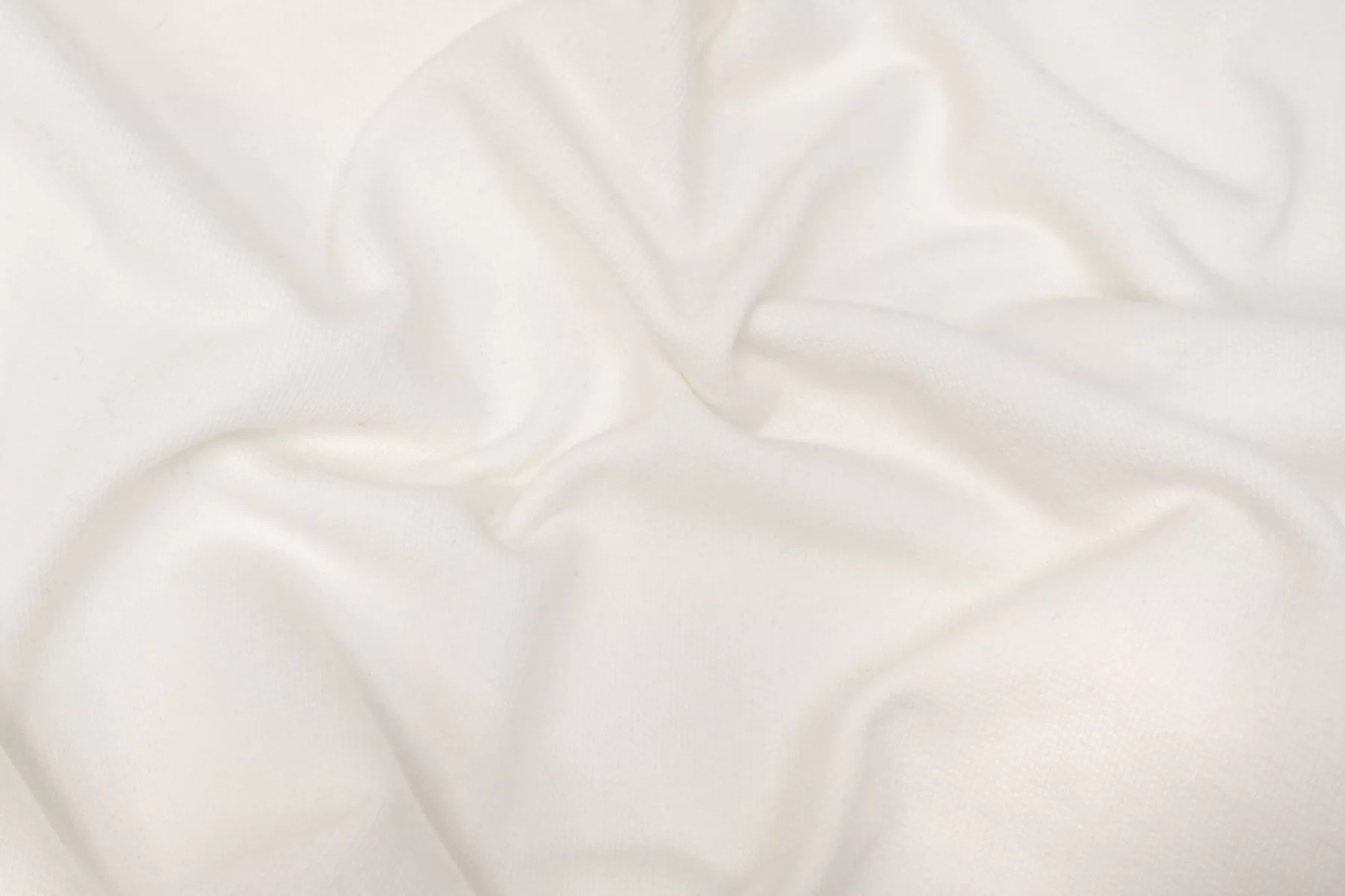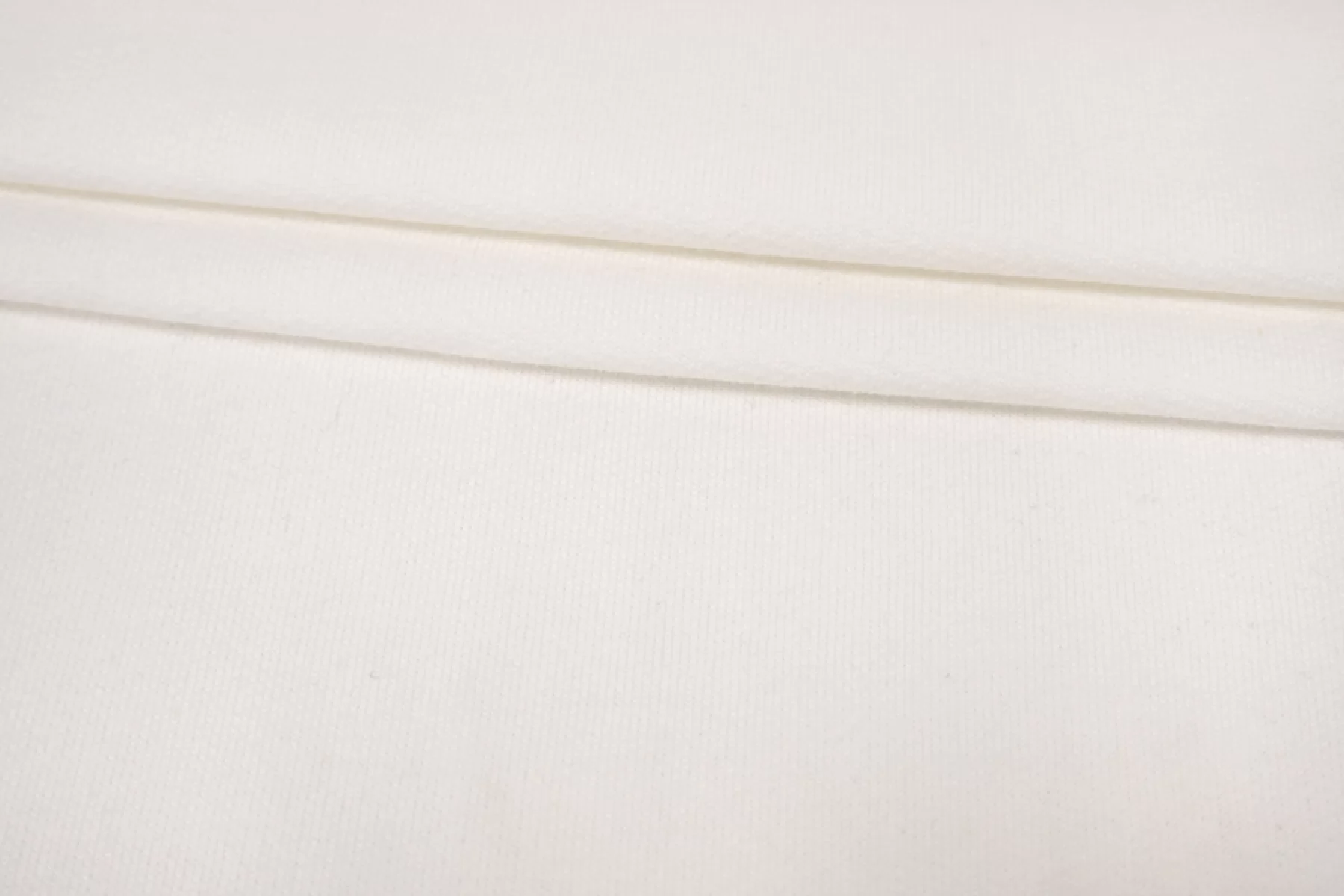 Внимание!! По всему рулону встречаются загрязнения разного размера см. на фото! Прекрасный футер петля молочно-белого оттенка. Суховатый наощупь, немного чувствуется фактурность плетения. Немного просвечивает Тянется немножко. Формодержащий. Достаточно пластичный. Немножко сминается. Отличный вариант для худи, толстовки, свитшота, штанов и платья, а также спортивного костюма.