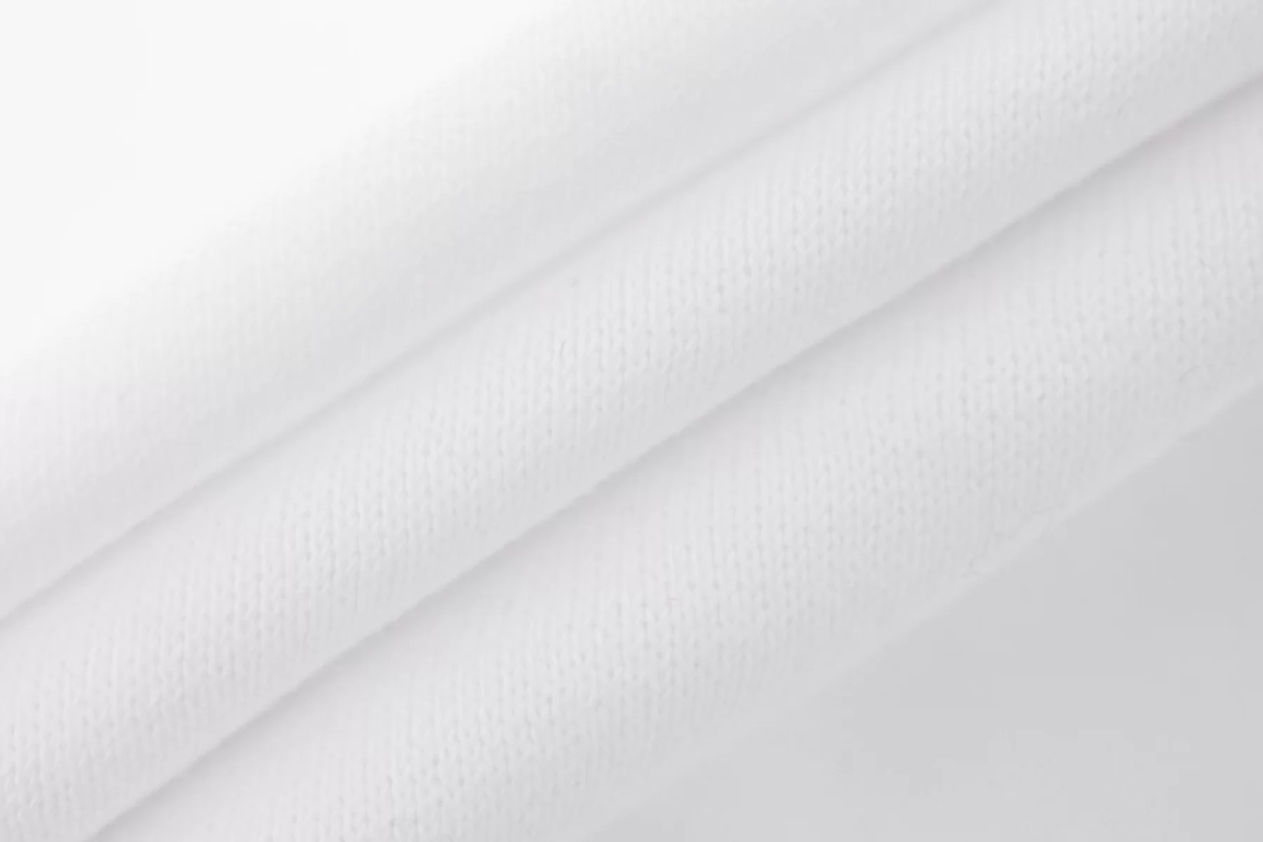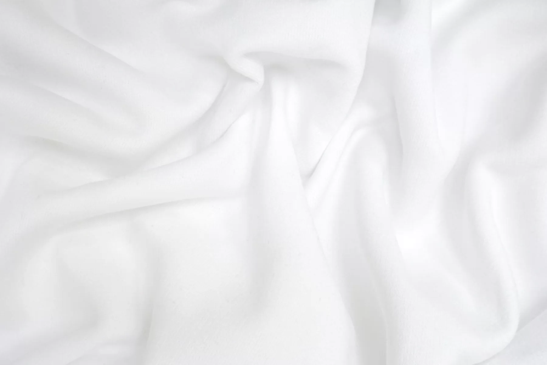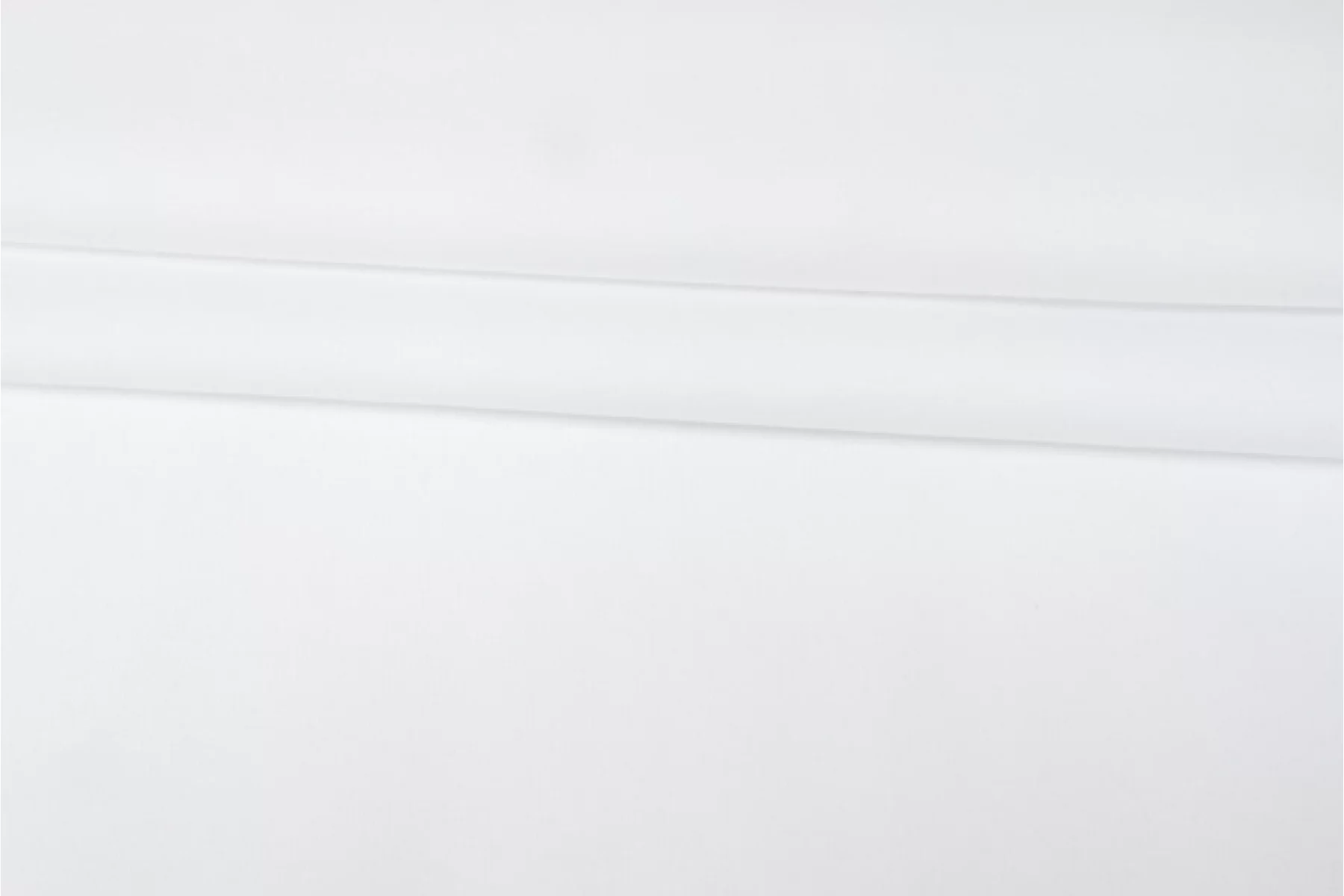 Отличного качества хлопковый футер с начесом от OFF-WHITE белого цвета. Материал очень приятный и мягкий наощупь. Плотный, слегка заметен силуэт черного на просвет. Не тянется. Гладкий, обладает легким лоском. Сминается, но восстанавливается практически полностью. Отличный вариант для спортивной одежды, свитшотов, худи или спортивных брюк.