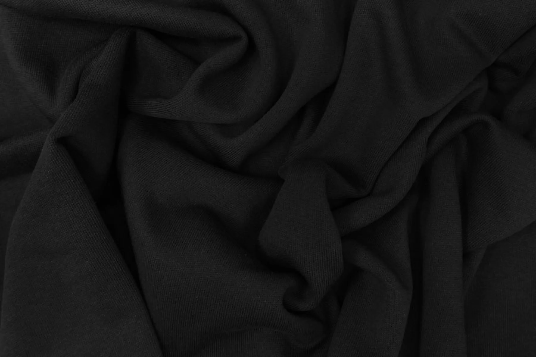 Прекрасный футер с начесом черного цвета от бренда FENDI. Тонкий, мягкий, приятный наощупь. Немножко растягивается. Формодержащий. Не просвечивает. Слегка сминается, но восстанавливается практически полностью. Отличный вариант для худи, толстовки, свитшота, штанов и платья, а также спортивного костюма. Обратите внимание на отличную ширину!