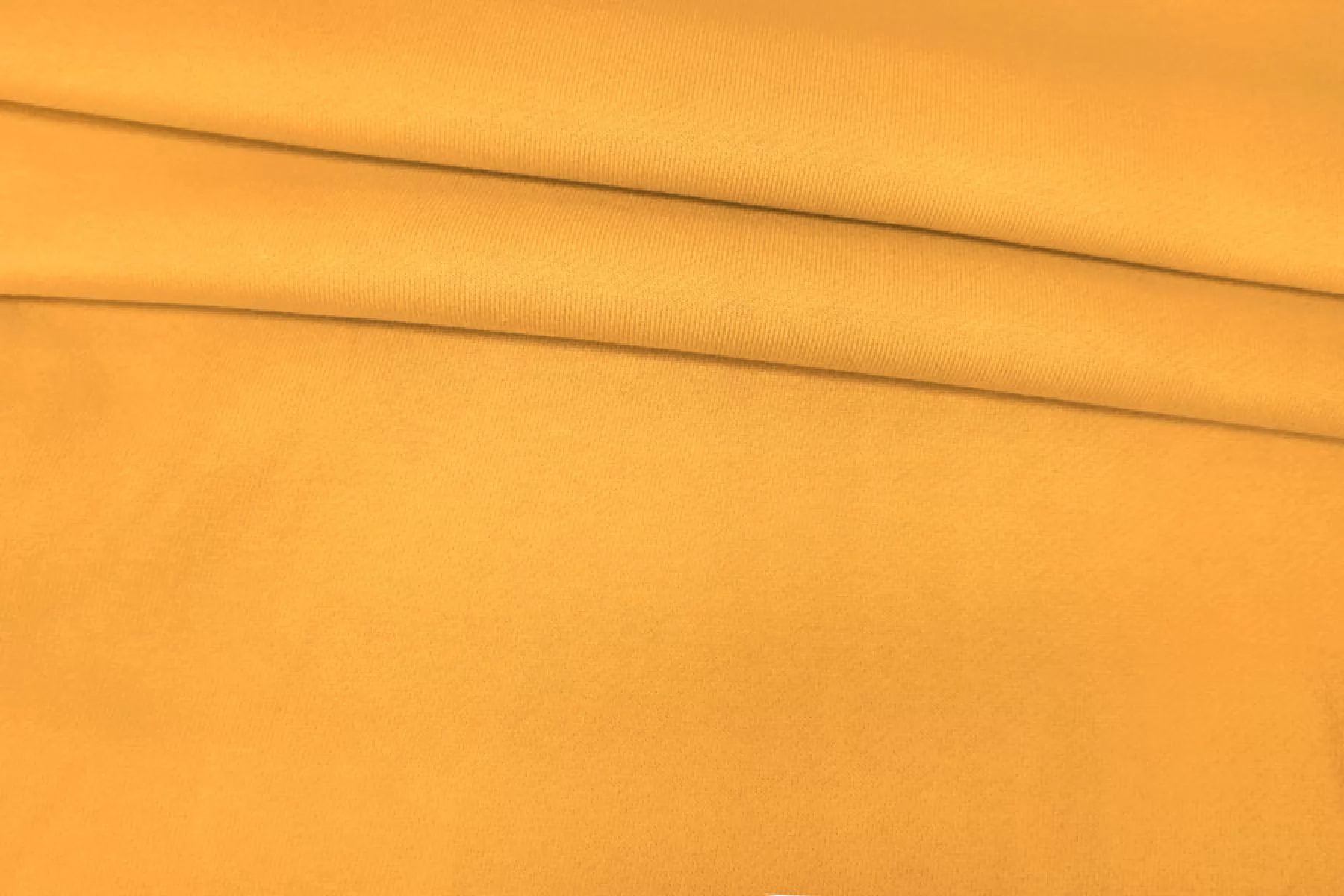 Прекрасный футер с начесом желтого цвета от бренда FENDI. Плотный, достаточно толстенький, мягкий, приятный наощупь. Не тянется. Формодержащий. Не просвечивает. Слегка сминается, но восстанавливается практически полностью. Отличный вариант для худи, толстовки, свитшота, штанов и платья, а также спортивного костюма. Обратите внимание на отличную ширину!