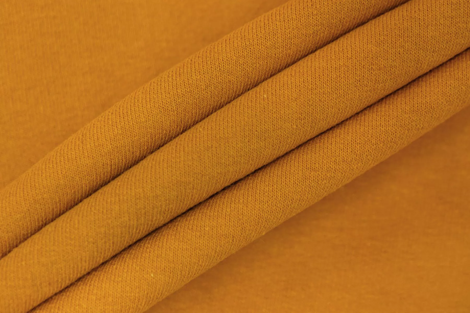 Прекрасный италянский хлопковый футер с начесом горчичного цвета. Очень приятный и мягкий наощупь. Немного тянется. Не просвечивает. Держит форму, при этом пластичный. Отличный вариант на теплые комфортные спортивные и домашние костюмы, а также платья, лонгсливы, свитшоты, штаны или шорты.