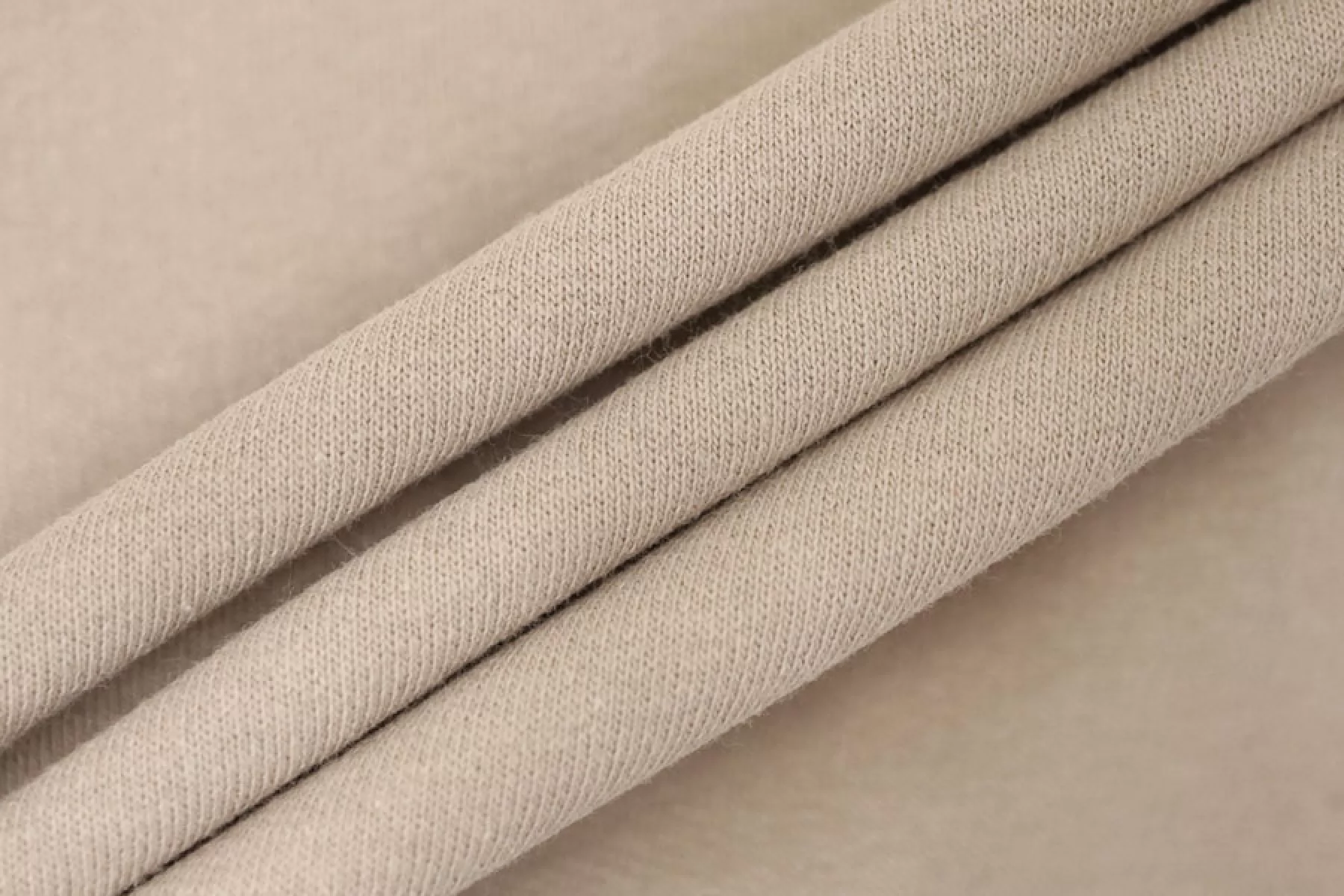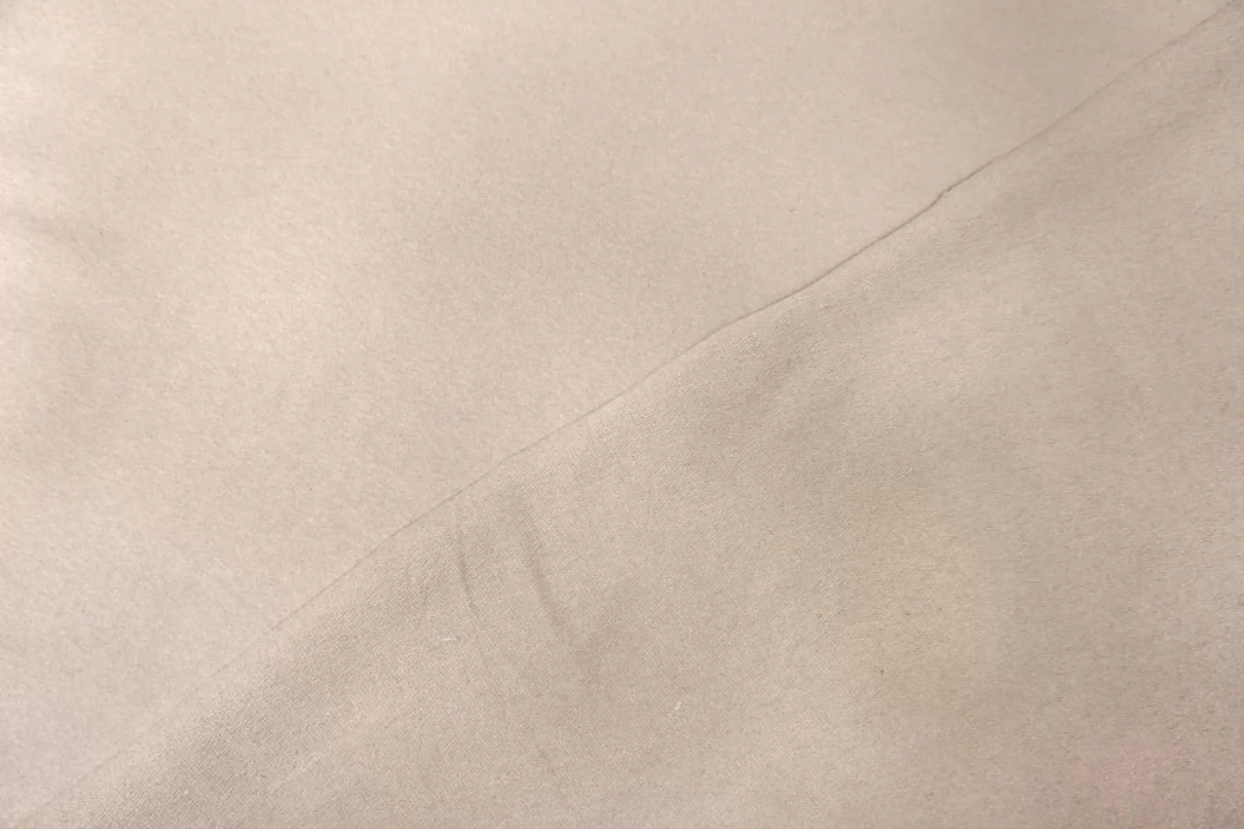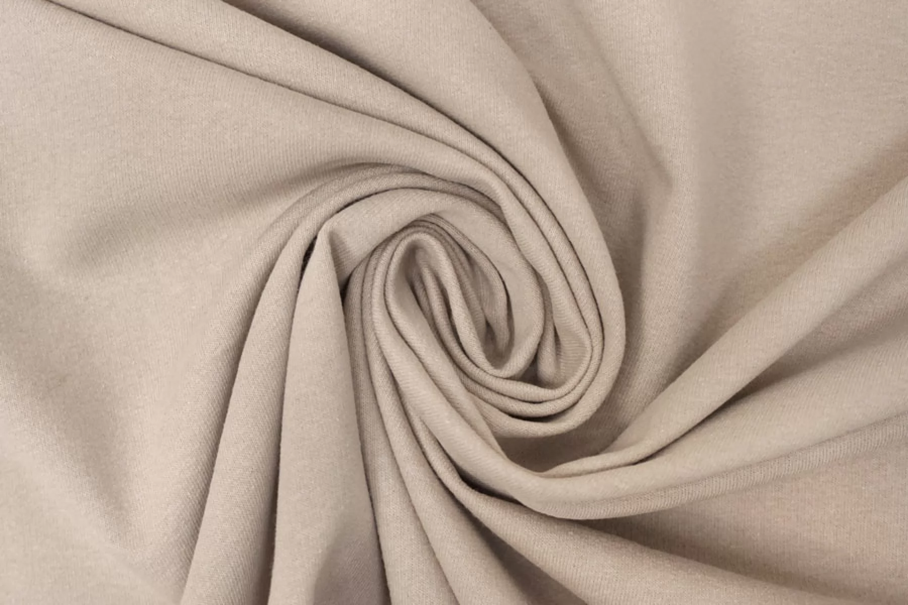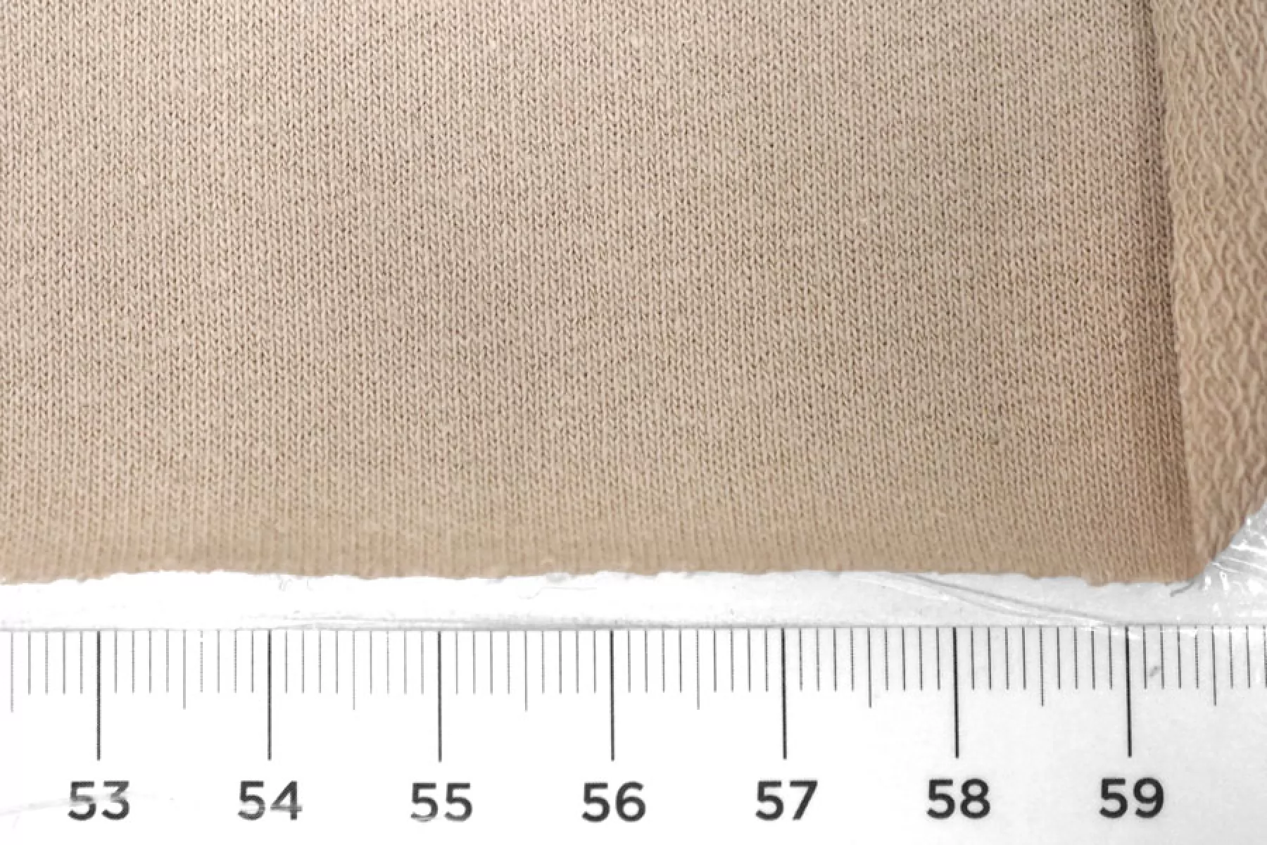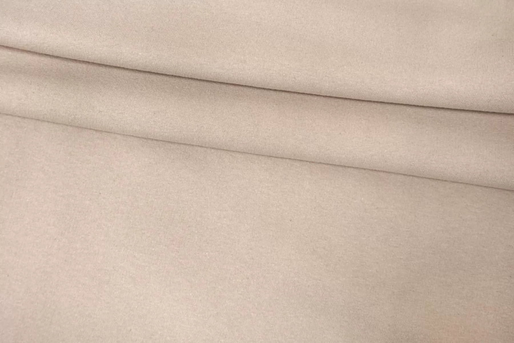 Прекрасный италянский хлопковый футер петля 2-х нитка тонкий в приятном телесном оттенке. Очень приятный и мягкий наощупь. Хорошо тянется. Не просвечивает. Держит форму, при этом пластичный. Отличный вариант на теплые комфортные спортивные и домашние костюмы, а также платья, лонгсливы, свитшоты, штаны или шорты.