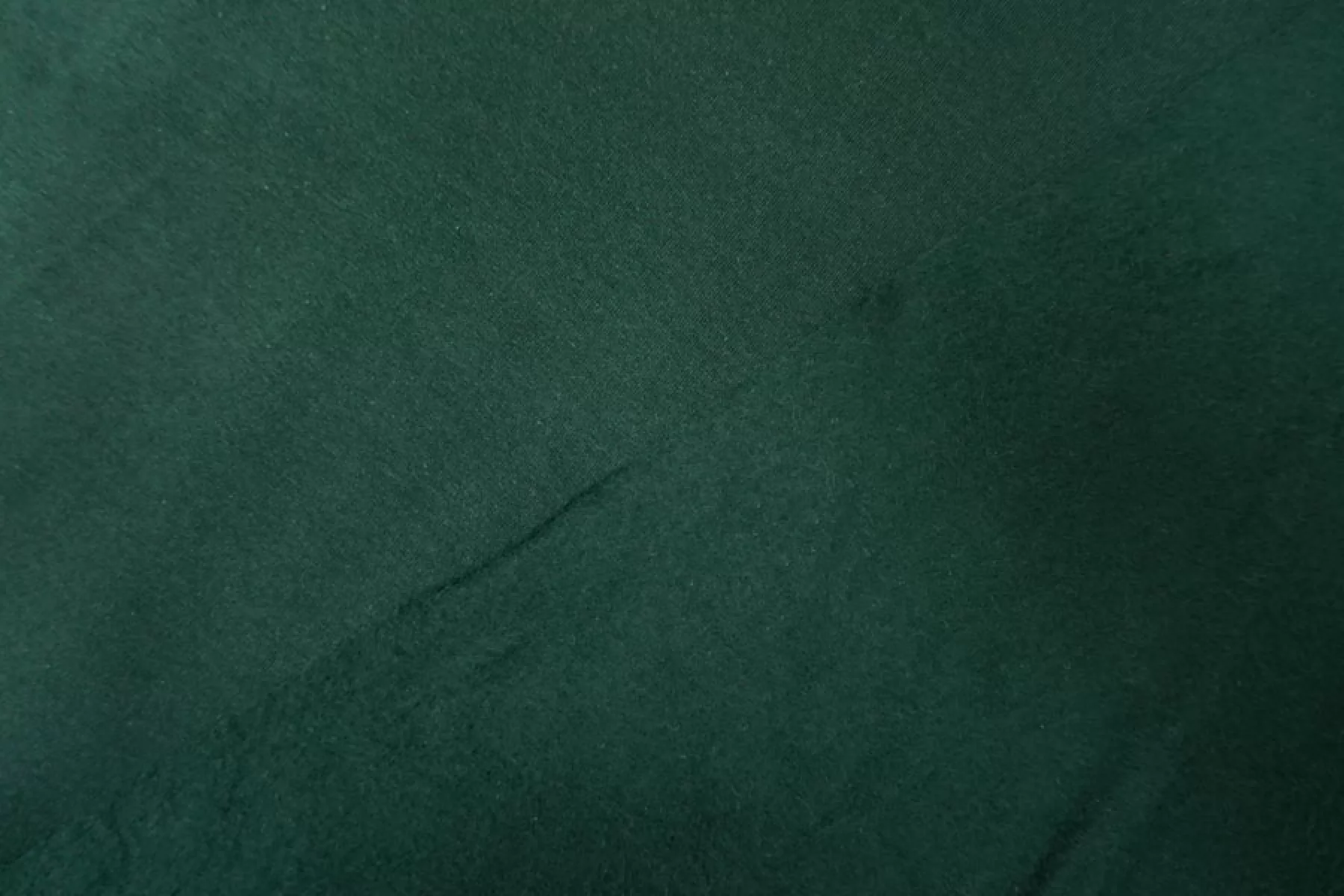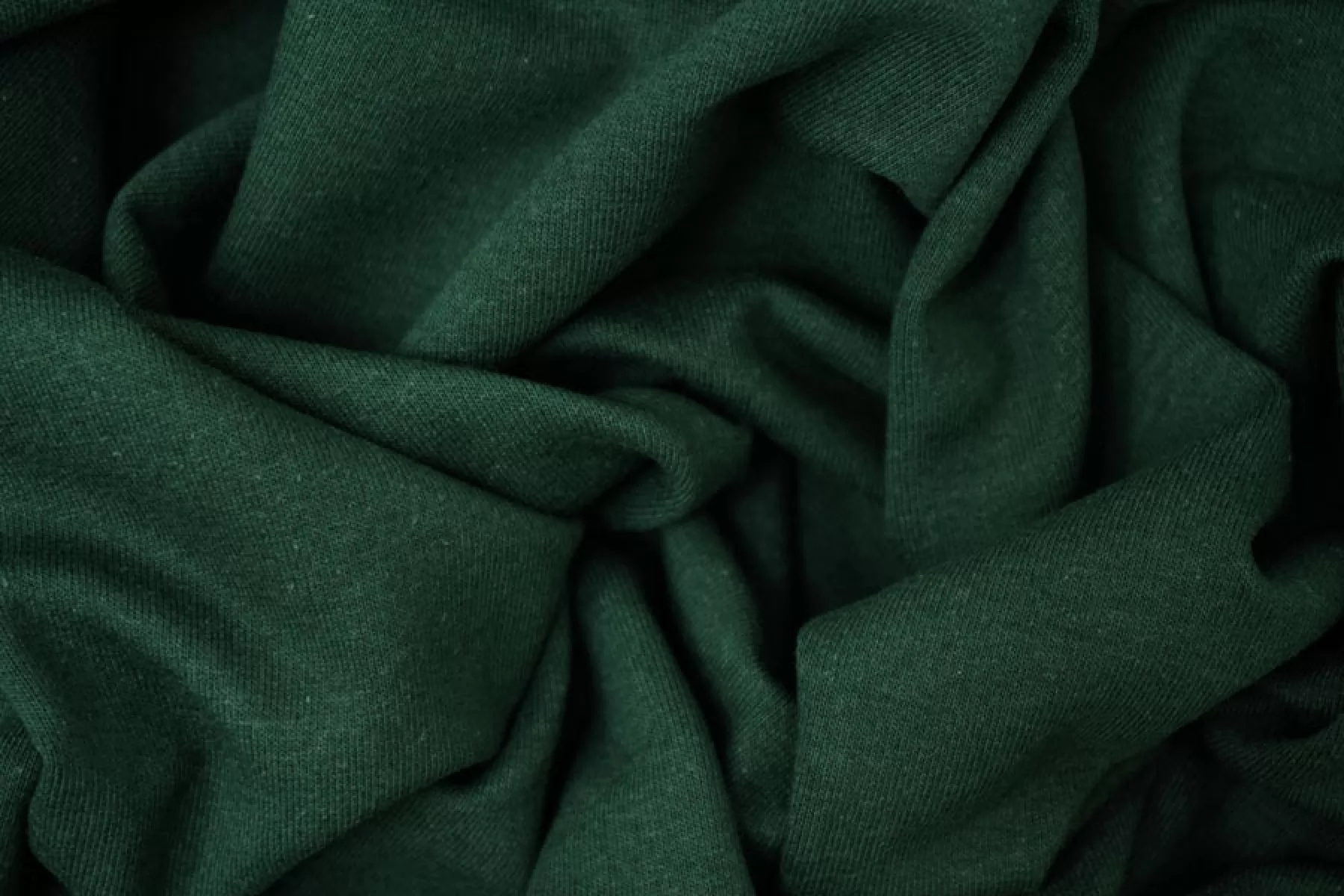 Прекрасный италянский хлопковый футер с начесом тонкий в приятном темно-зеленом оттенке. Очень приятный и мягкий наощупь. Хорошо тянется. Не просвечивает. Держит форму, при этом пластичный. Отличный вариант на теплые комфортные спортивные и домашние костюмы, а также платья, лонгсливы, свитшоты, штаны или шорты.