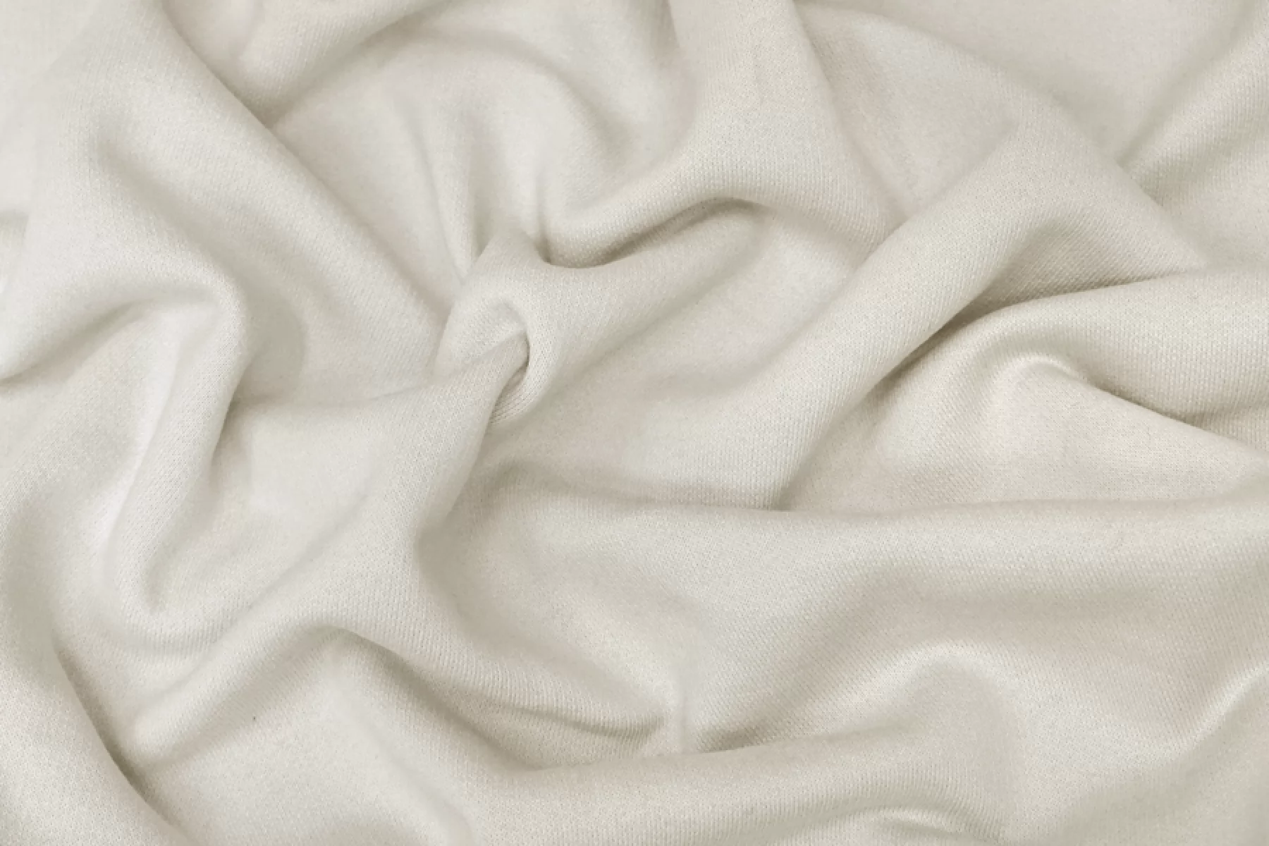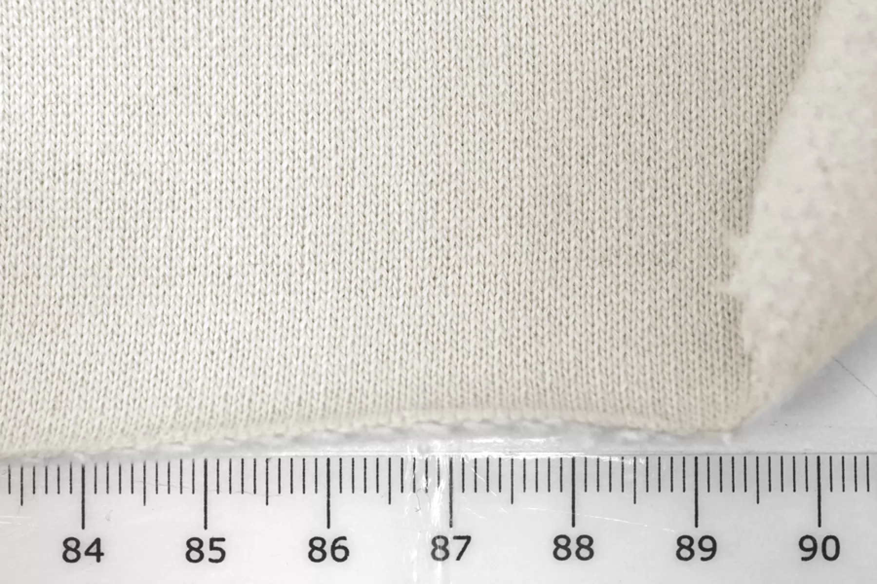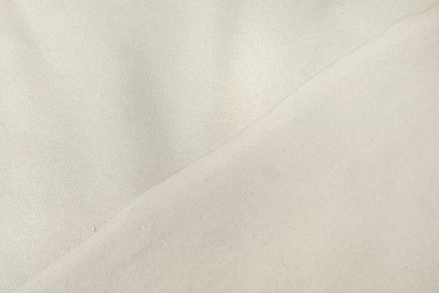 Футер с начесом в очень интересном светлом оттенке, жемчужно-сером. Плотненький, но не толстый. Тактильно приятный, начес мягкий, короткий (виднеется плетение), лицевая сторона суховатая. Слегка тянется. Хорошо держит форму. Будет очень кофмортен в носке благодаря натуральному составу. Идеален на холодный сезон. Шьем: спортивную одежду, худи, толстовки, свитшоты и штаны.