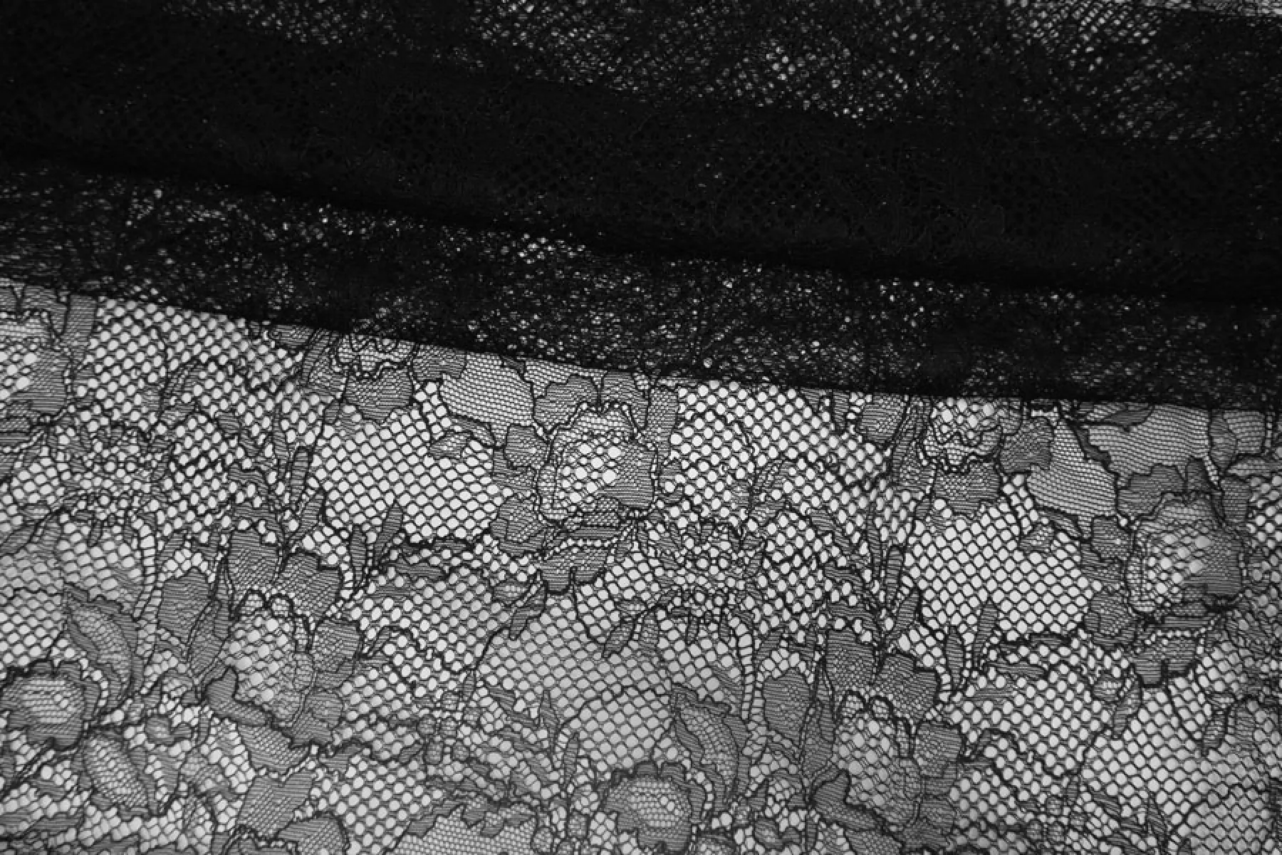 Прекрасный итальянский гипюр в чёрном цвете. Обе кромки с реснитчатым краем. Мягкий, гладкий, прозрачный. Не мнется, форму не держит, хорошо драпируется. Тянется по всем направлениям. Отлично подойдет для пошива самостоятельного изделия (на подкладе), или отделки отдельных элементов одежды и аксессуаров.