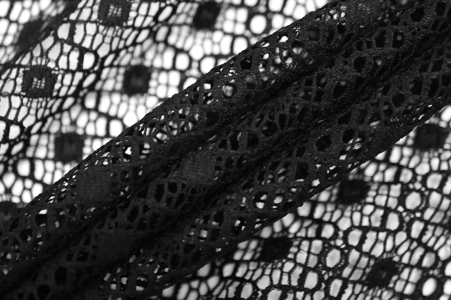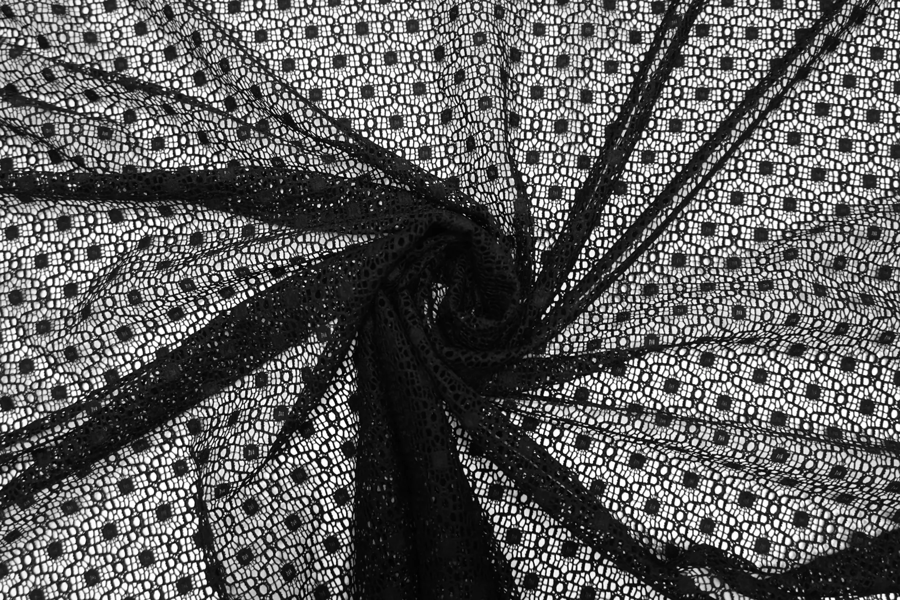 Итальянский гипюр стрейч с узором черного цвета. Тянется в обе стороны. Не мнется, форму держит слабо, хорошо драпируется. Отлично подойдет для пошива самостоятельного изделия (на подкладе), или отделки отдельных элементов одежды и аксессуаров.