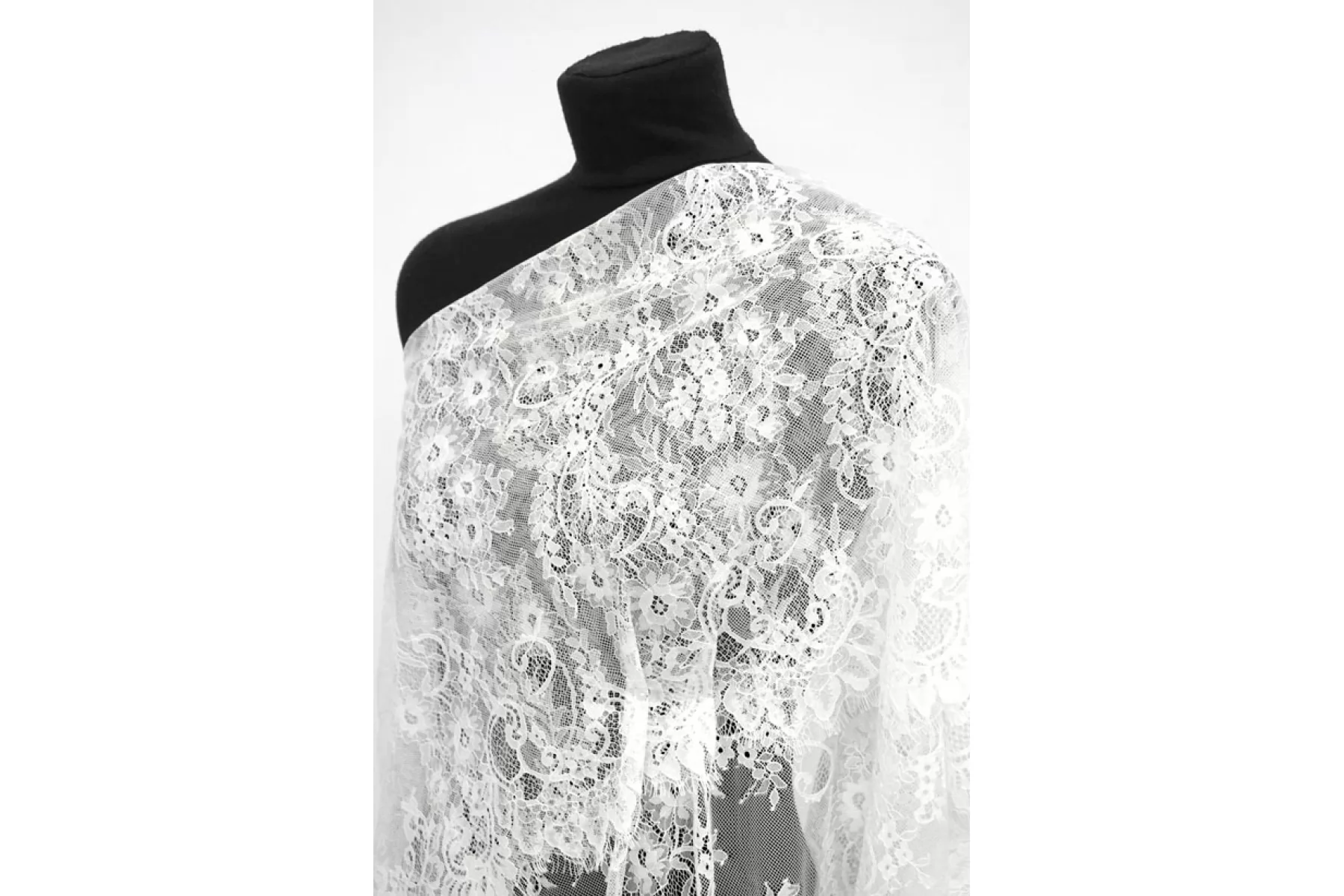 ВНИМАНИЕ! Ткань купонная, длина купона 3 м, цена за купон - 7650 руб. Итальянский гипюр стрейч с цветочным узором в белом оттенке. Не мнется, форму не держит, хорошо драпируется. Не тянется. Отлично подойдет для пошива самостоятельного изделия (на подкладе), например платья, блузки, юбки или отделки отдельных элементов одежды и аксессуаров.
