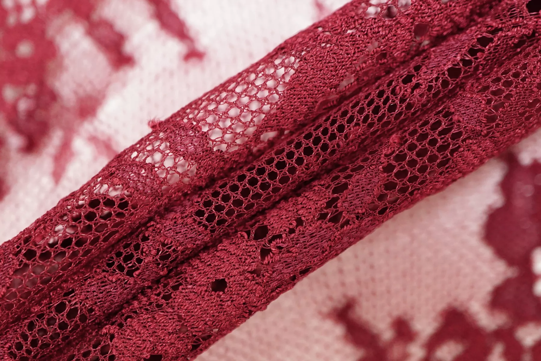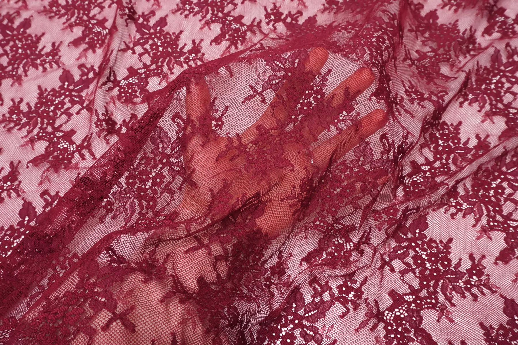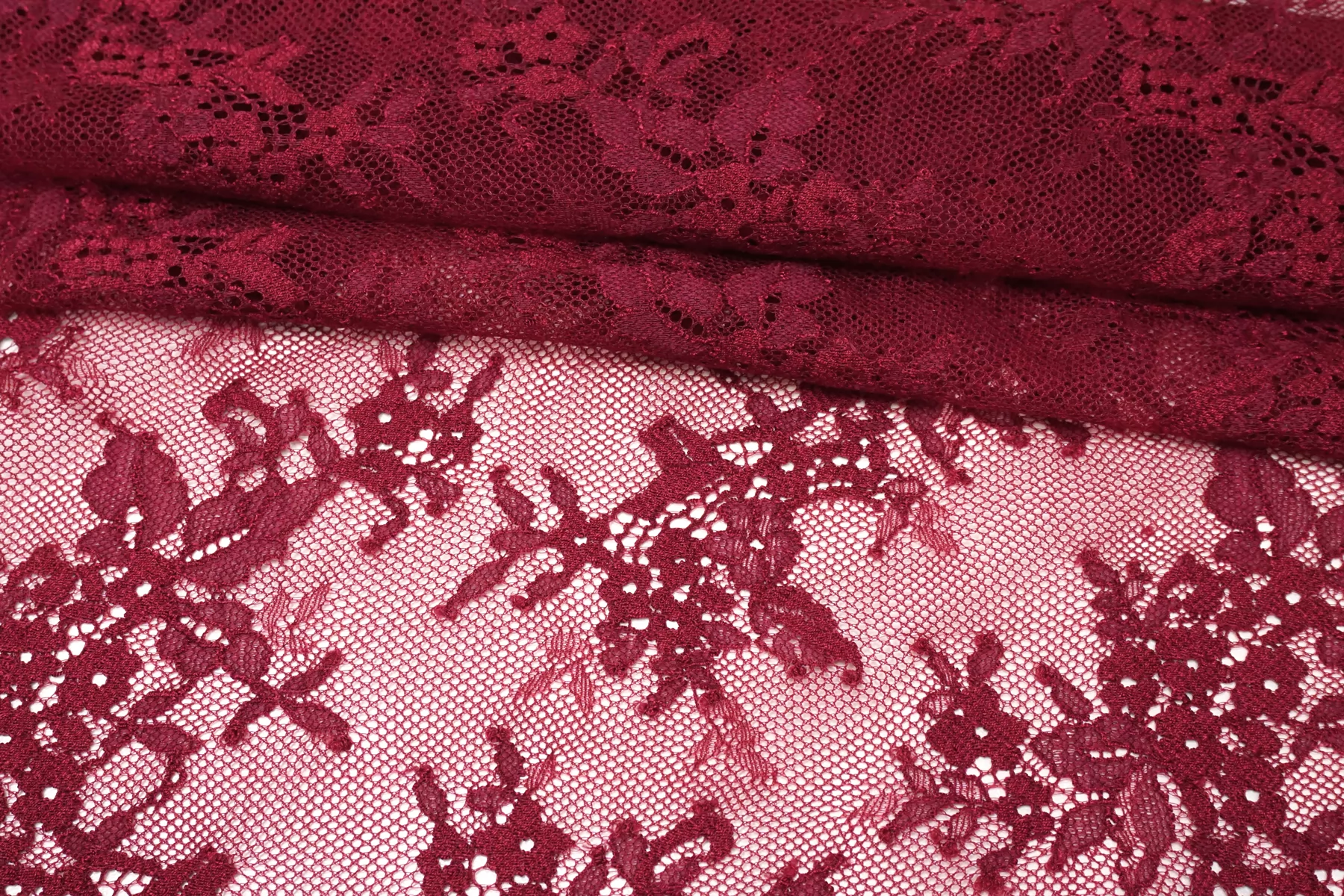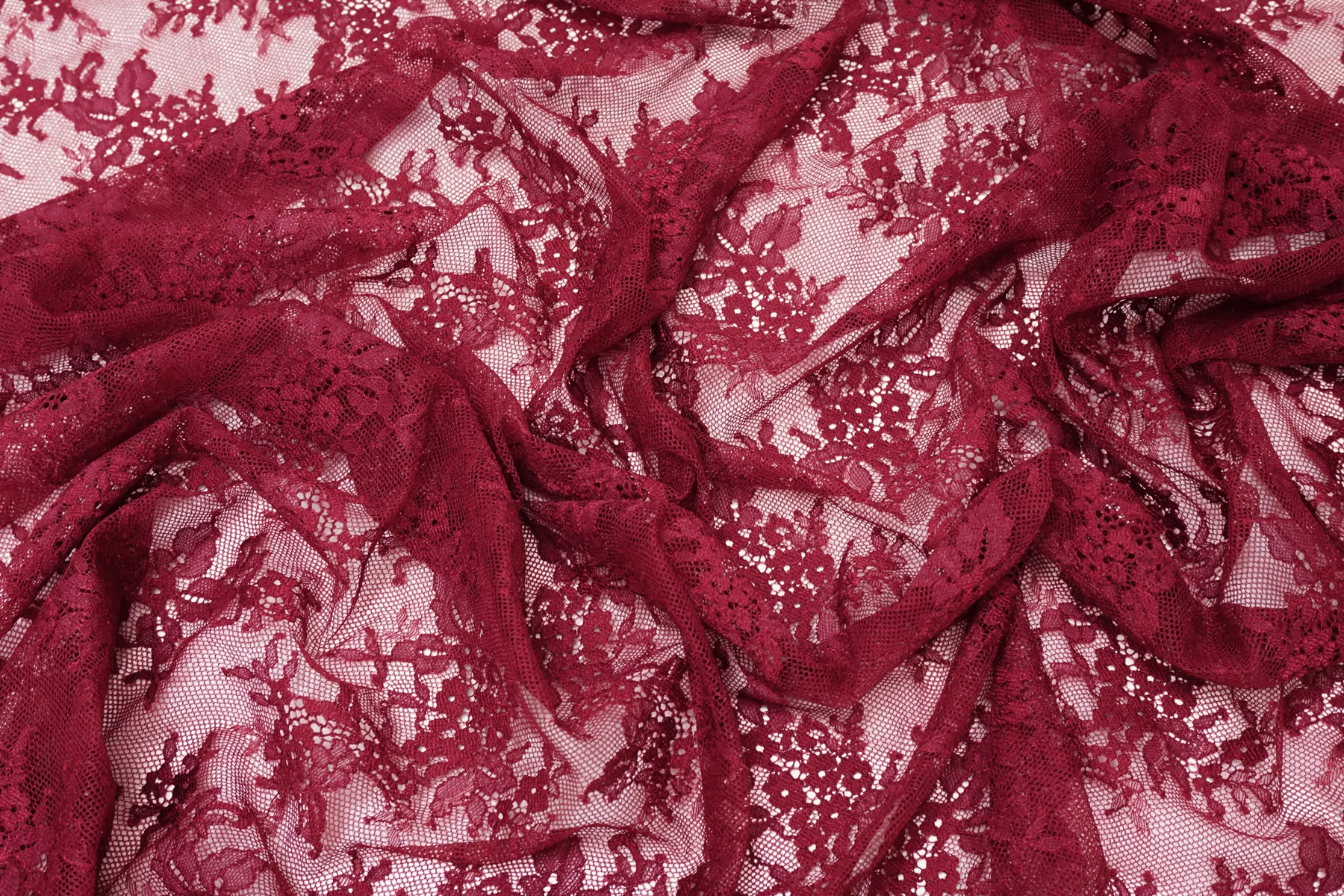 ВНИМАНИЕ!! Присутствуют горизонтальные полосы см. фото. Итальянский гипюр стрейч с цветочным узором в оттенке марсала. Умеренно тянется. Не мнется, форму не держит, хорошо драпируется. Отлично подойдет для пошива самостоятельного изделия (на подкладе), или отделки элементов одежды и аксессуаров.