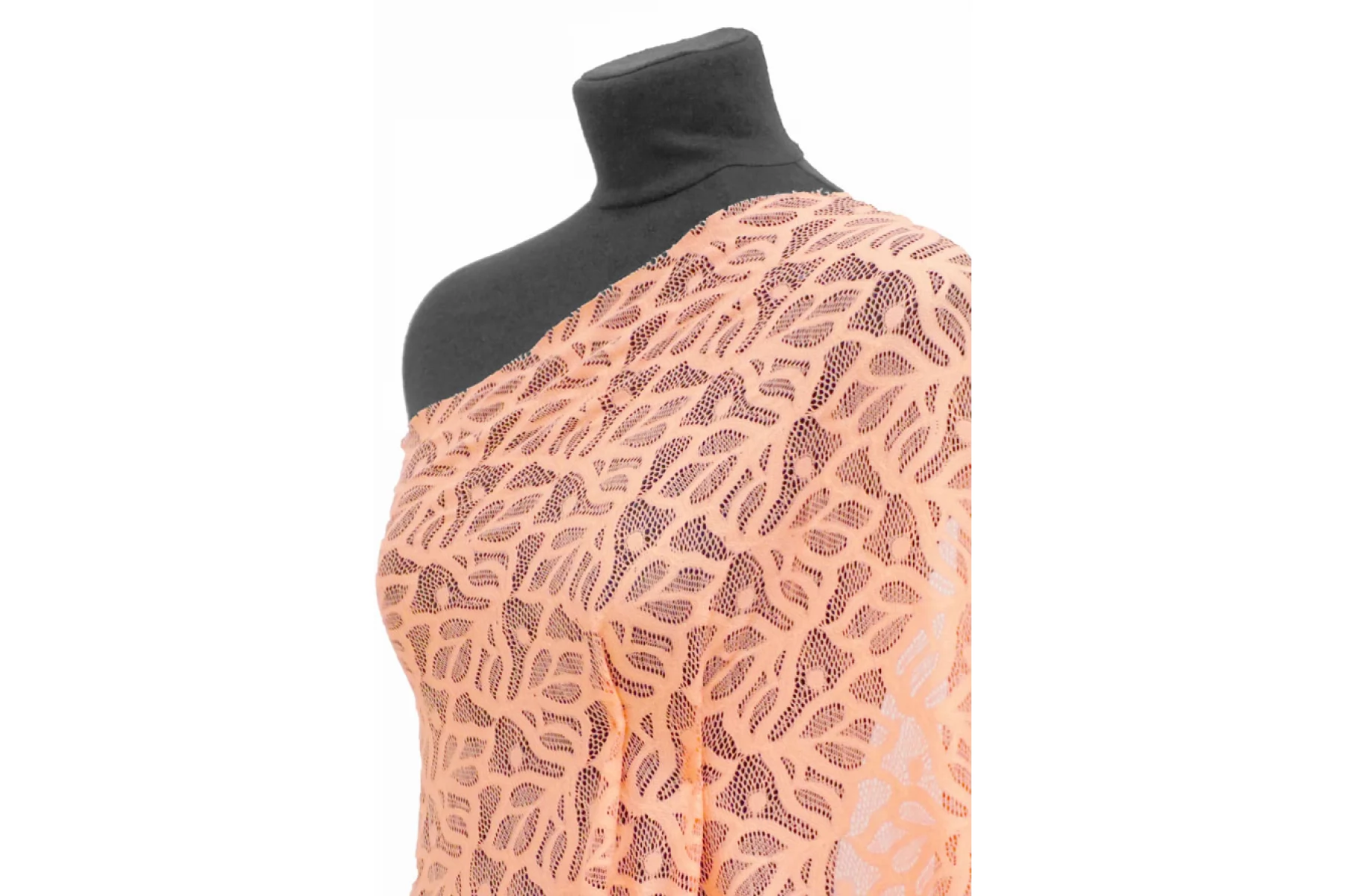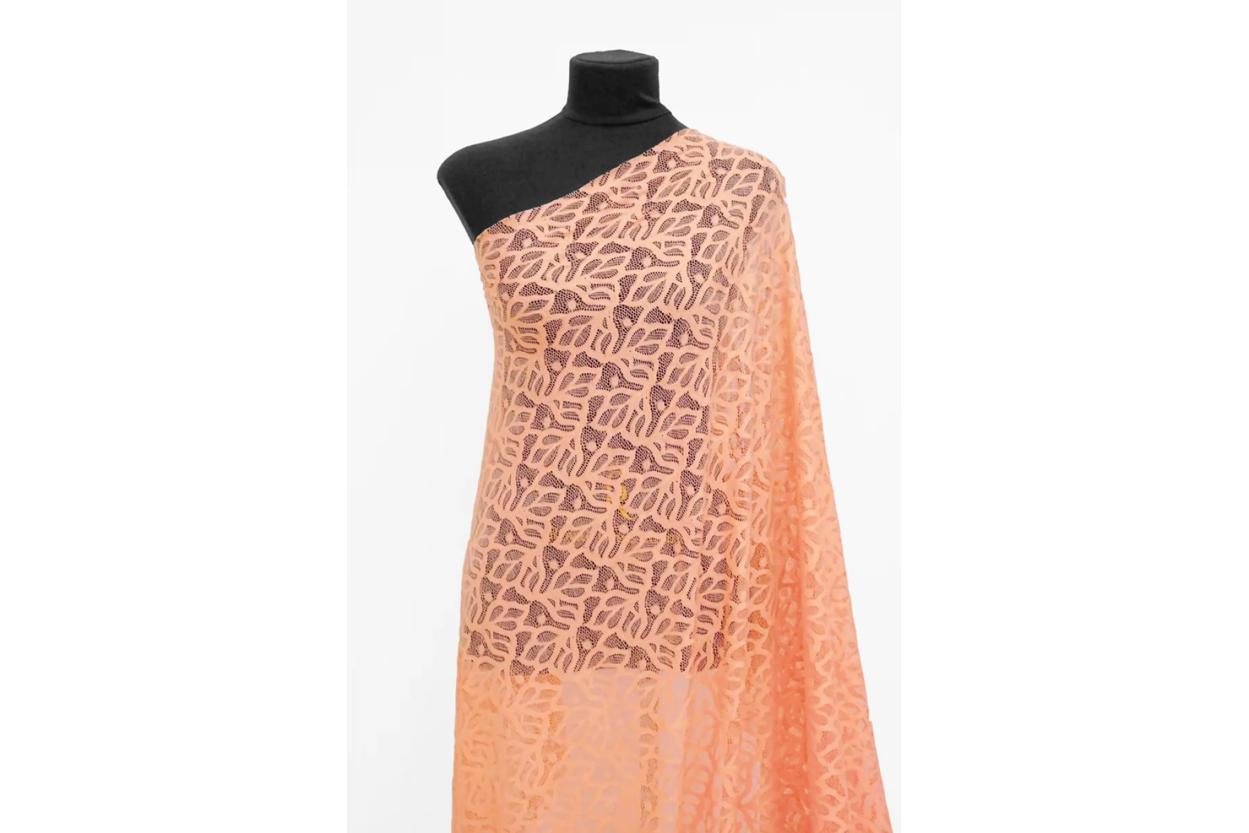 Итальянский гипюр стрейч с узором в виде листьев от бренда Max Mara в нежном розовато-персиковом оттенке. Гладкий и приятный наощупь. Тянется в обе стороны. Не мнется, форму не держит, хорошо драпируется. Отлично подойдет для пошива самостоятельного изделия (на подкладе), или отделки отдельных элементов одежды и аксессуаров.