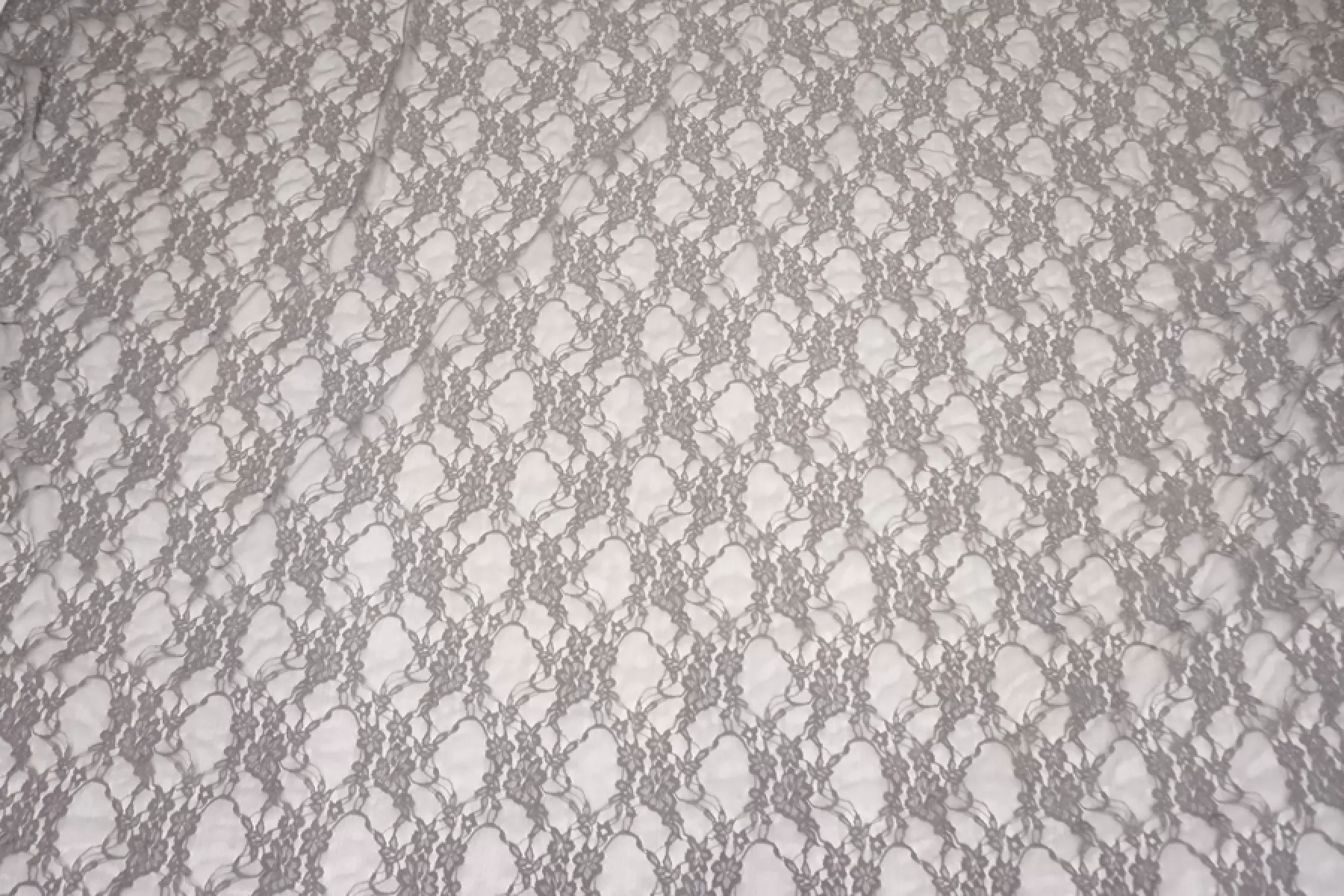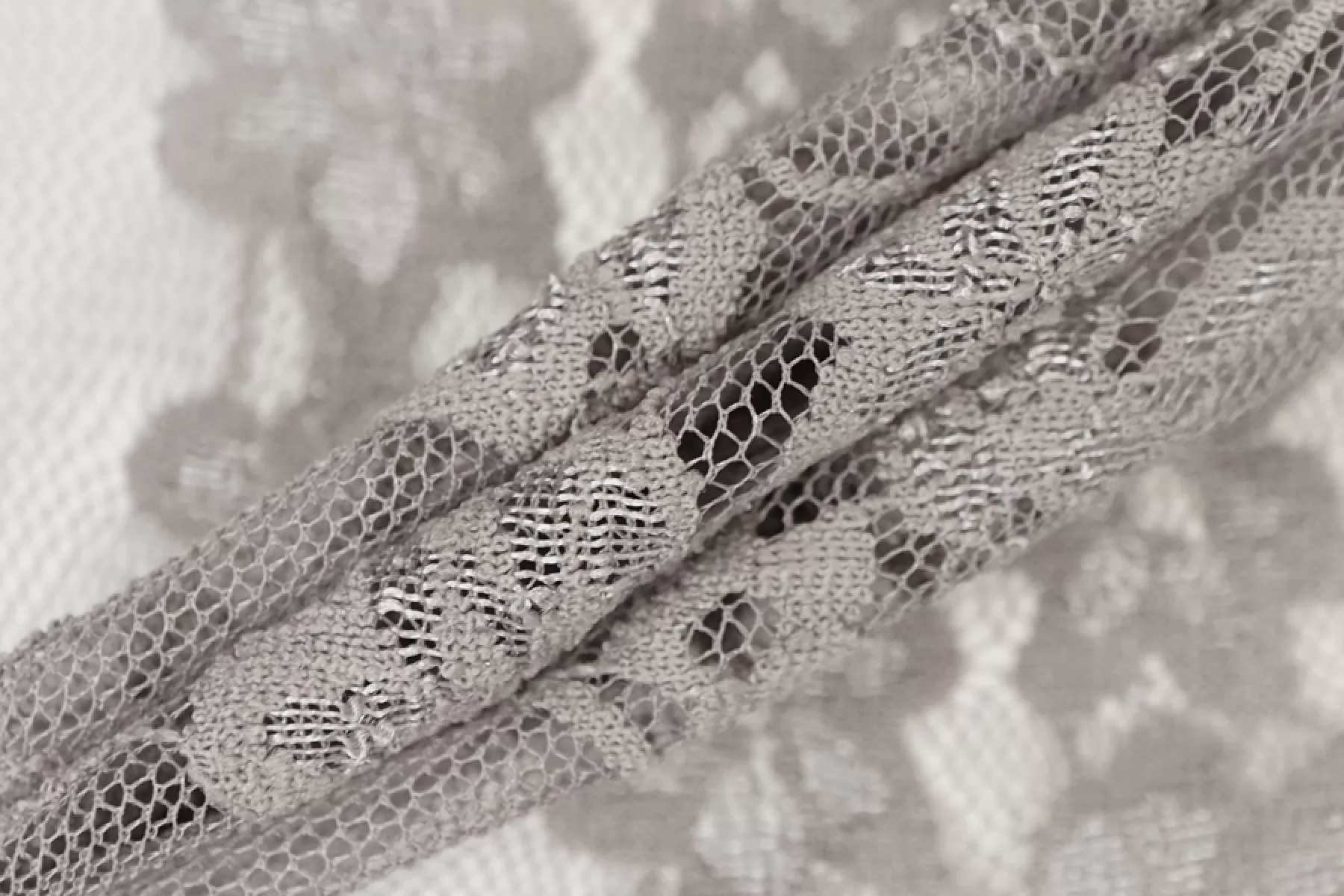 Итальянский гипюр стрейч с узором в светло-сером оттенке. Тянется в обе стороны. Не мнется, форму держит слабо, хорошо драпируется. Отлично подойдет для пошива самостоятельного изделия (на подкладе), или отделки отдельных элементов одежды и аксессуаров.