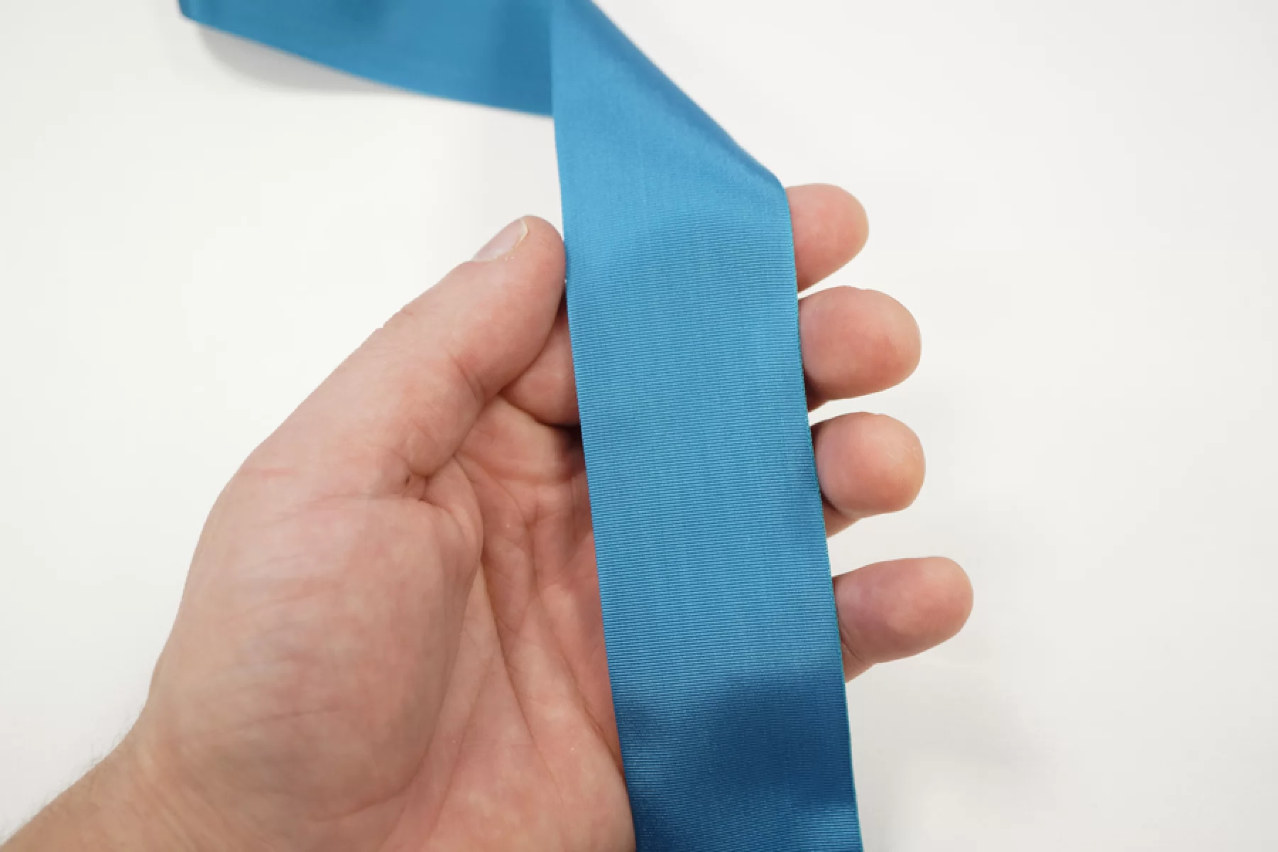 Голубая репсовая лента из ацетата с вискозой шириной около 4 см. 60% ацетат 40% вискоза. Пластичная, мягкая.