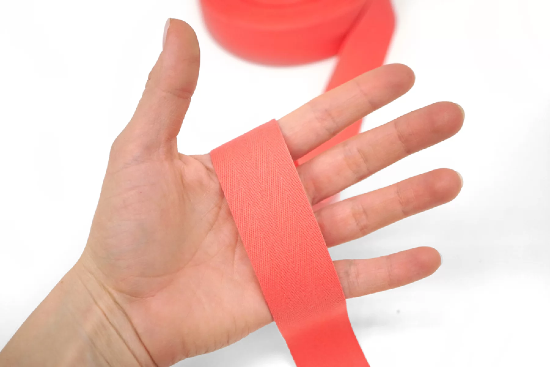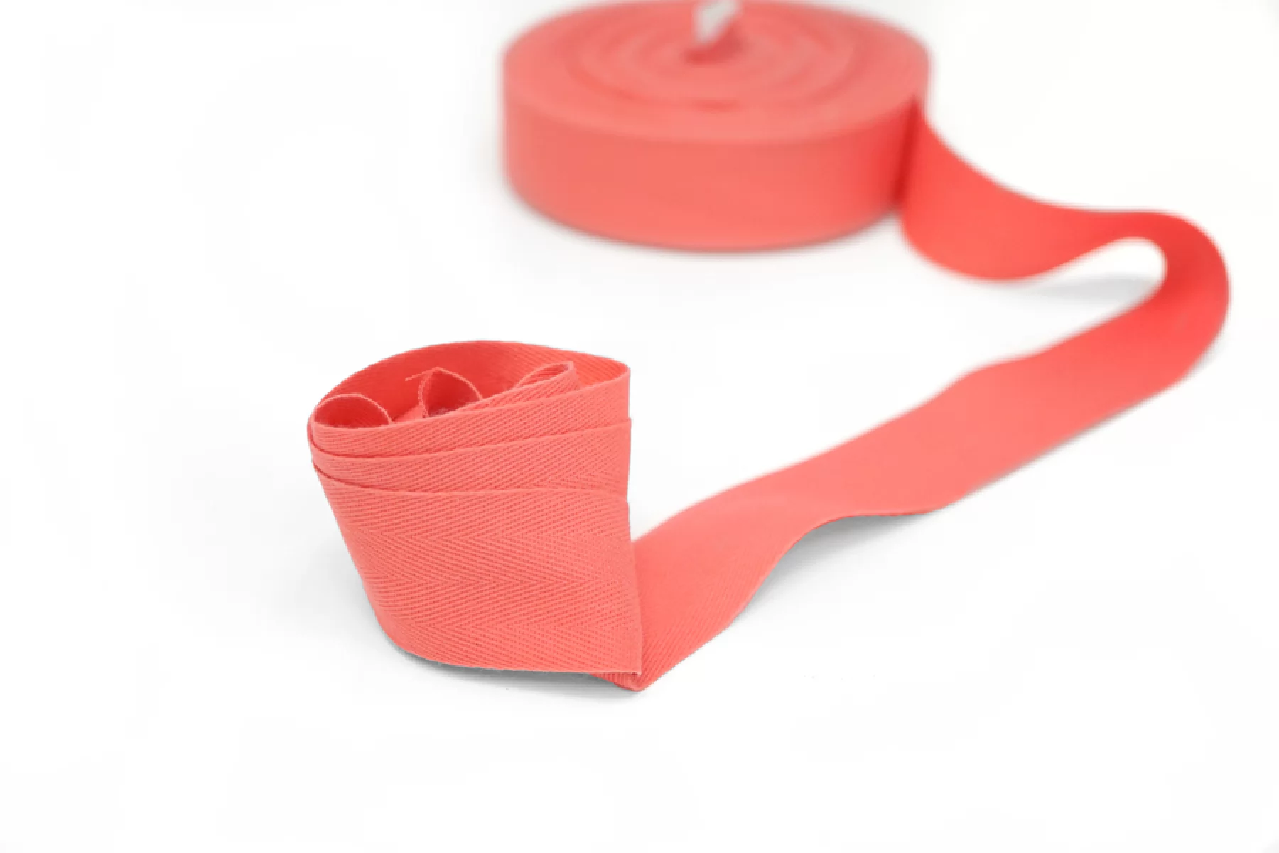 Лента киперная кораллового цвета, из хлопка, шириной 3 см.