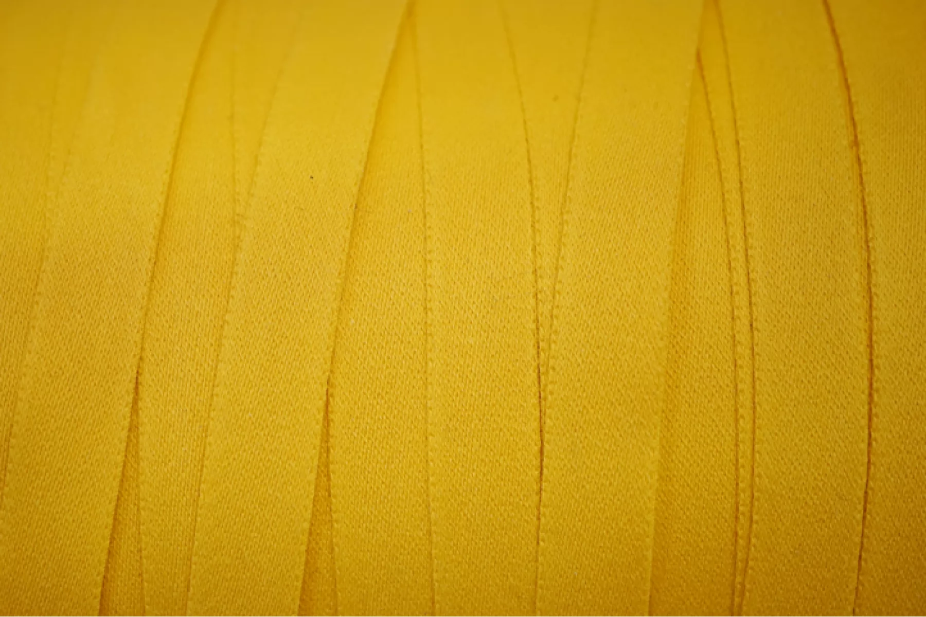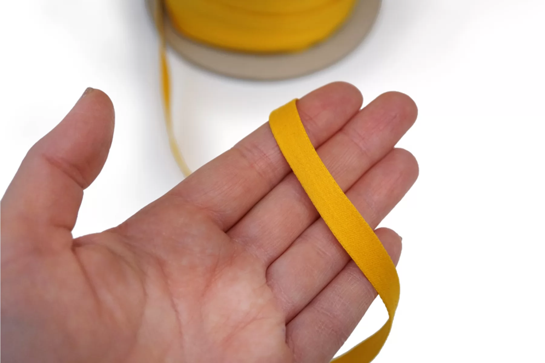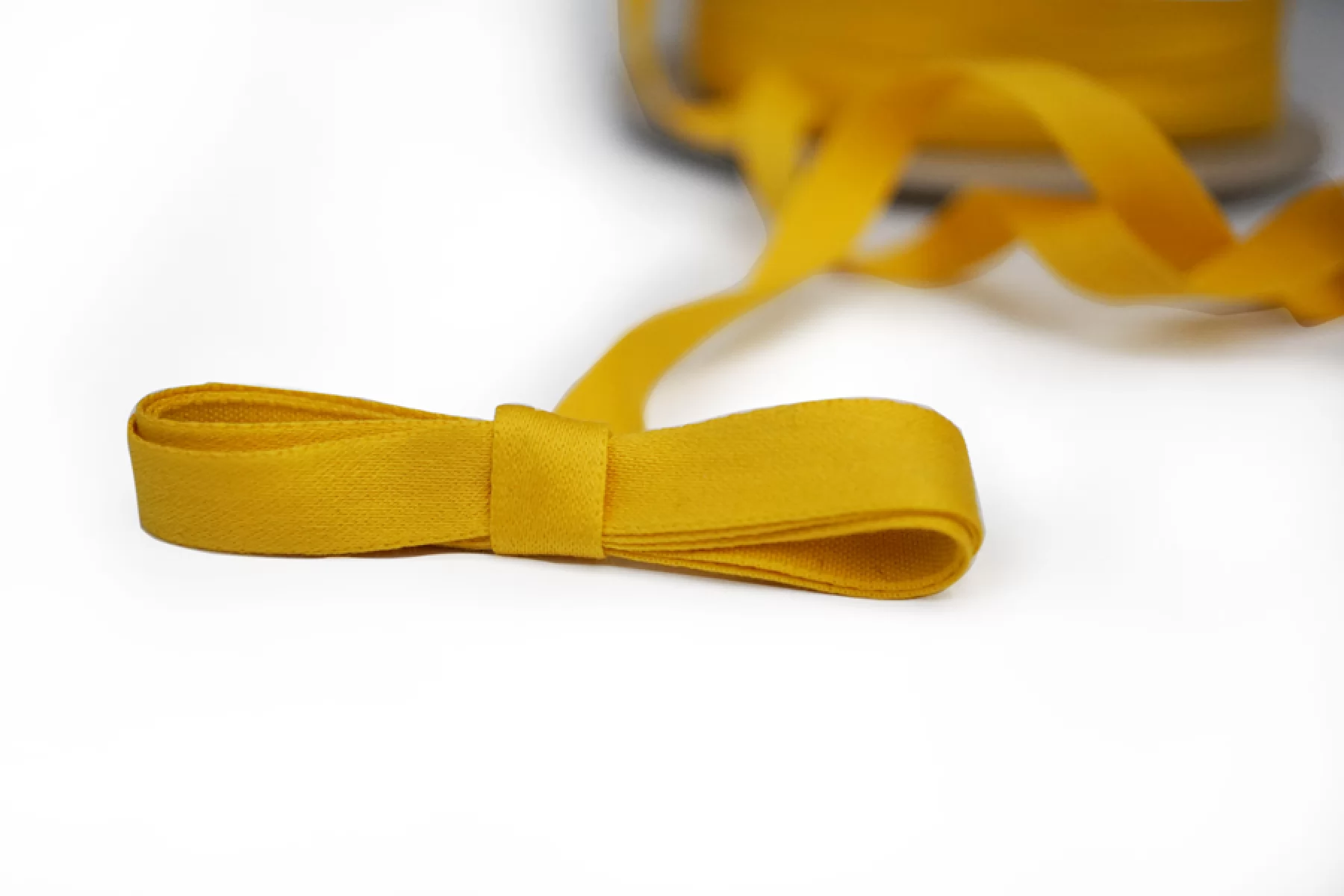 Хлопковая лента сатинового переплетения в желтом теплом оттенке. Тактильно мягкая, плотненькая, с легким лоском. Ширина 1 см. Используем как брючную тесьму, отделочную ленту для тонких тканей, как шнурки к трикотажным изделиям и не только, как бретели и еще много разных других вариантов. Цена указана за метр.