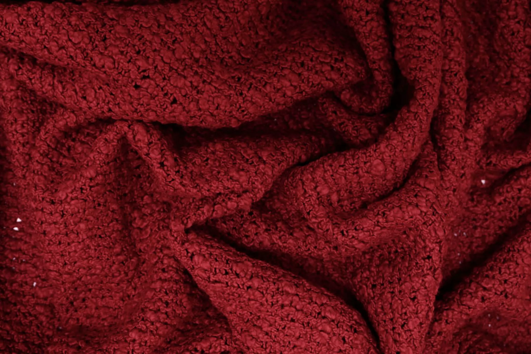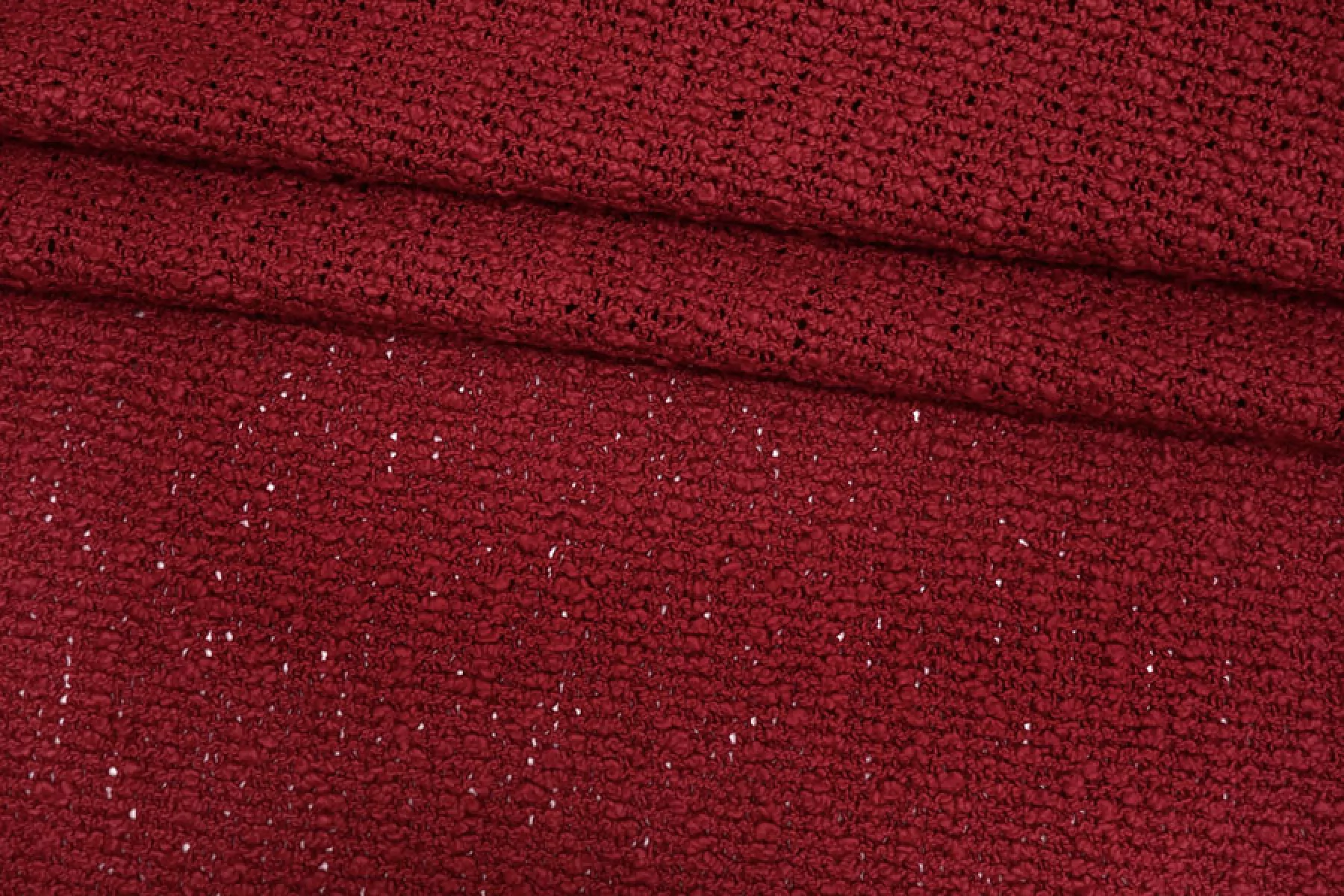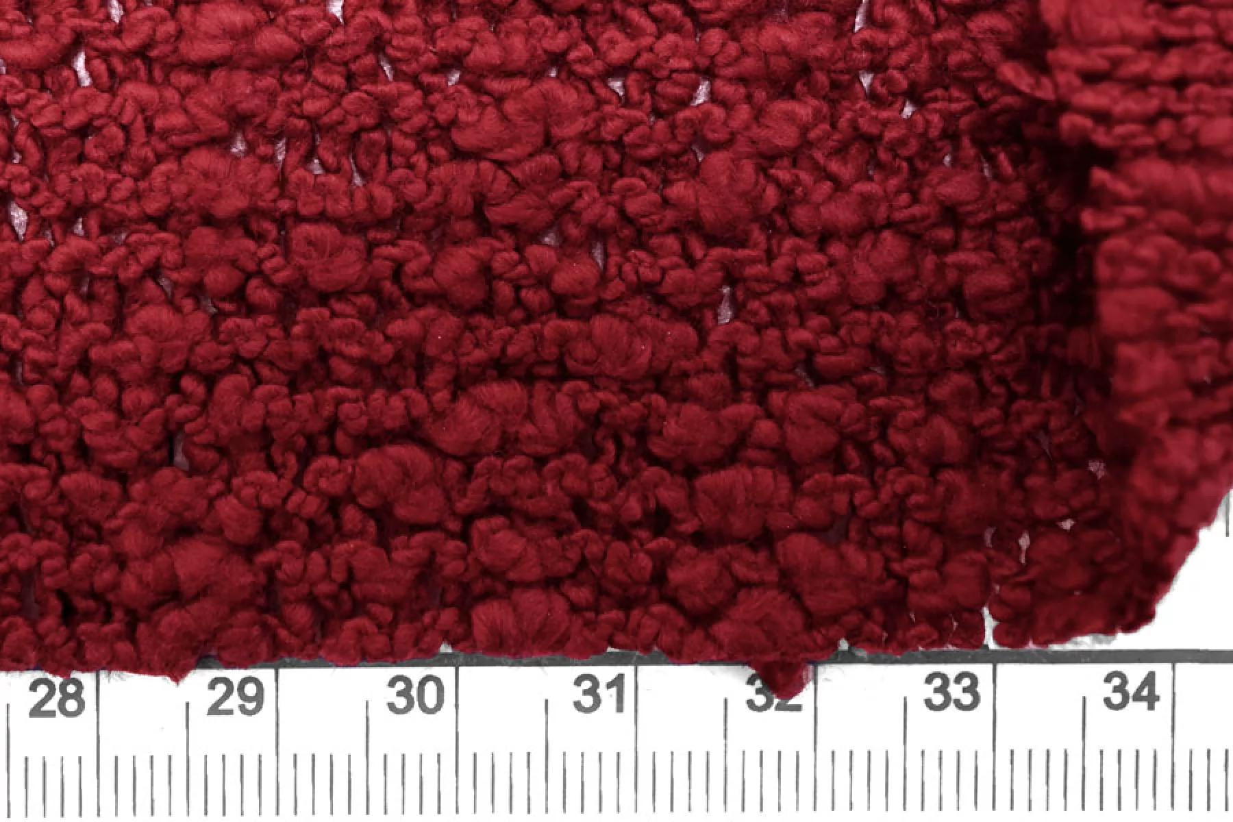Очень интересный фактурный хлопковый трикотаж, напоминает макраме, в малиновом оттенке. Материал тактильно суховатый, фактурный, мягкий. Плетение не плотное, поэтому просвечивает силуэт. Не тянется. Форм держит, довольно пластичен. Подойдет на мягкие жакеты, платья, юбки, накидки, туники. Учитывайте возможную усадку.