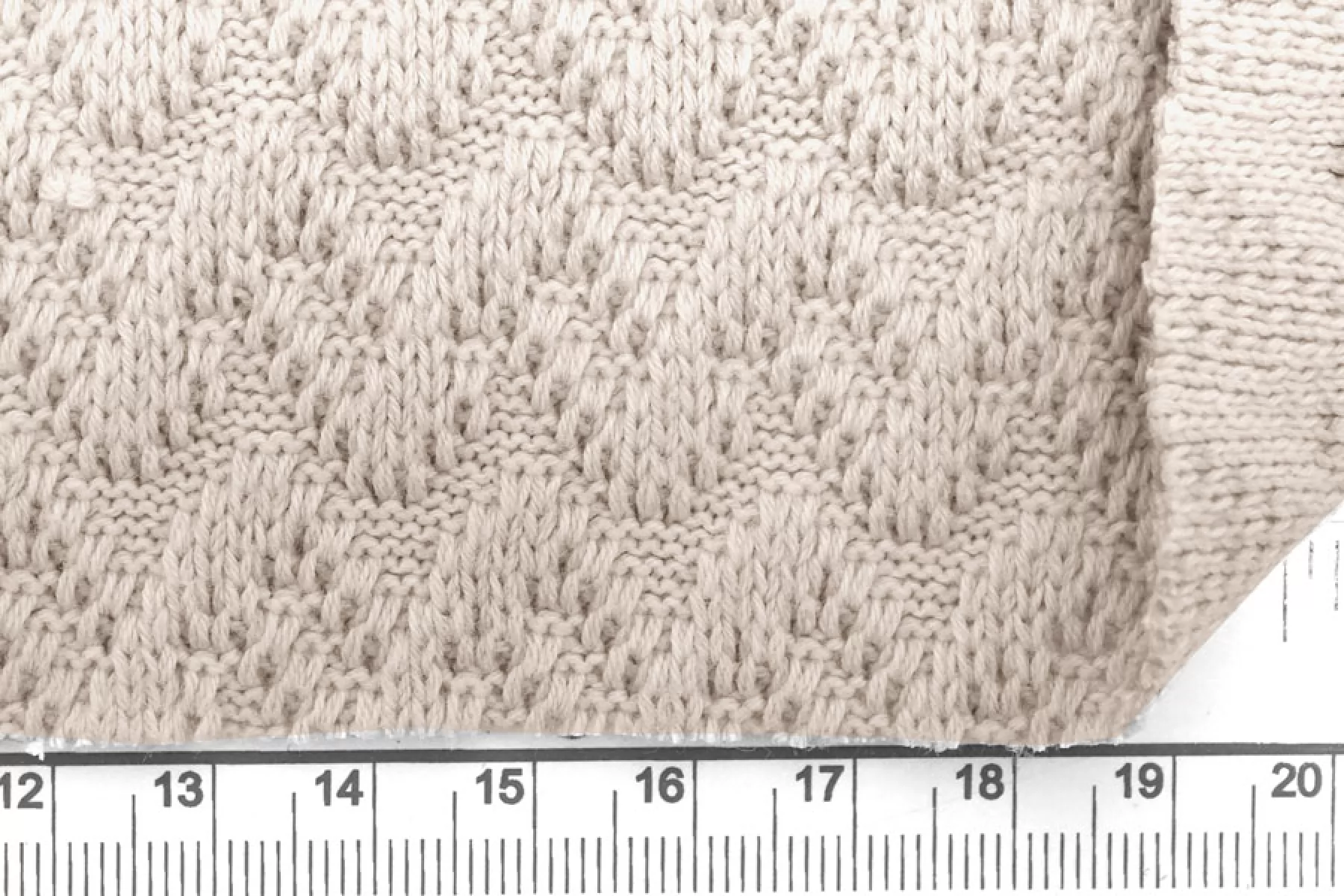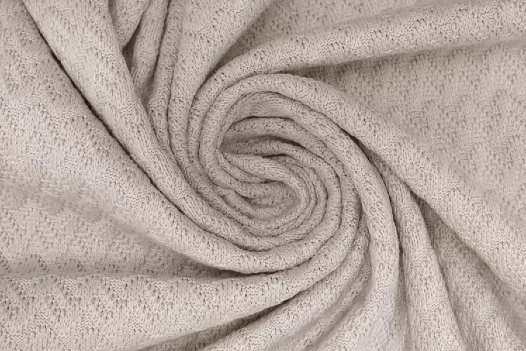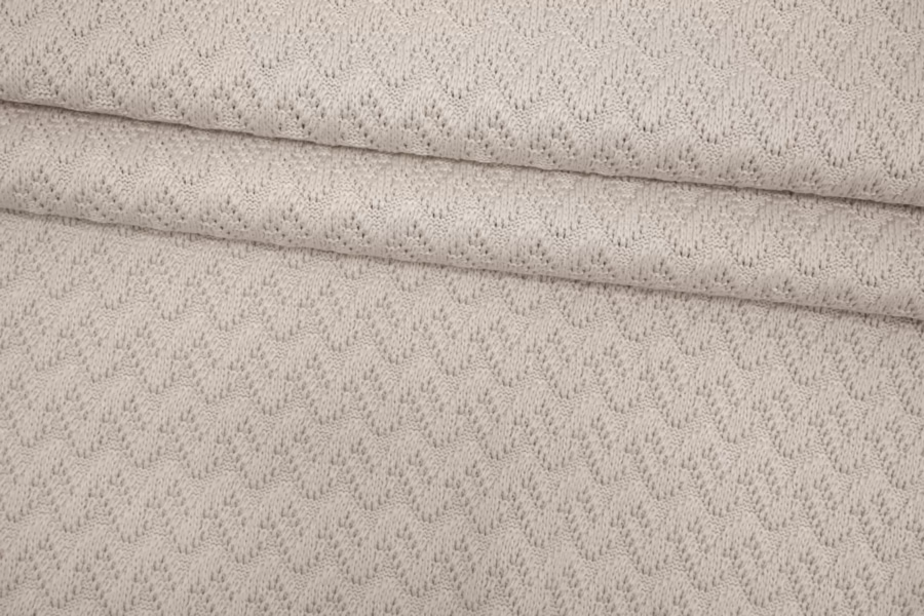 Очень интересный фактурный хлопковый трикотаж от MISSONI вязка напоминает зигзаг, цвет светло-бежевый с легким розоватым подтоном. Материал тактильно суховатый, плотный, немного жестковатый. Немного просвечивает при растяжении. Форму держит, довольно пластичен. Подойдет на жакеты, платья, юбки, костюмы. Учитывайте возможную усадку.