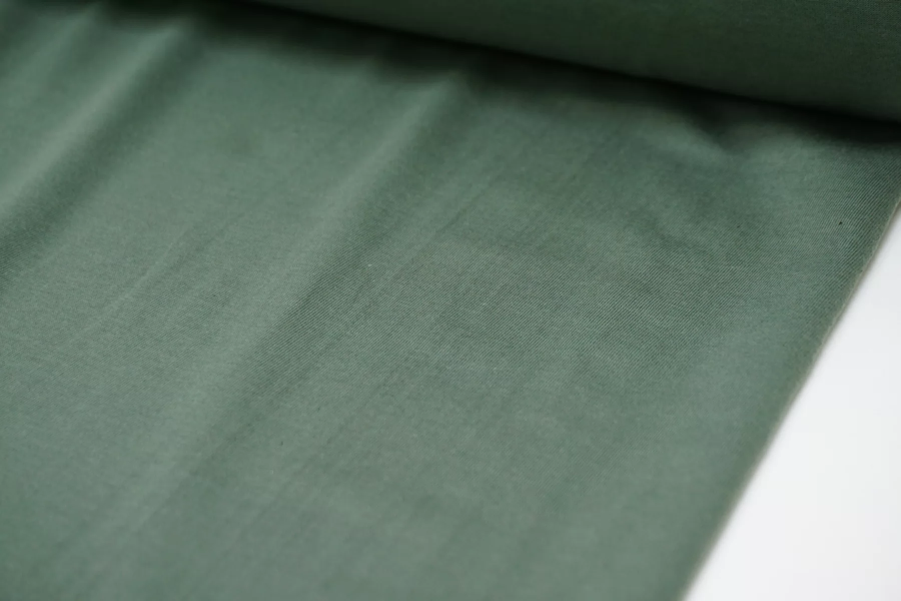 Внимание!! Трикотаж "полосит" - под определенным углом видны светлые полосы см. на фото! Итальянский трикотаж - кулирная гладь из хлопка в зеленом цвете хаки. Трикотаж немного просвечивает, пластичный, эластичный. Подойдет для пошива майки, футболки, топа, платья-футболки, домашней одежды.