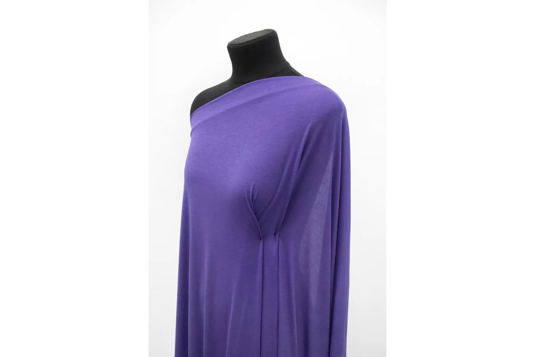 Итальянский трикотаж - кулирная гладь из хлопка в сиреневом цвете. Трикотаж немного просвечивает, пластичный, эластичный. Подойдет для пошива майки, футболки, топа, платья-футболки, домашней одежды.