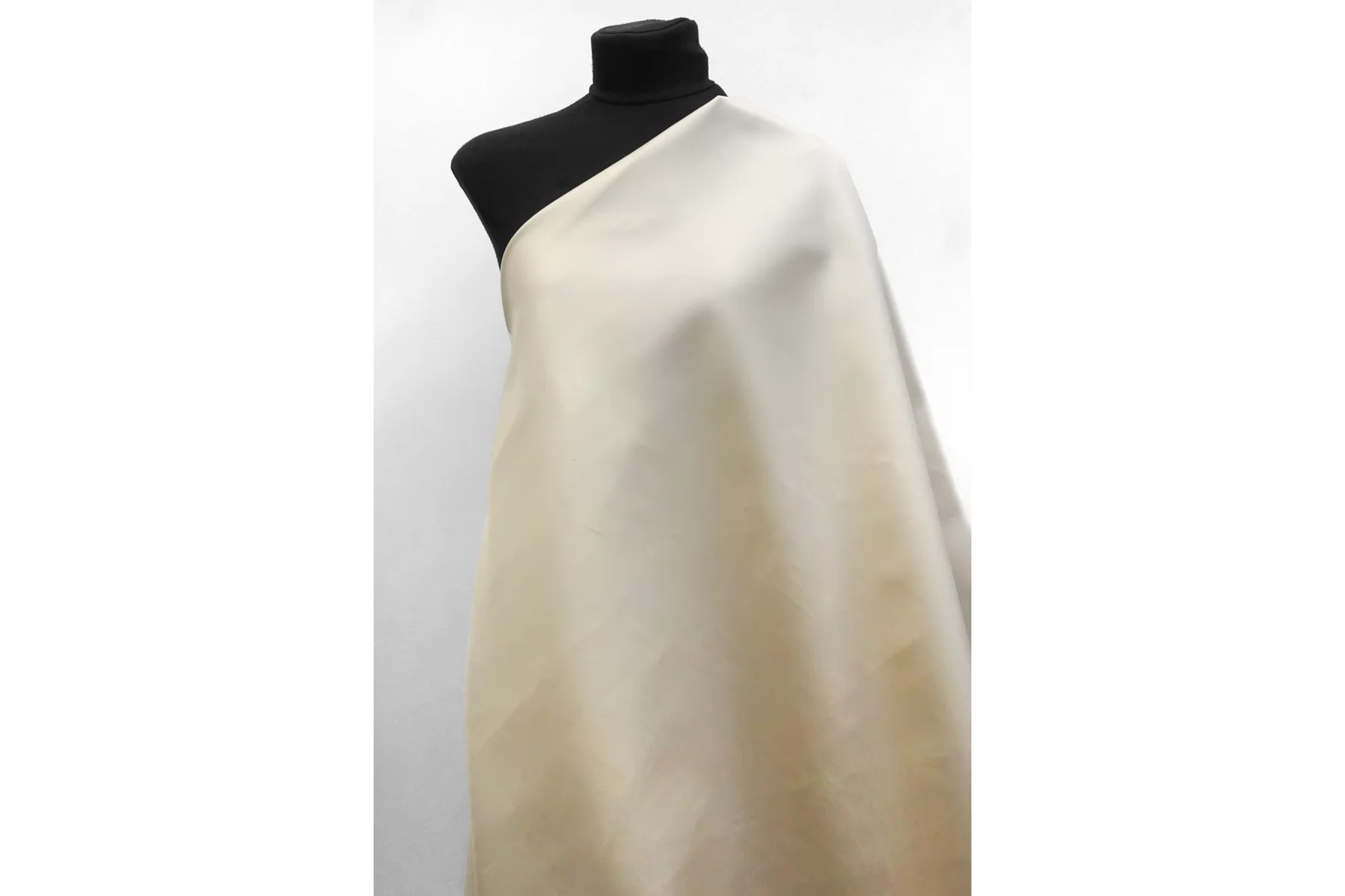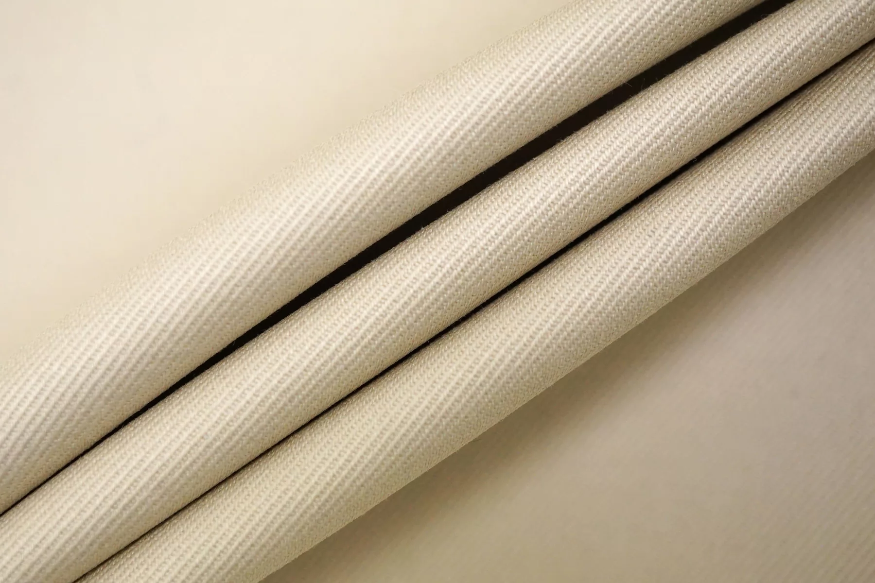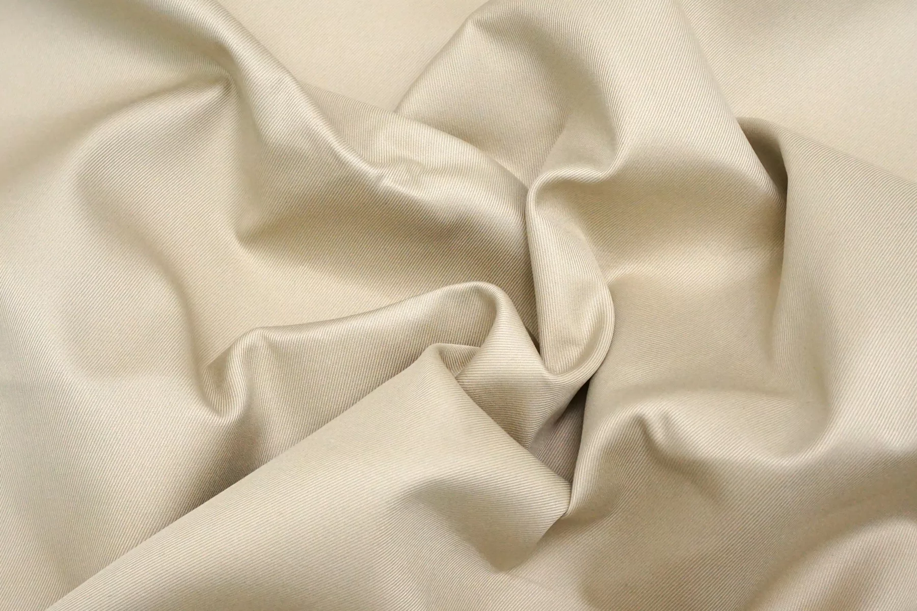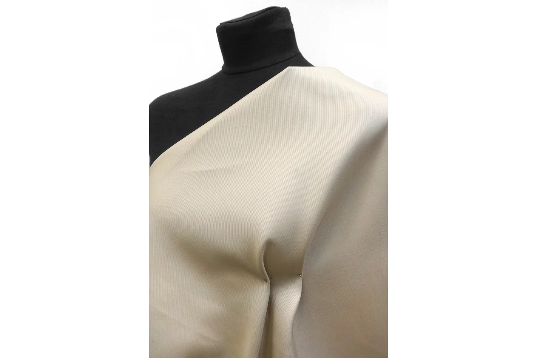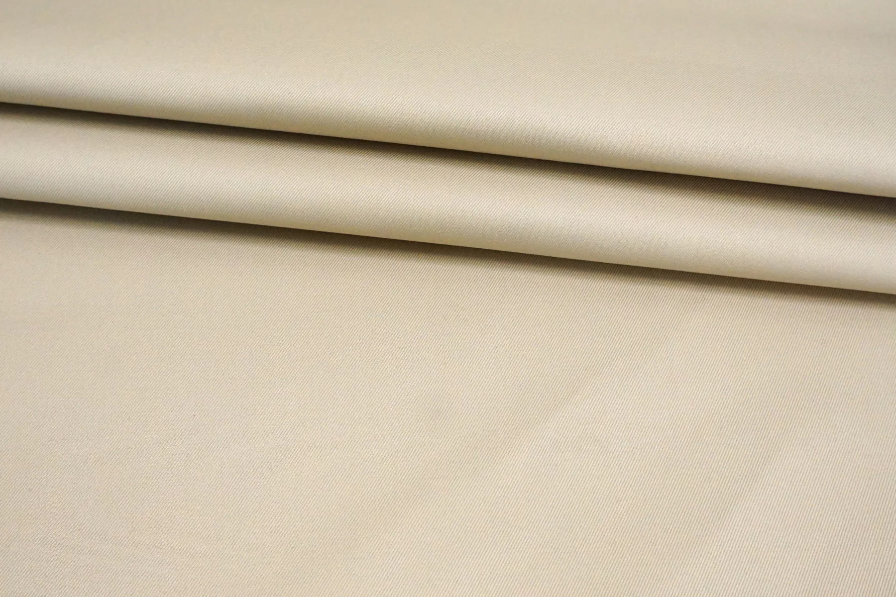 Костюмный двусторонний хлопок дабл диагонального плетения, в светлом серо-бежевом цвете. Материал плотный, мягкий и приятный. Состоит из двух слоев, сшитых между собой - разделяются. Пластичный, хорошо держит форму и держит складки. Слегка тянется. Не просвечивает. Мнется. Отличный вариант на костюмы, жакеты, юбки, отрезные платья и не только.