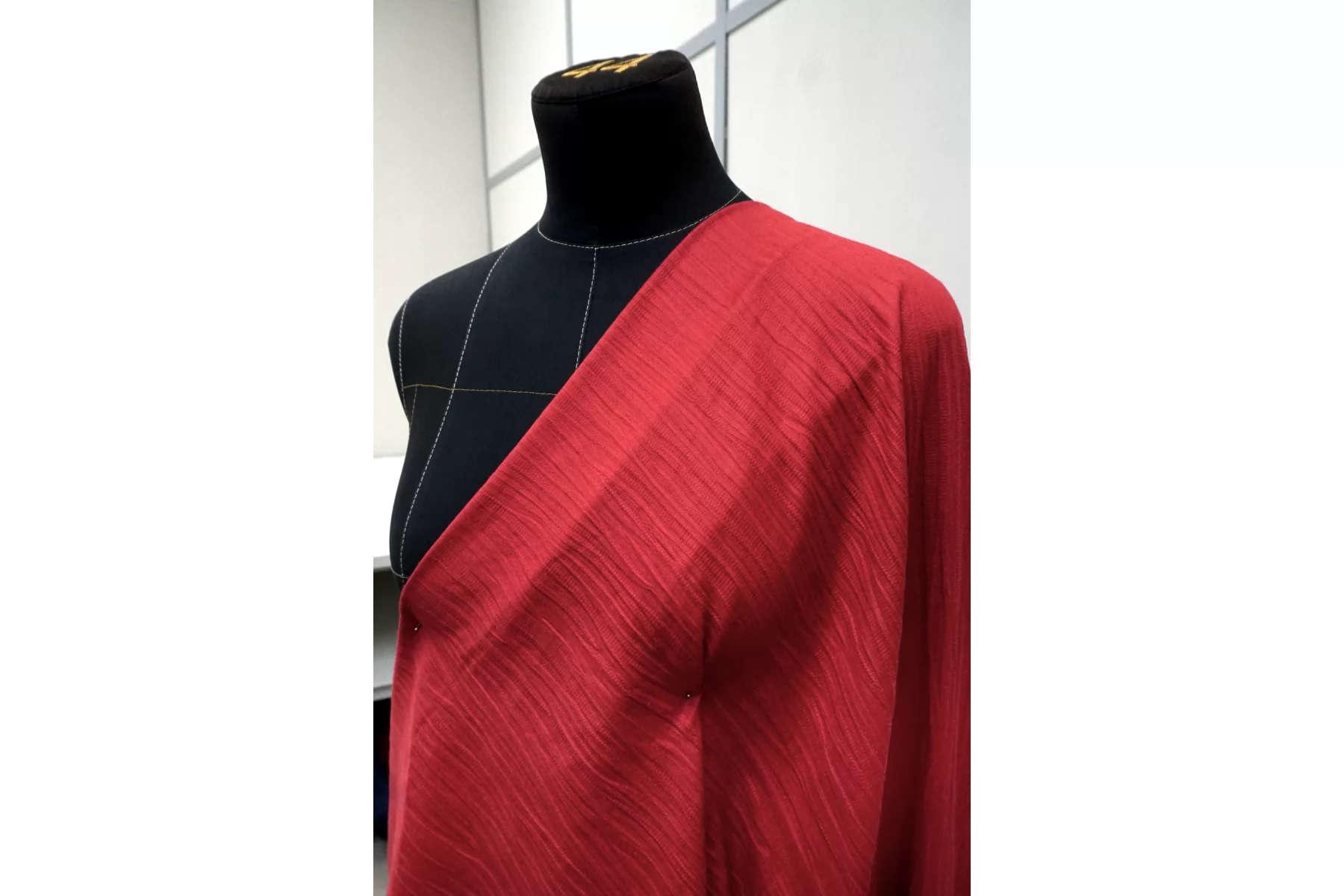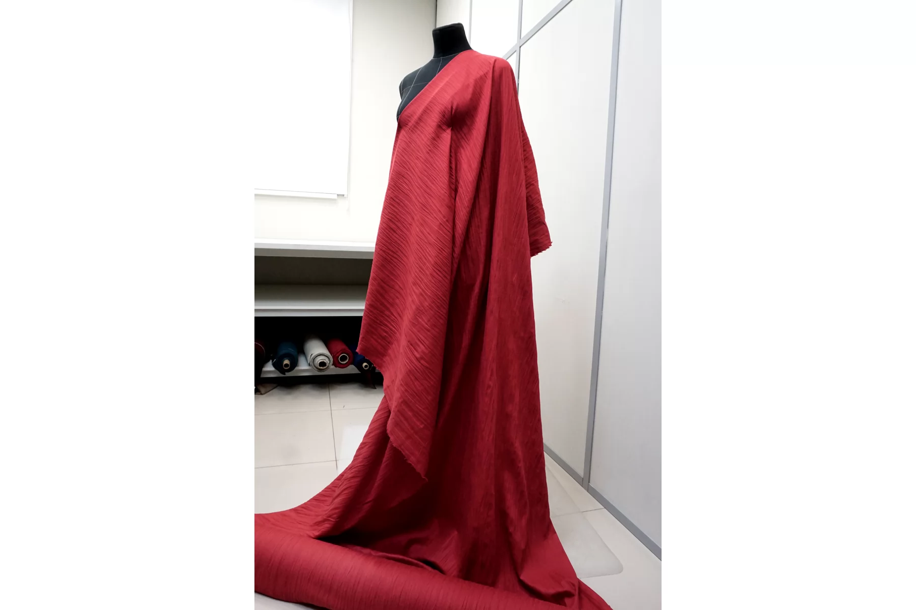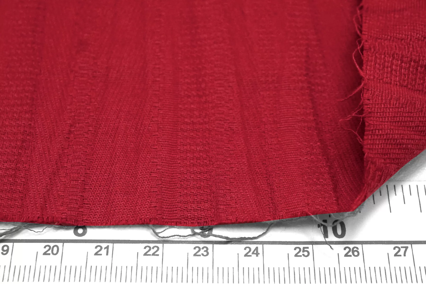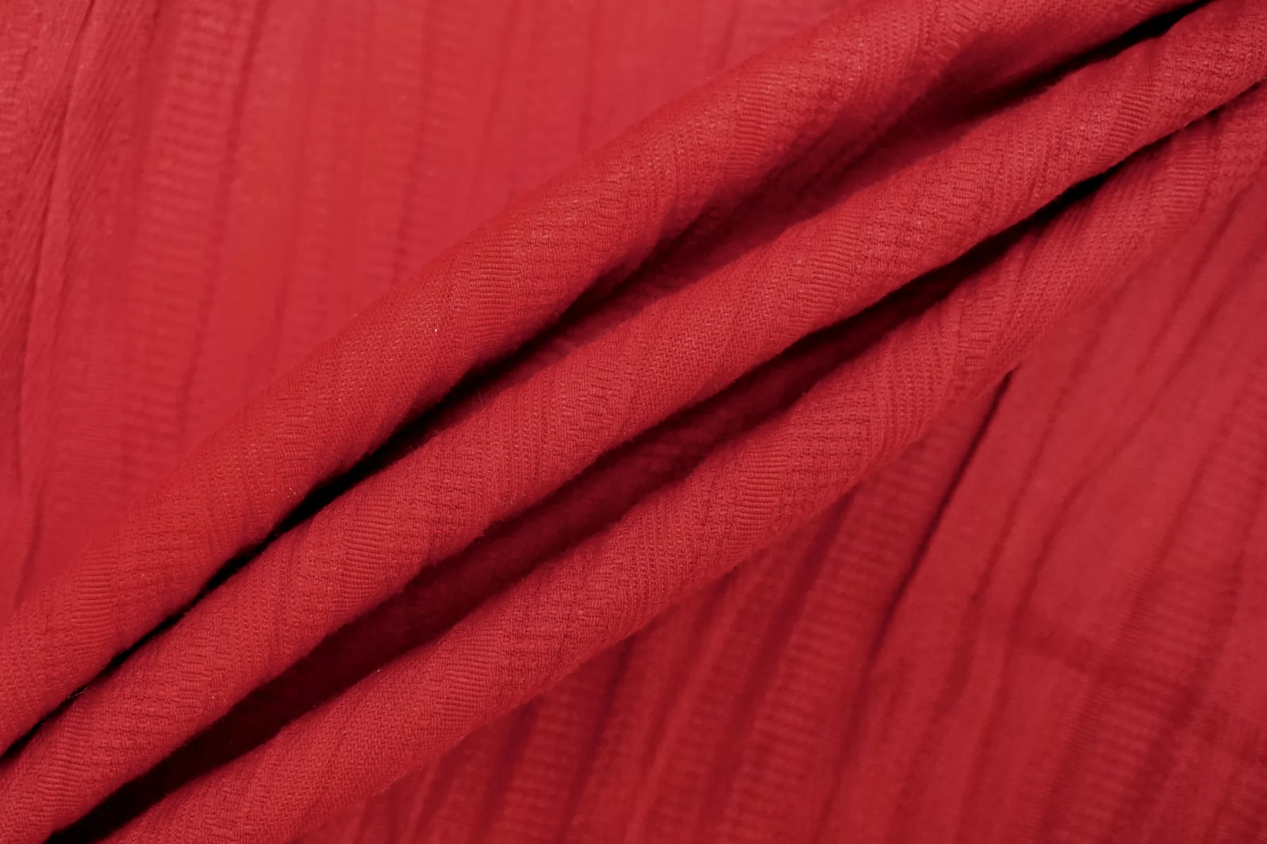 Костюмно-плательный хлопок в красном цвете с фактурным плетением. Пластичный, не тянется. Немного держит форму. Не просвечивает. Прекрасно подойдет на платья, юбки, лёгкие летние костюмы. Учитывайте усадку материала.