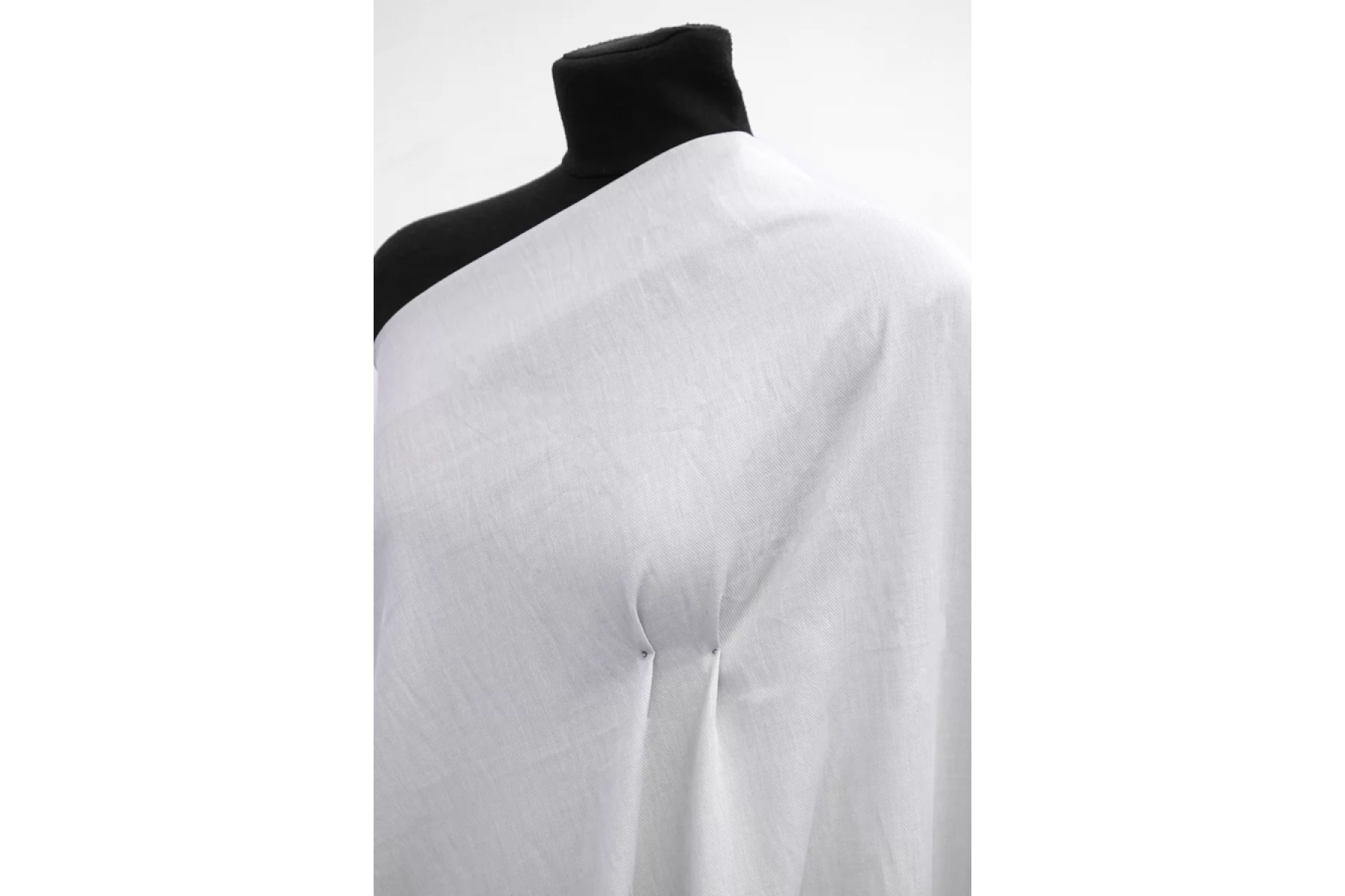 Итальянский хлопок рубашечно-плательной плотности фактурной выработкой, цвет светлый серый. Материал гладкий, мягкий, тонкий. Немного мнется. Немного просвечивает силуэт в один слой, не тянется. Пластичный, форму не держит. Прекрасный вариант на рубашки, юбки, платья. Материал дает усадку.
