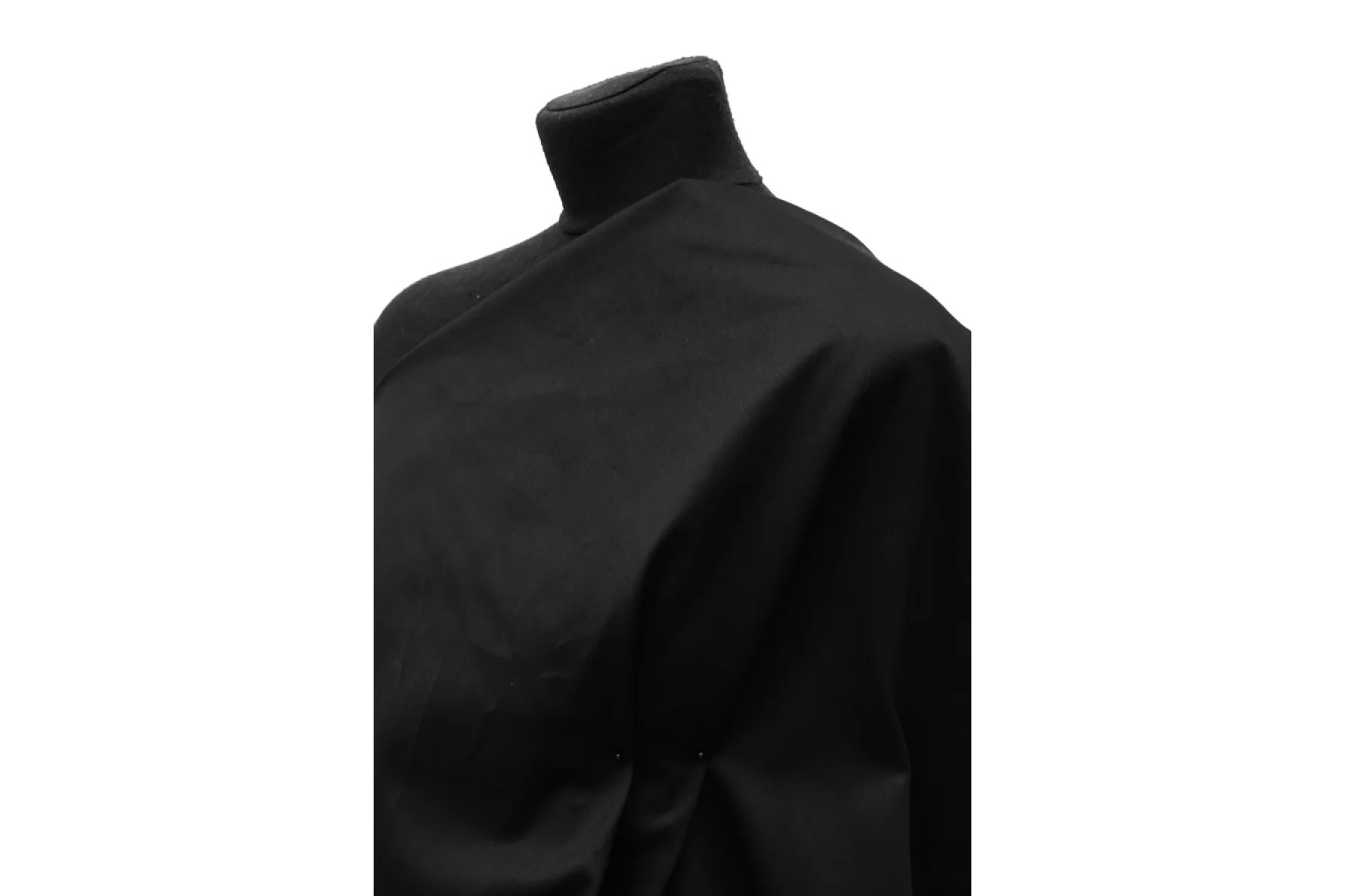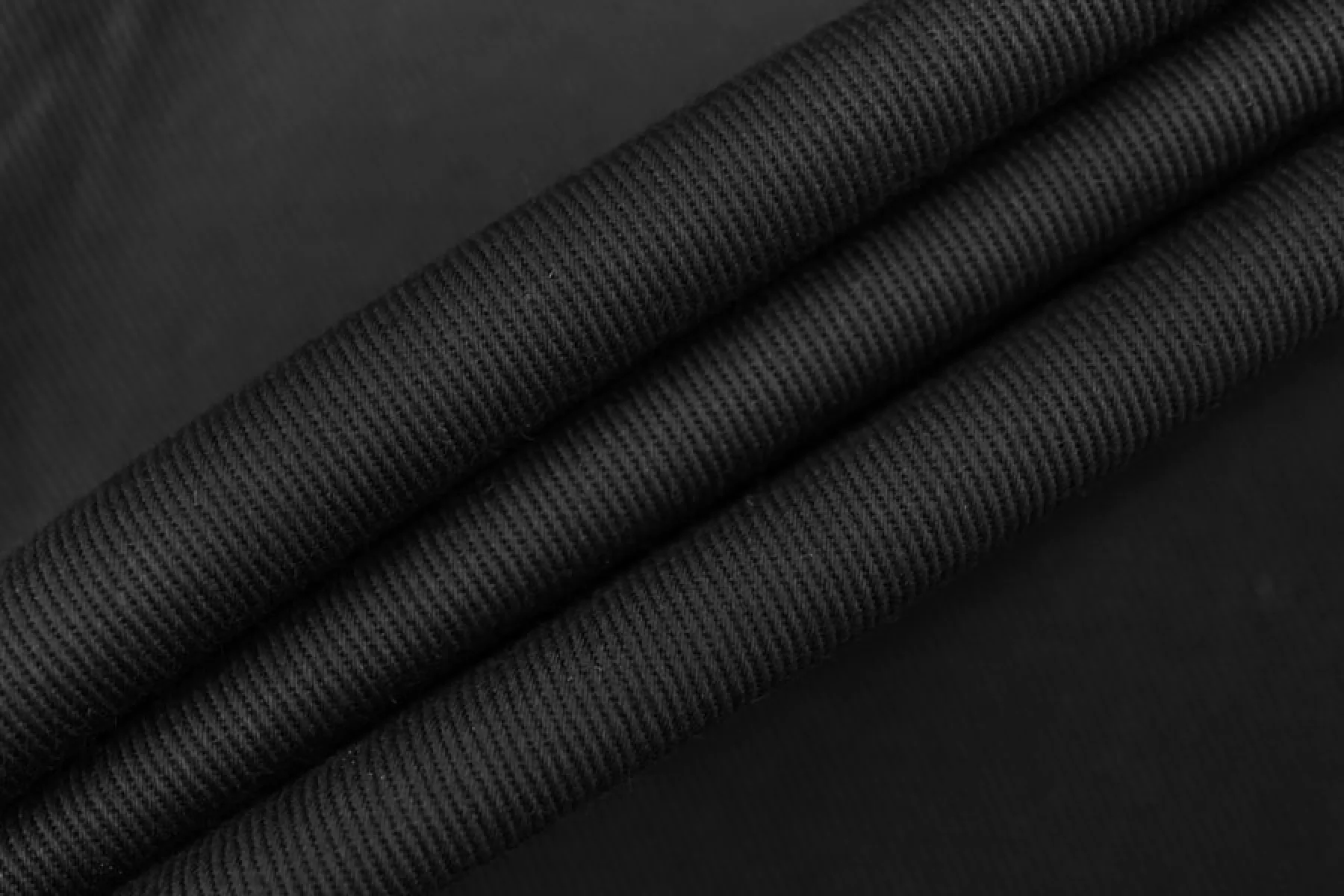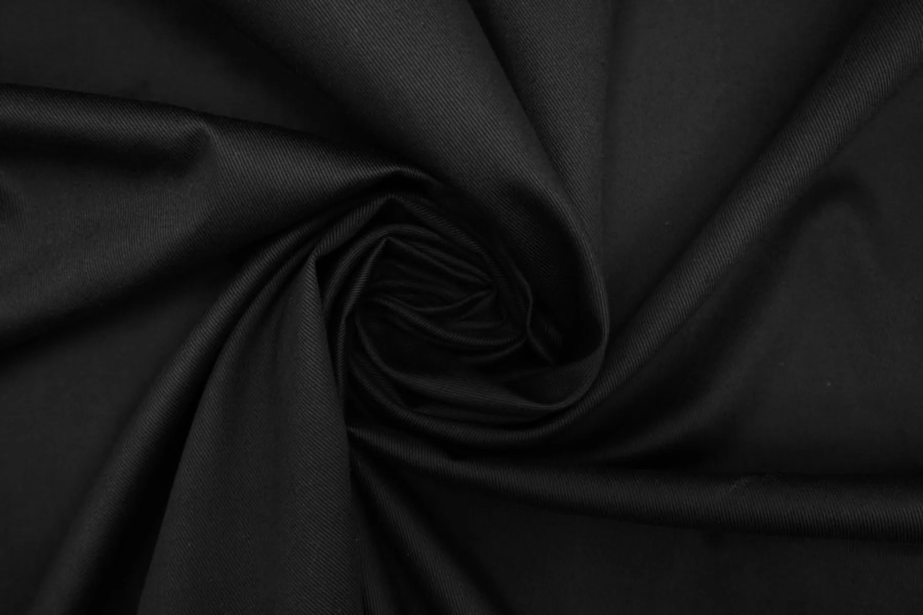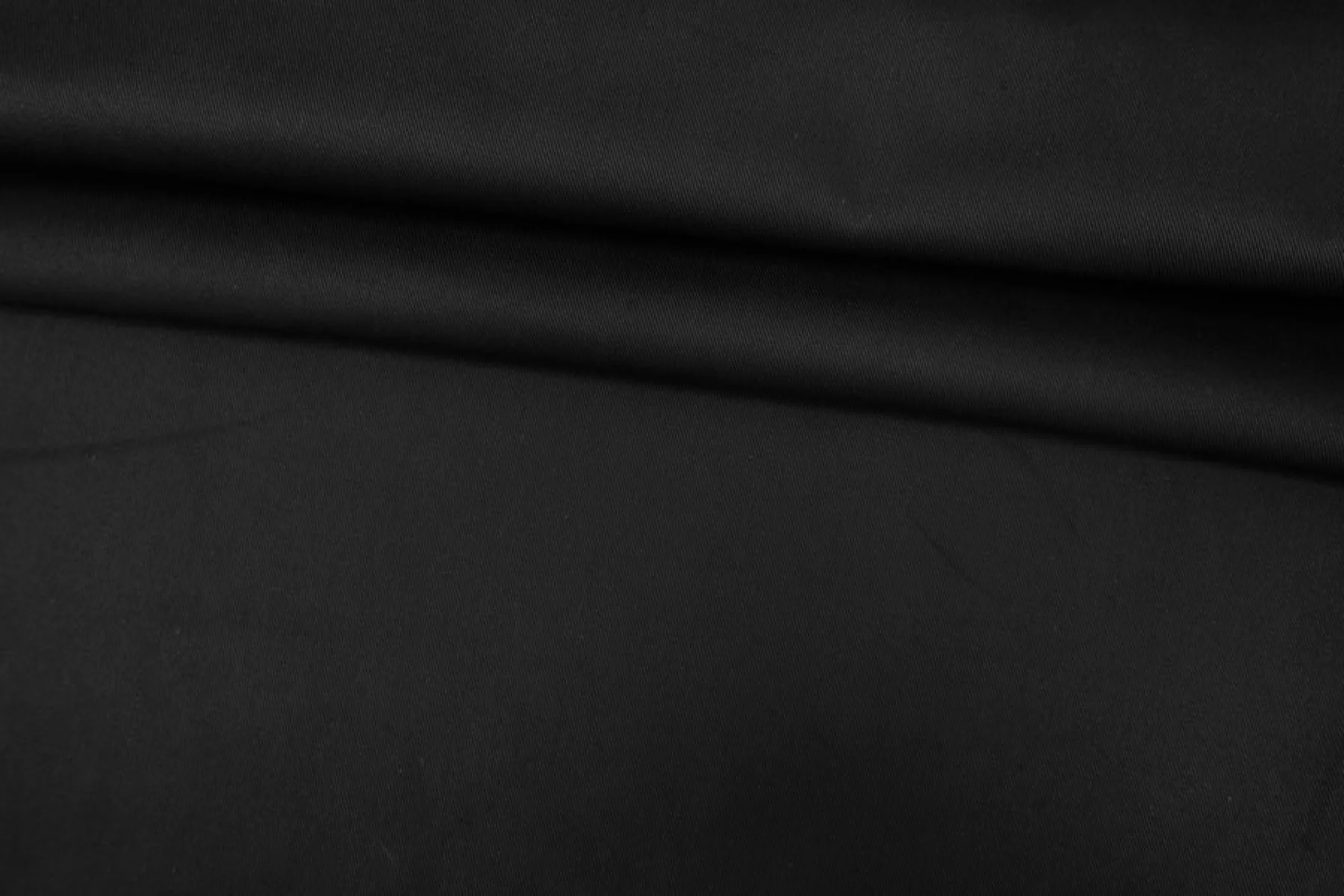 ВНИМАНИЕ!! Присутствуют зацепки см. фото. Костюмно-плательный хлопок диагонального плетения, в чёрном цвете. Напоминает тонкую джинсу. Не просвечивает, не тянется. Мнется средне, держит форму, пластичный. Шьем костюмы, платья, юбки, брюки.