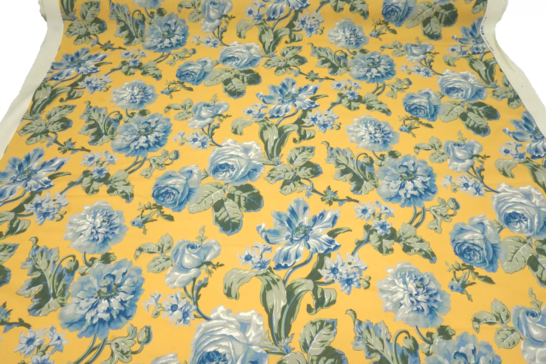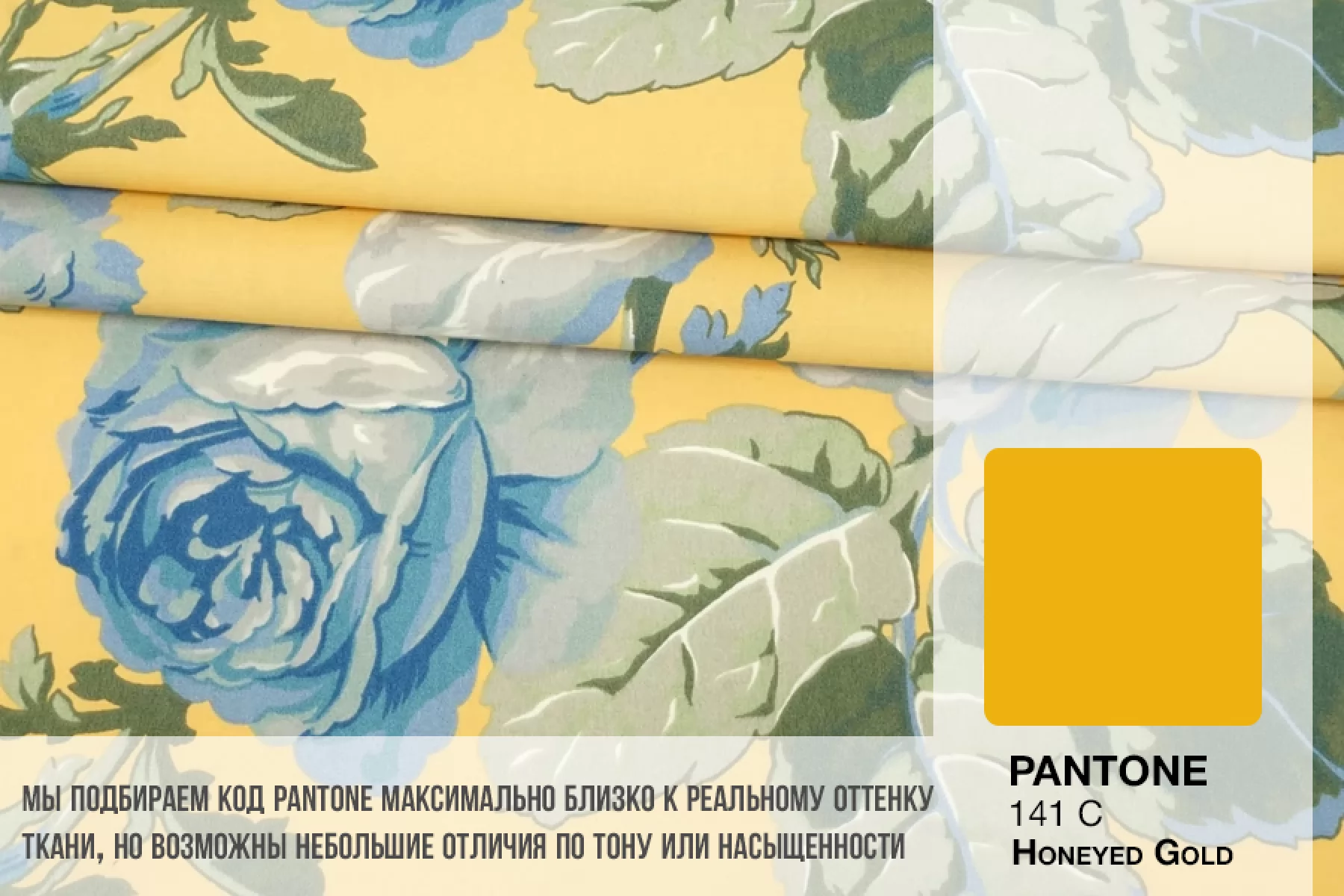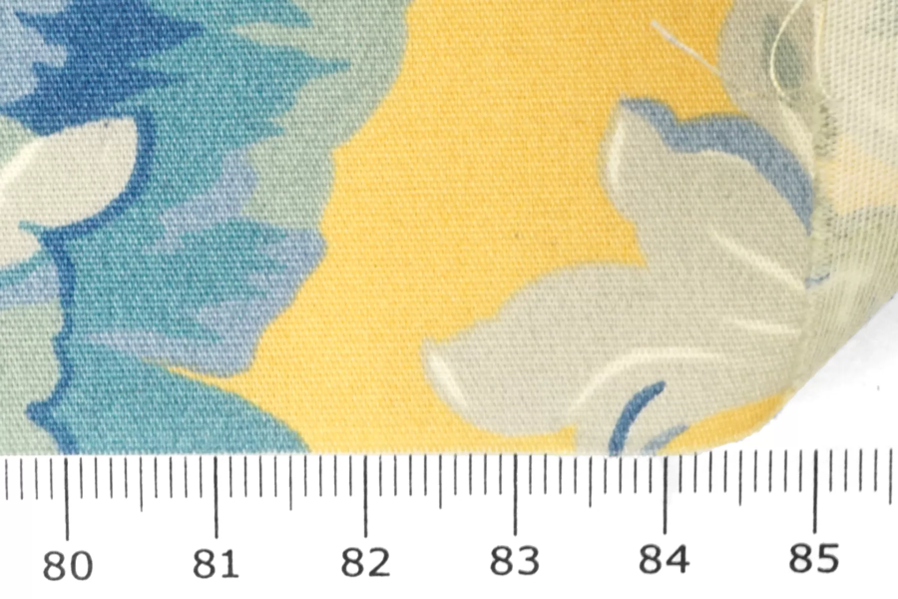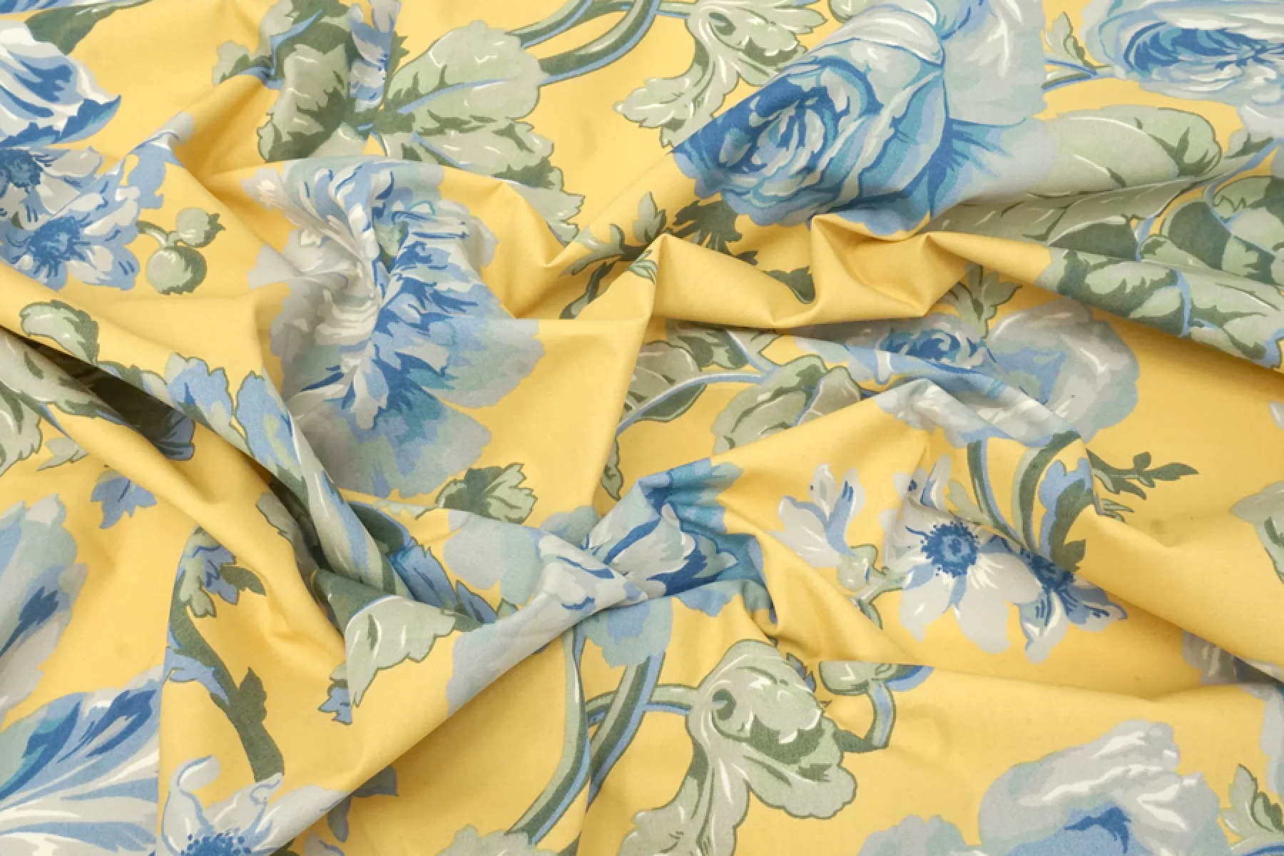 Костюмно-плательный хлопок ненасыщенно-желтого оттенка с цветочным принтом, в также ненасыщенных оттенках голубого, синего, серого, зеленого. Тактильно материал плотный, гладкий. Отлично держит форму и драпируется. Не просвечивает и не тянется. Мнется. Прекрасно подойдет на платья, костюмные варианты, жакеты и юбки.