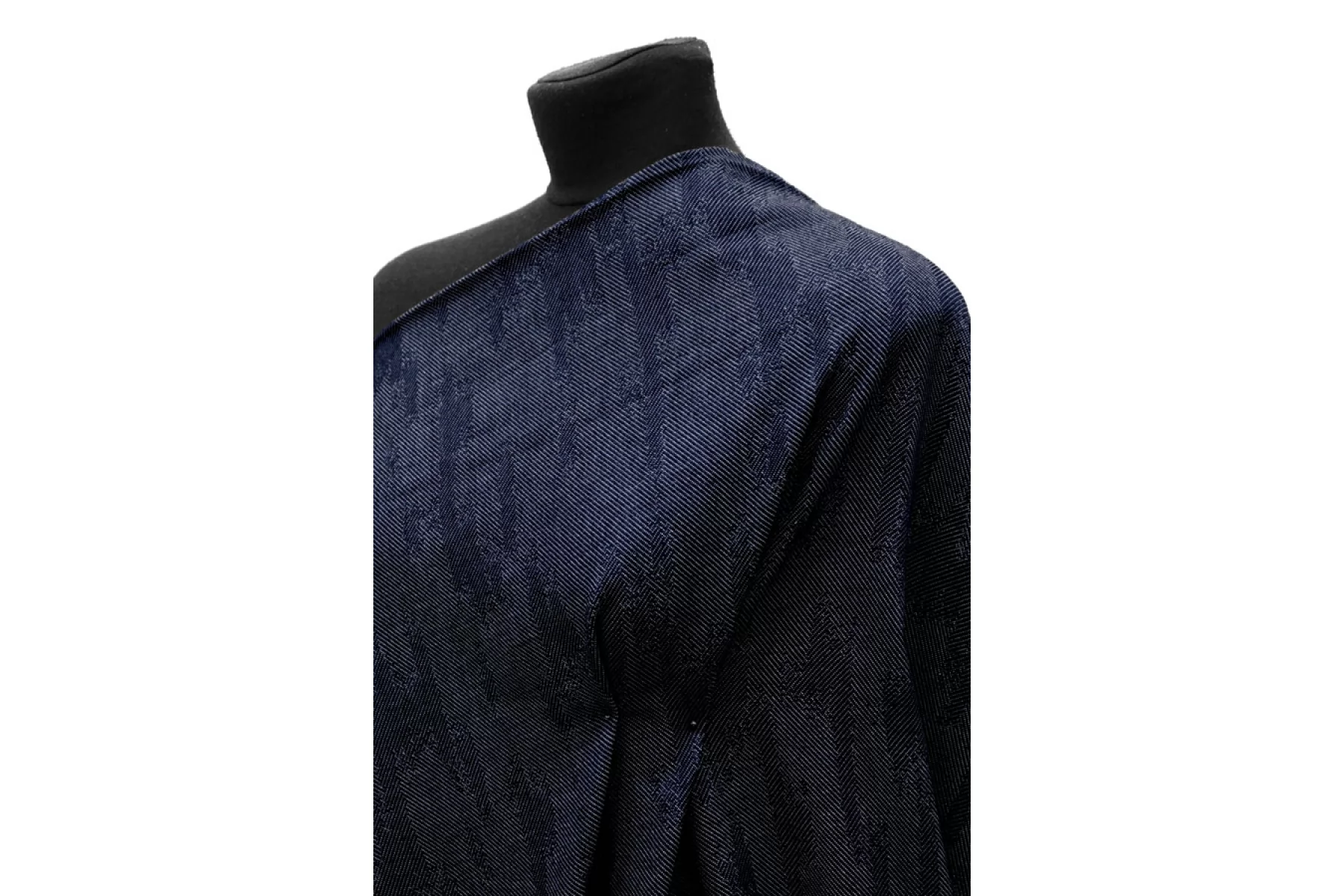 Внимание! Присутствуют еле заметные желтые разводы с изнанки см. фото! Итальянский хлопок "под джинсу" костюмно-плательной плотности диагонального плетения из нитей тёмно-синего и белого цвета. Материал пластичный, мягкий. Немного тянется благодаря плетению. Пластичный но при этом держит форму. Не просвечивает. Практически не мнется. Отличный вариант на платья в джинсовом стиле, брюки, юбки. Учитывайте усадку.