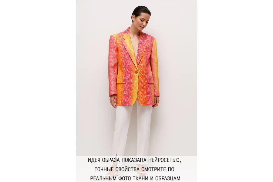 Прекрасный хлопок MISSONI костюмно-плательной плотности диагонального плетения в интересном абстрактном принте розово-кораллового и белого цвета. Немного бархатистый наощупь, мягкий. Не просвечивает. Отлично тянется. Держит форму. Сминается, частично восстанавливается. Подойдет для пошива легкого летнего костюма, платья, юбки, брюк. Учитывайте возможную усадку.