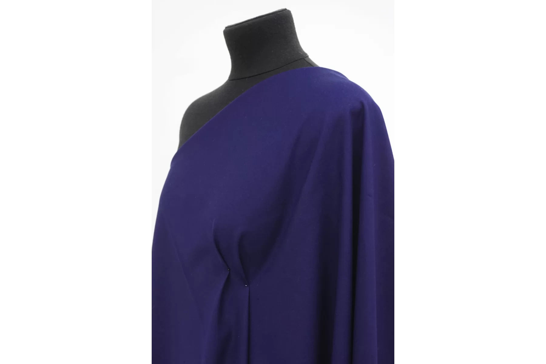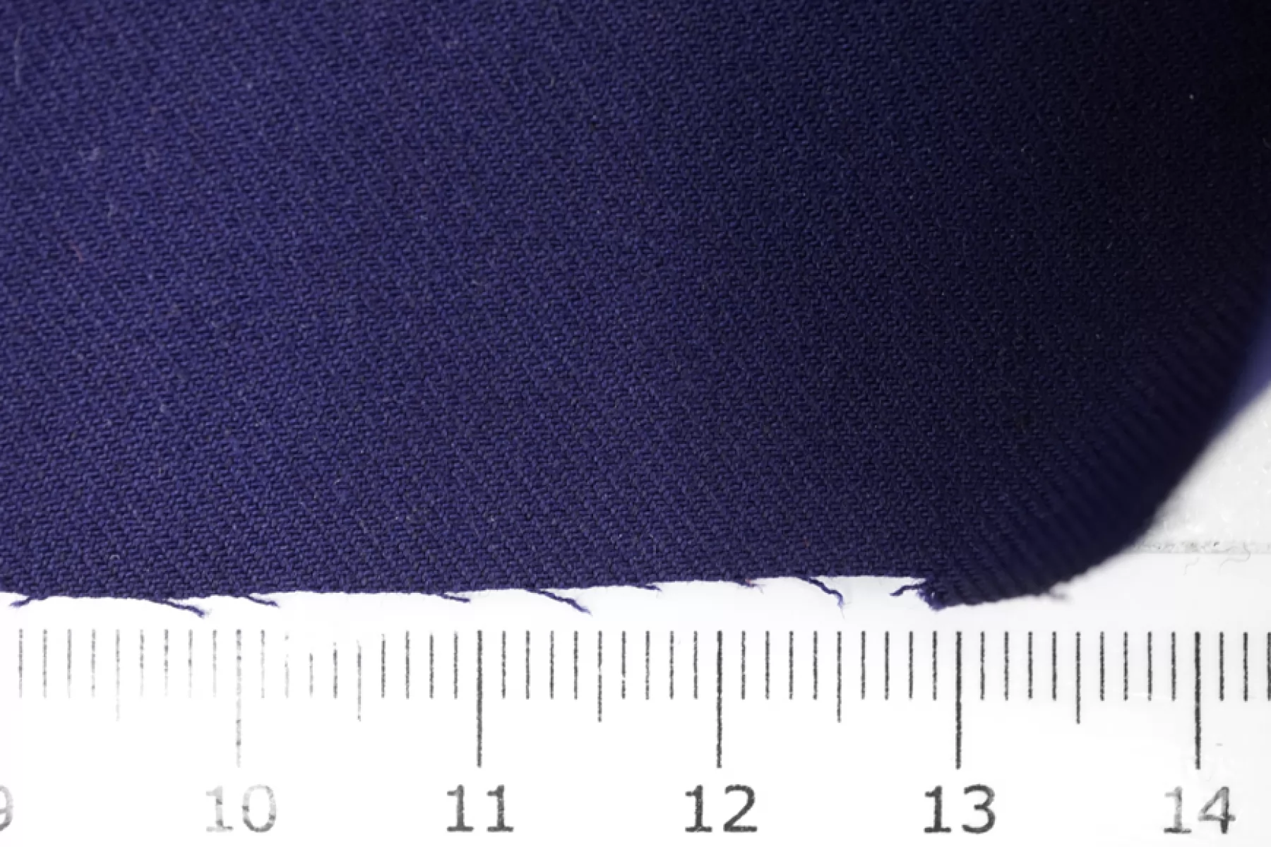 Костюмно-плательный хлопок стрейч диагонального плетения глубокого синего цвета. Тактильно материал очень приятный, гладкий, мягкий. Достаточно плотный и слегка похрустывающий. Упруго, но хорошо тянется за счет содержания эластана. Не просвечивает, хорошо держит форму. Шьем костюмы, платья, юбки, жакеты, а также шорты и брюки.