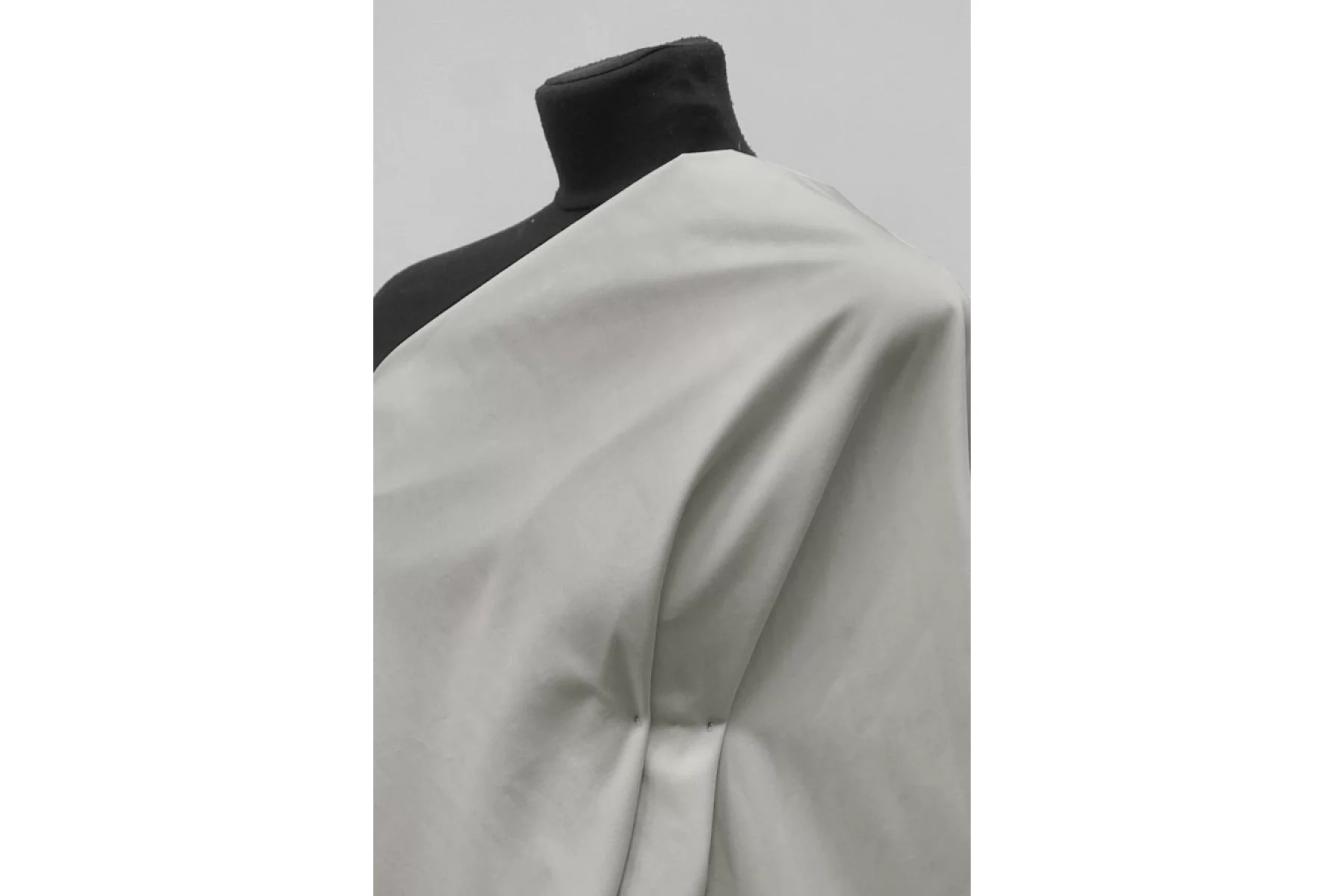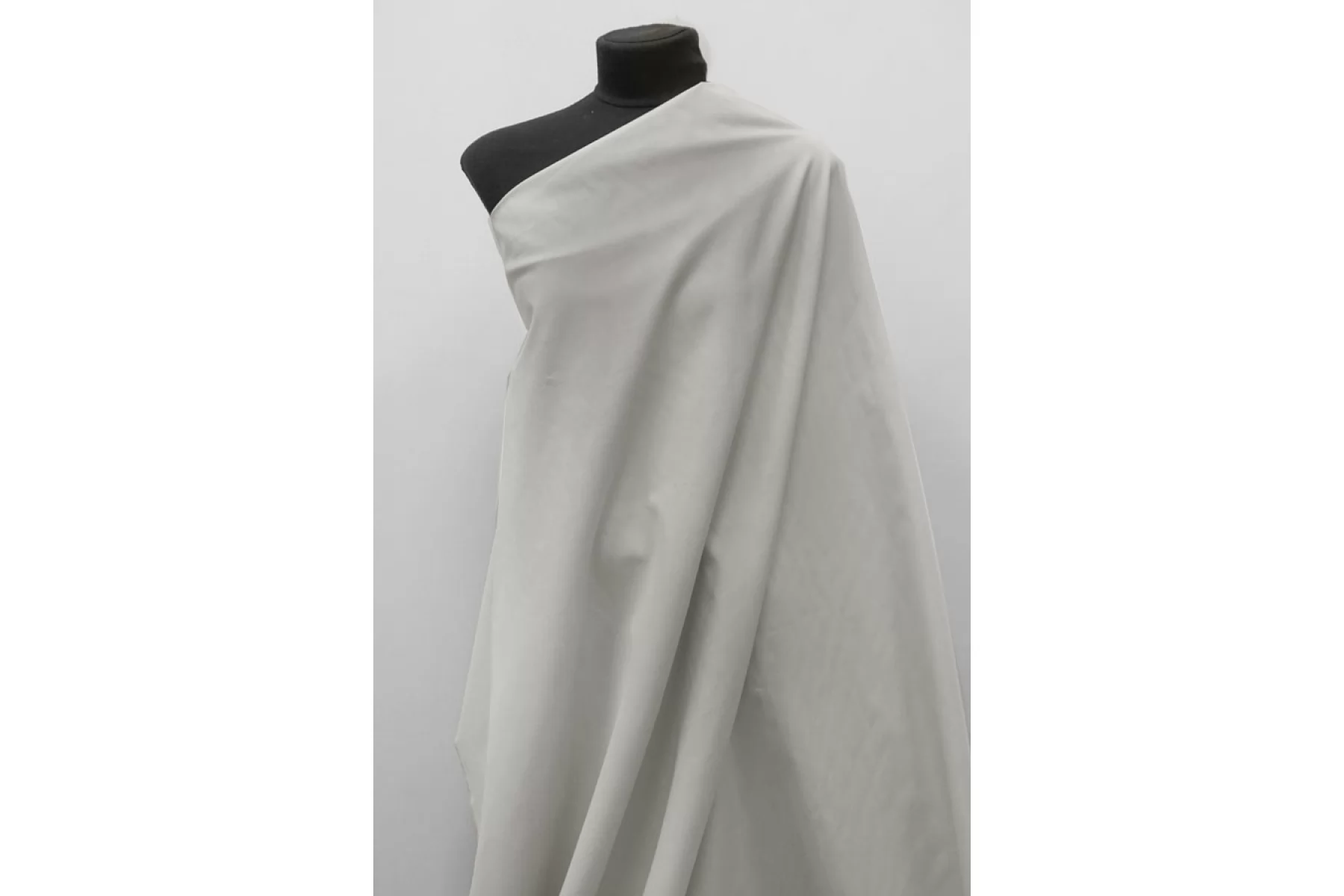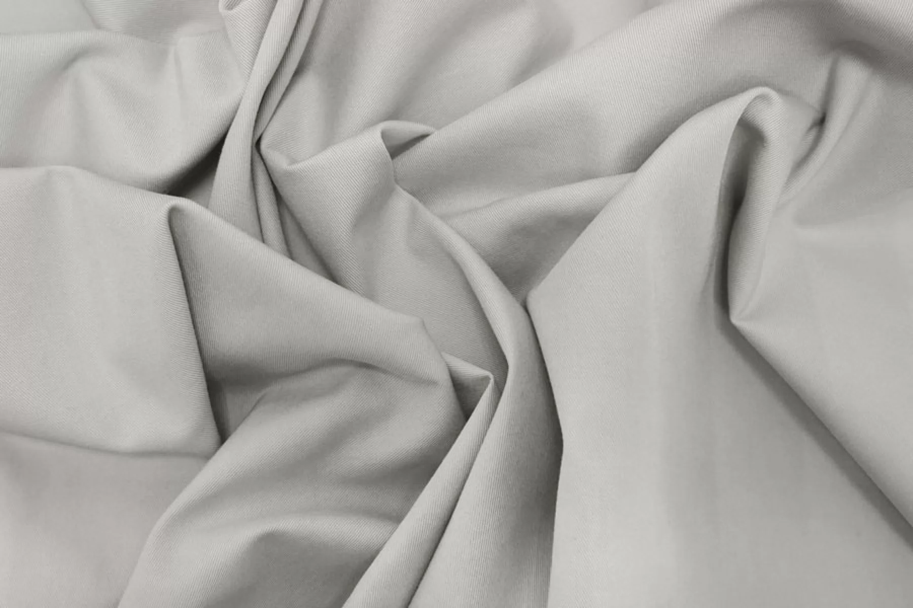 Итальянский костюмно-плательный хлопок в светлом сером цвете (с легким бежевым подтоном), диагонального плетения. Пластичный и держащий форму, тактильно гладкий и приятный. Немного просвечивает в один слой, мнется. Подойдет на платья, брюки, юбки (учитывайте, что не тянется).