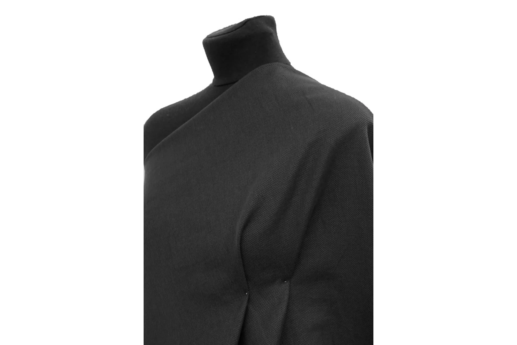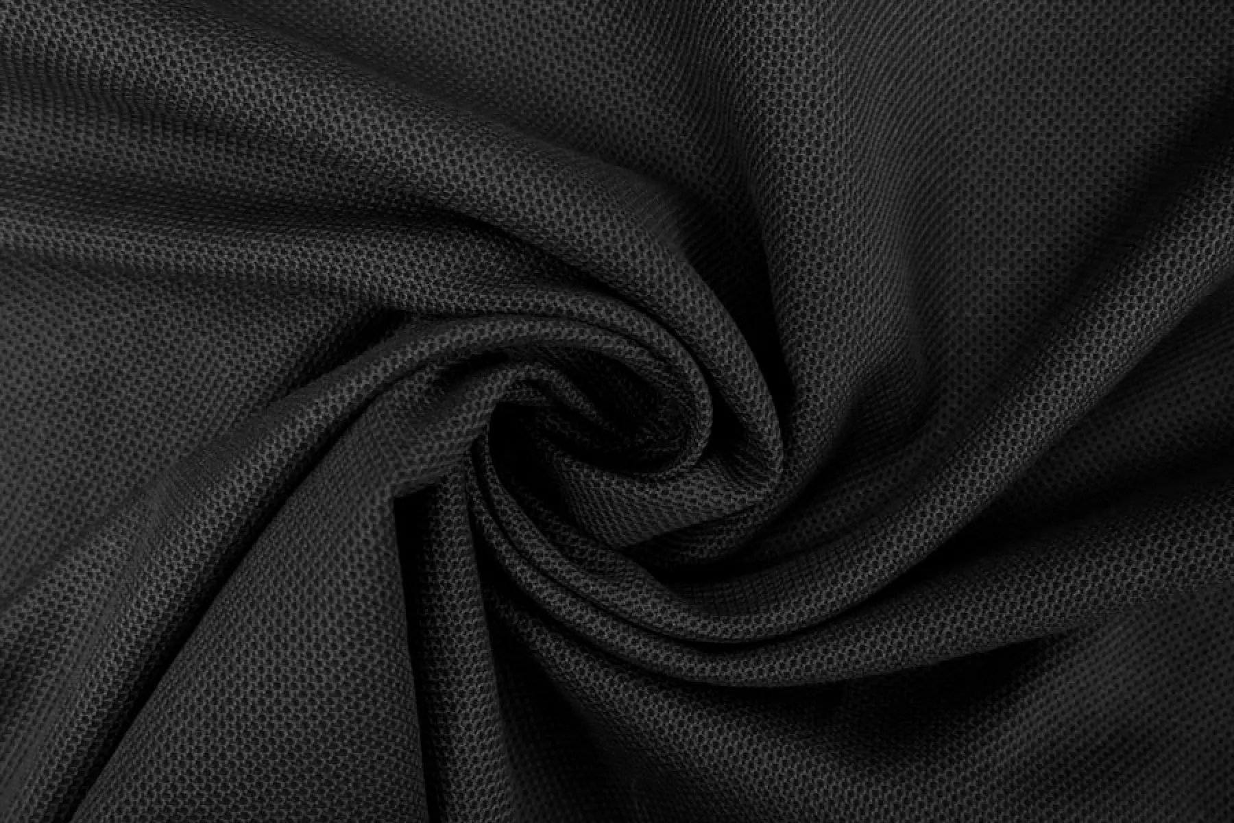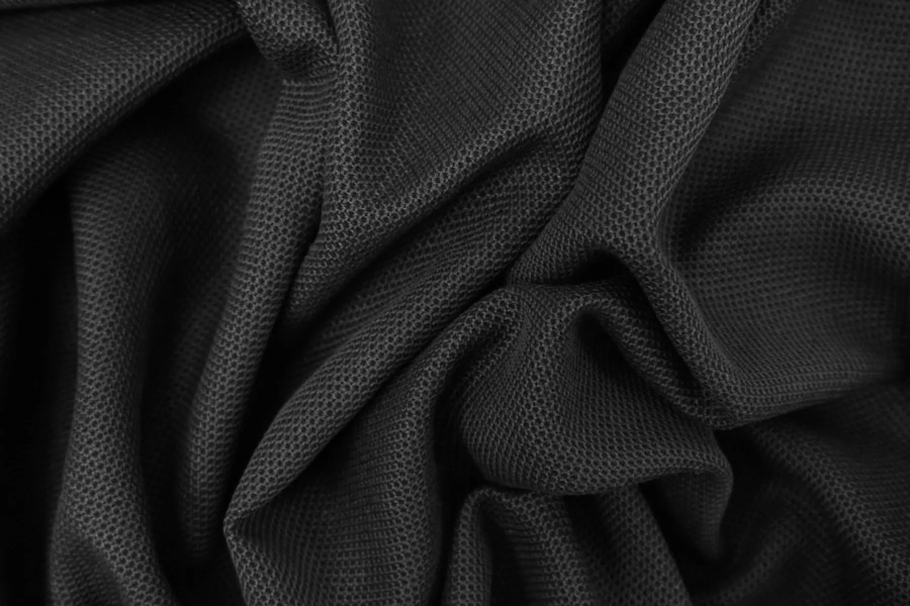 Костюмно-плательный хлопковый жаккард в очень темном сером цвете (графитовом). Тактильно немного суховат. Пластичный и держит форму, не тянется. Немного просвечивает и немного сминается. Подойдет на платья, жакеты, юбки, брюки (учитывайте, что не тянется).