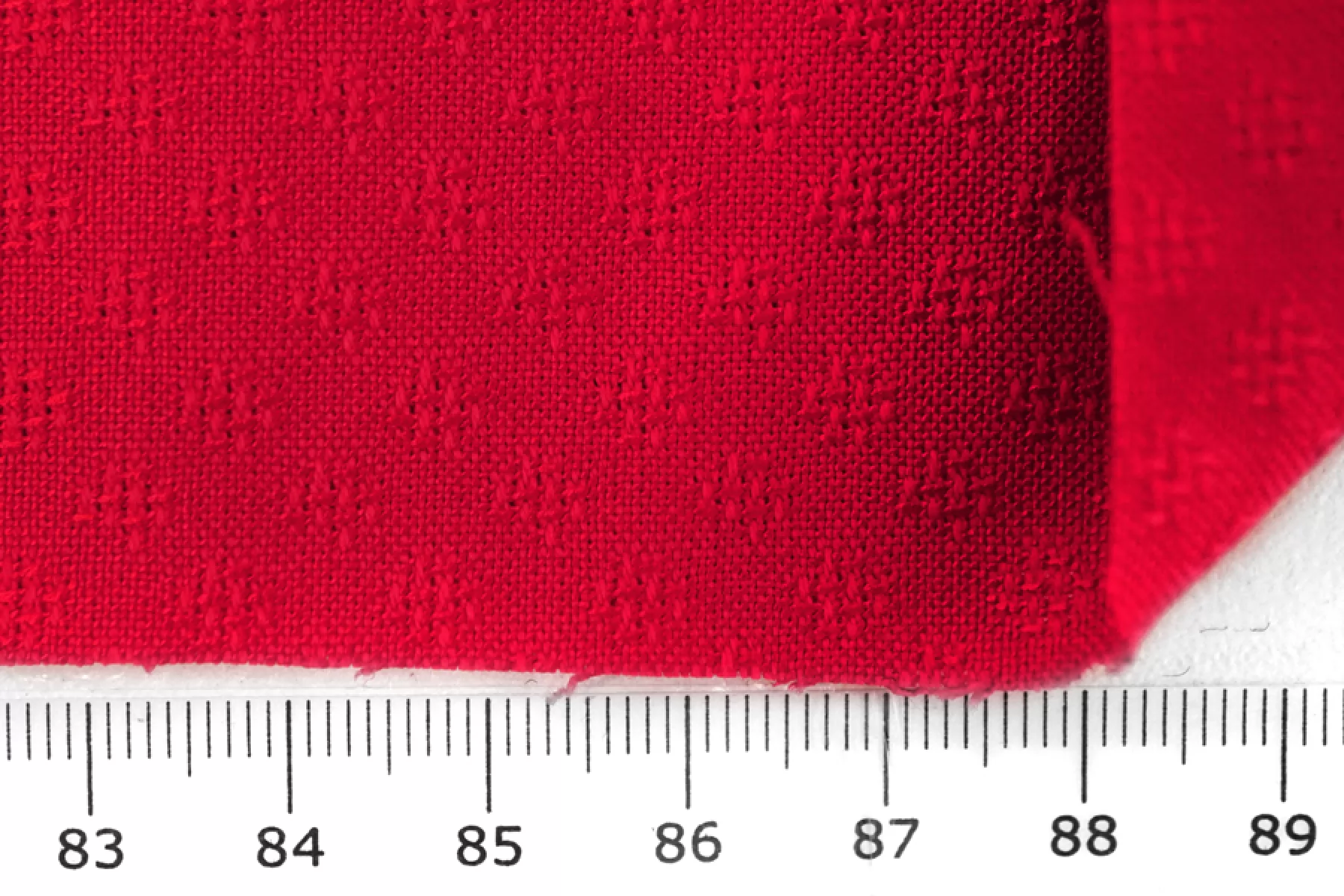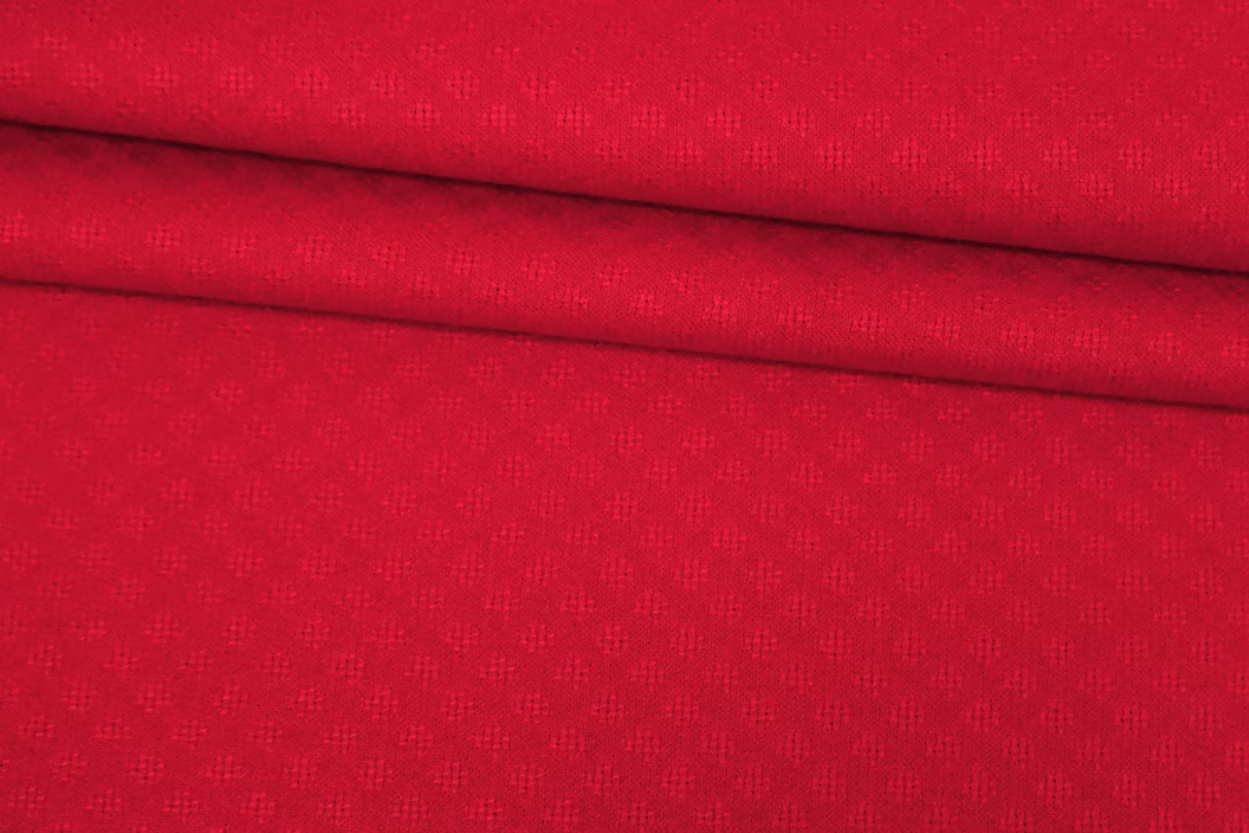 Костюмно-плательный жаккардовый хлопок в красном цвете. Выработка в виде мелкого орнамента. Материал мягкий, приятный наощупь. Упруго пружинит за счет небольшого содержания эластана. Сминается несильно и частично восстанавливается. Отлично драпируется и держит складки и форму. Обладает приятным лоском. Прекрасно подойдет на платья, юбки, жакеты, костюмные варианты и другое. При необходимости используйте подкладочный материал. Учитывайте усадку материала.