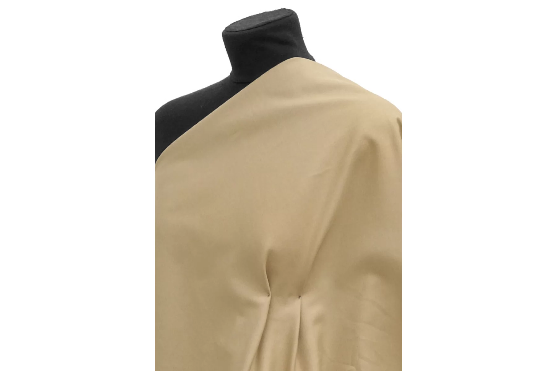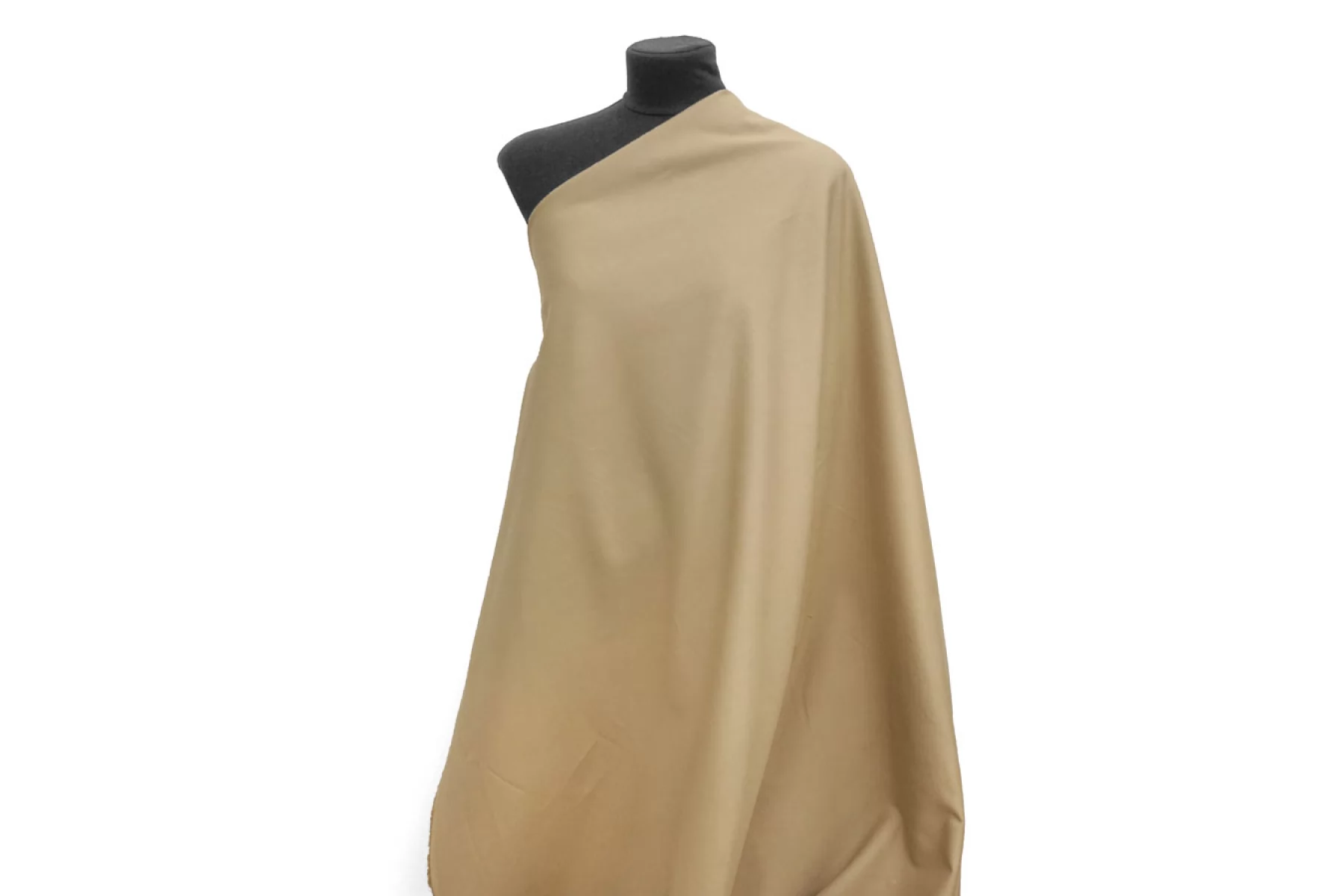 Итальянский костюмный хлопок диагонального плетения с добавлением шерсти от бренда BURBERRY, цвет бежевый. Мягкий и приятный наощупь. Держит форму но при этом пластичный, не тянется, не просвечивает. Достаточно плотный. Сминается. Подойдет для пошива костюма, пыльника, тренча, шерсть в составебудет давать тепло.