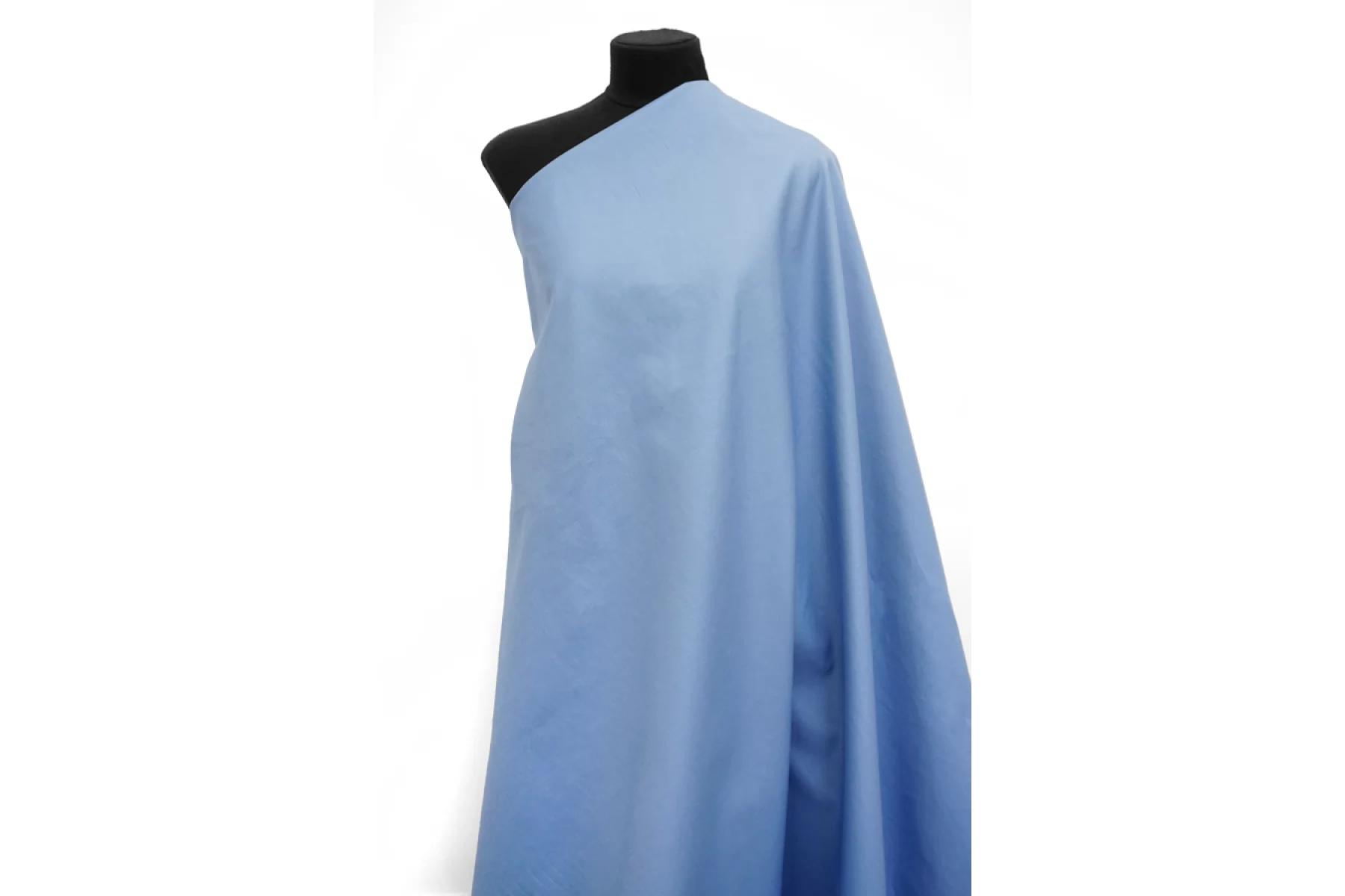 Шикарный итальянский хлопок костюмной плотности в голубом оттенке диагонального плетения. Материал плотный, толстенький, пластичный, приятный наоущпь. Не тянется. Хорошо держит форму. Не просвечивает. Сминается. Отличный вариант на платья, брюки, юбки. Учитывайте усадку.