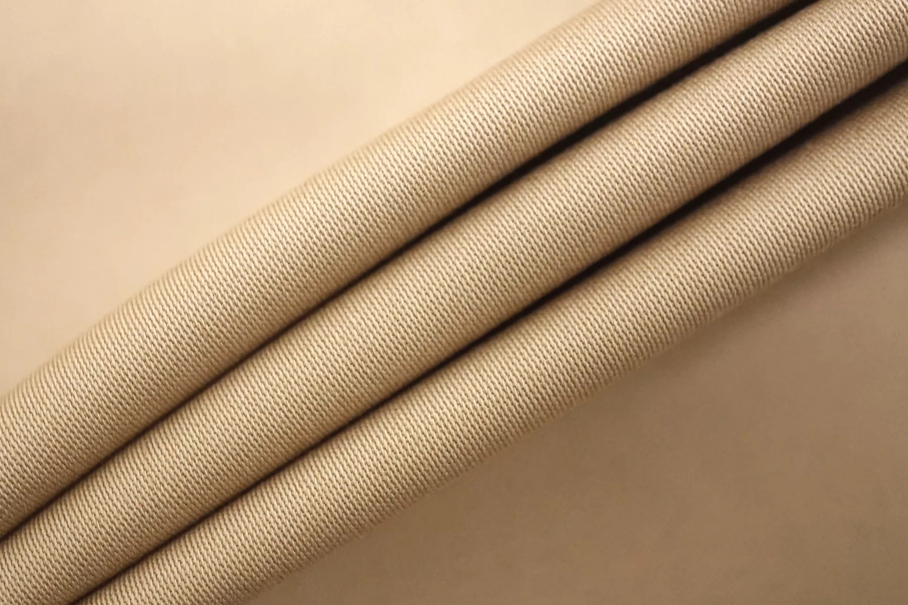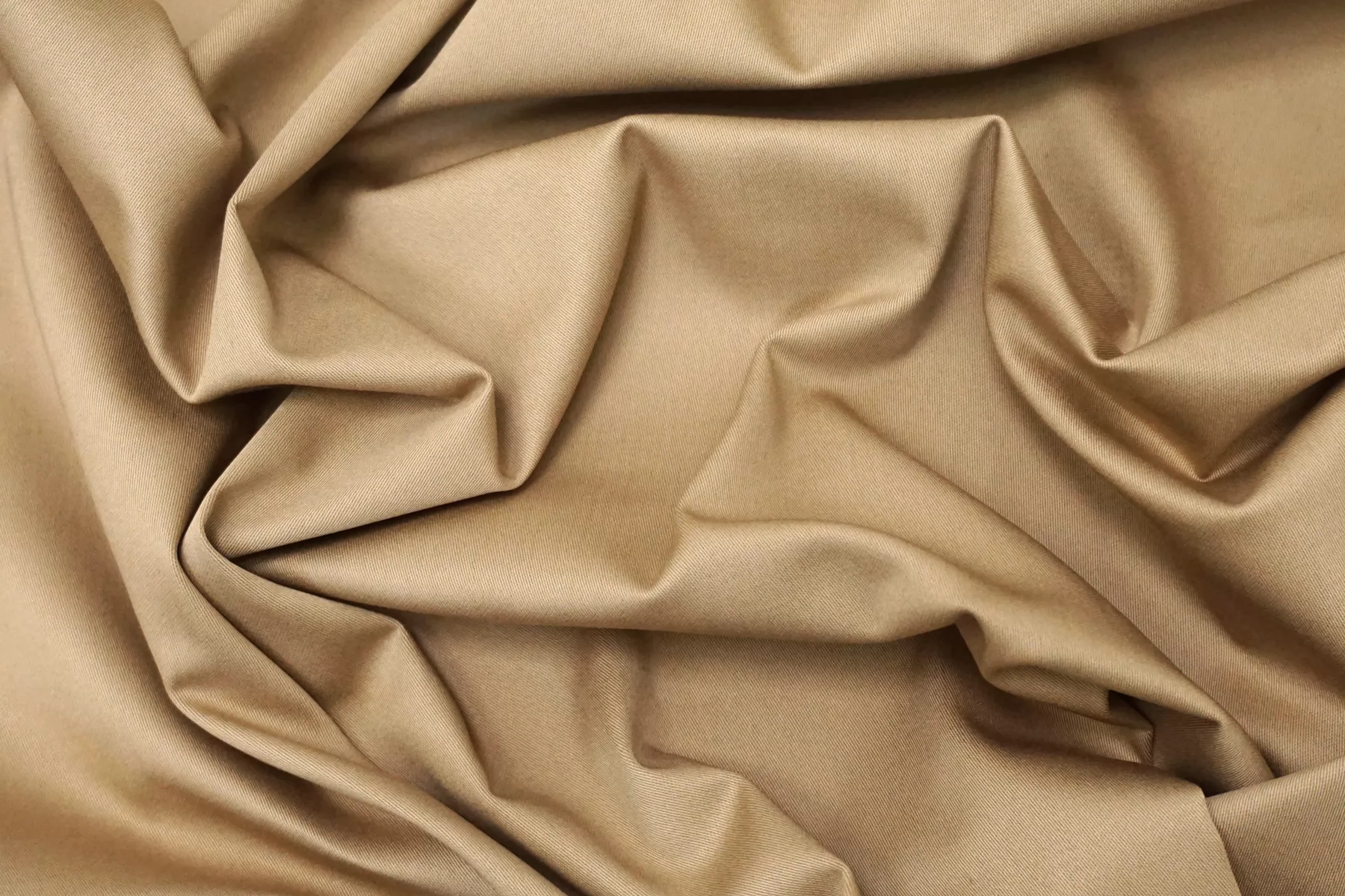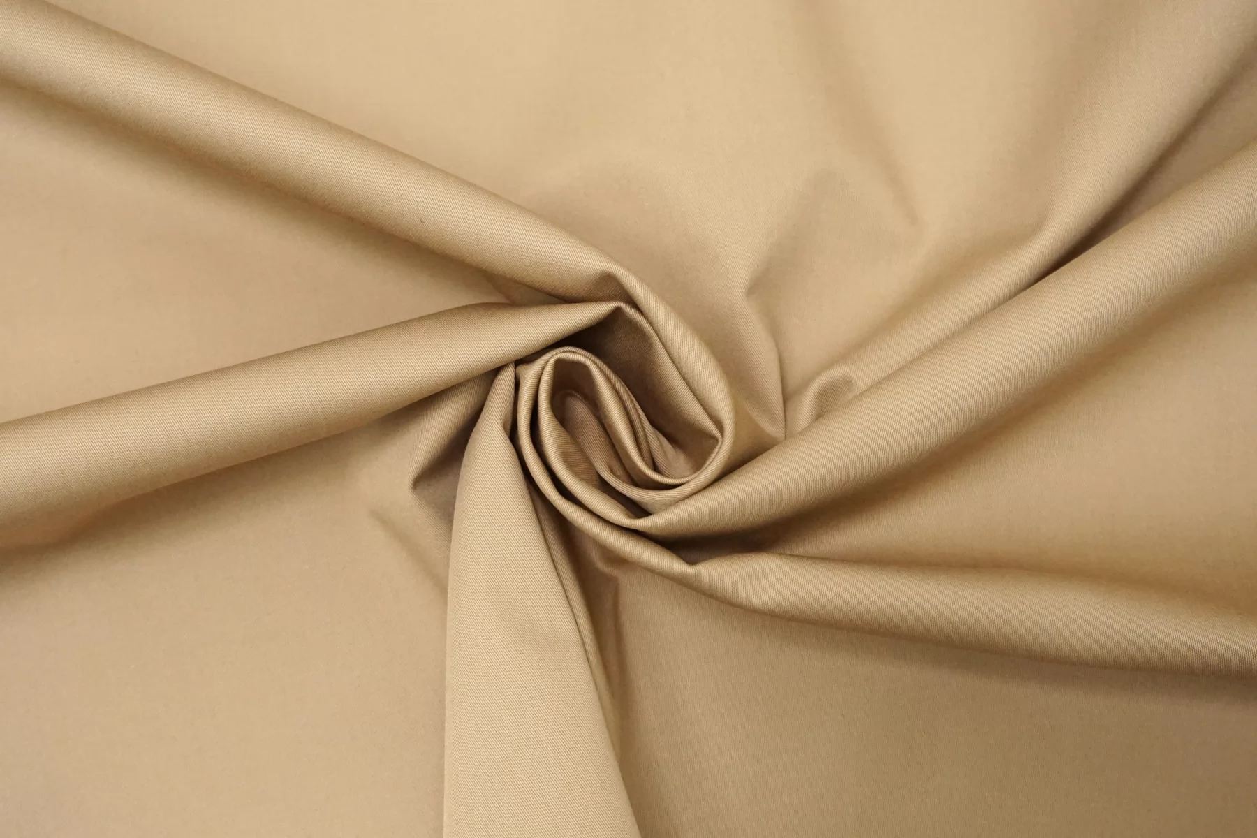 Хлопок костюмной плотности, диагонального плетения, в песочно-бежевом оттенке. Тактильно приятный, не грубый. Пластичный но форму держит. Мнется умеренно, тянется, не просвечивает. Отлично подойдет для пошива летних костюмов, брюк, юбок, платьев-сафари, можно на пыльник или тренч, но учитывайте что ткань воду не отталкивает.