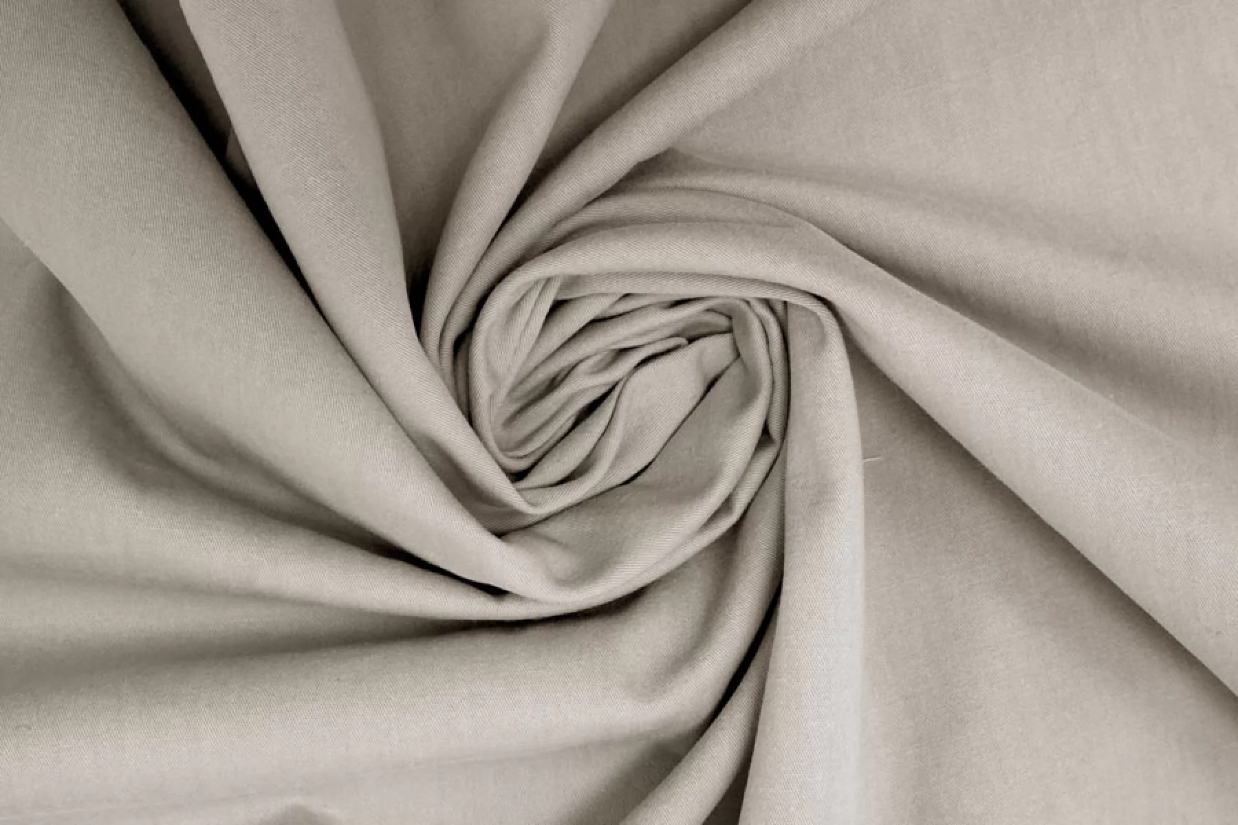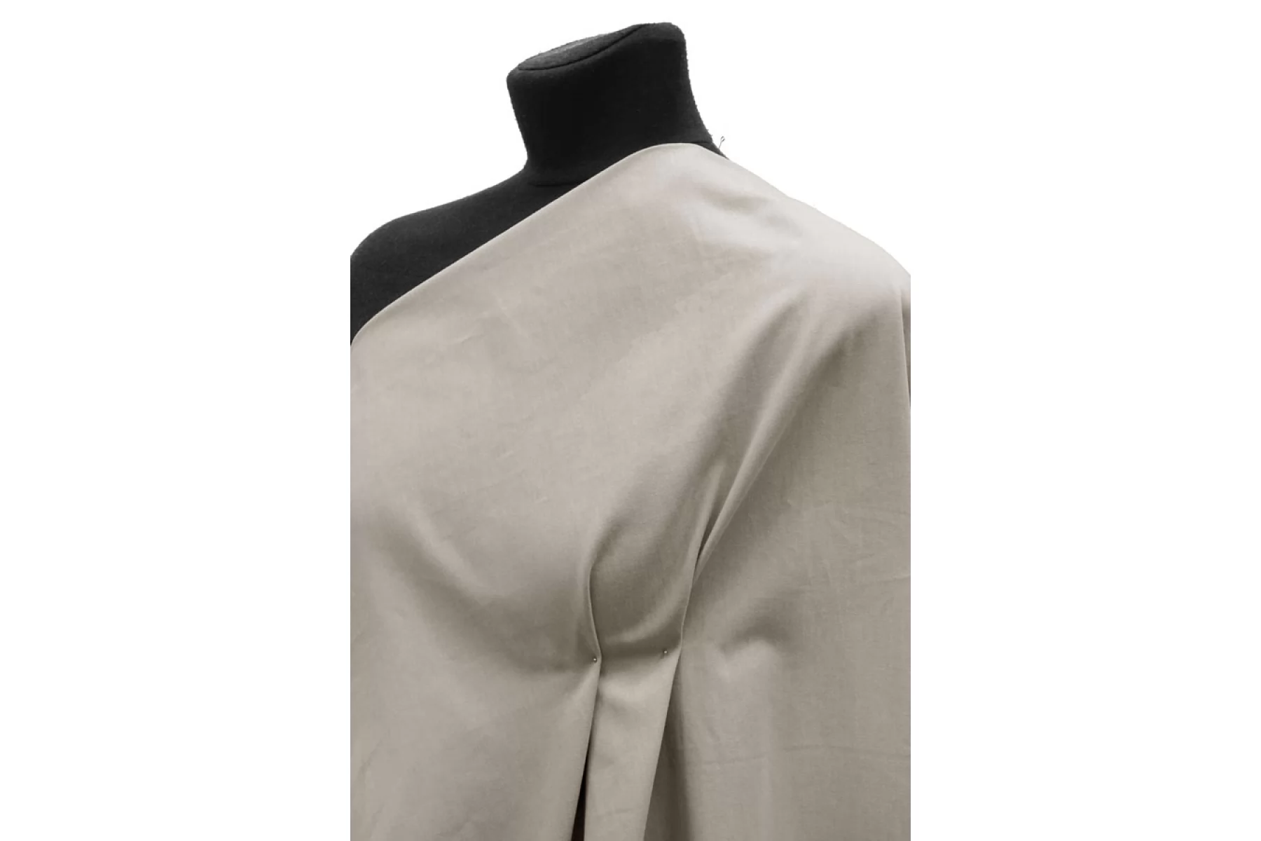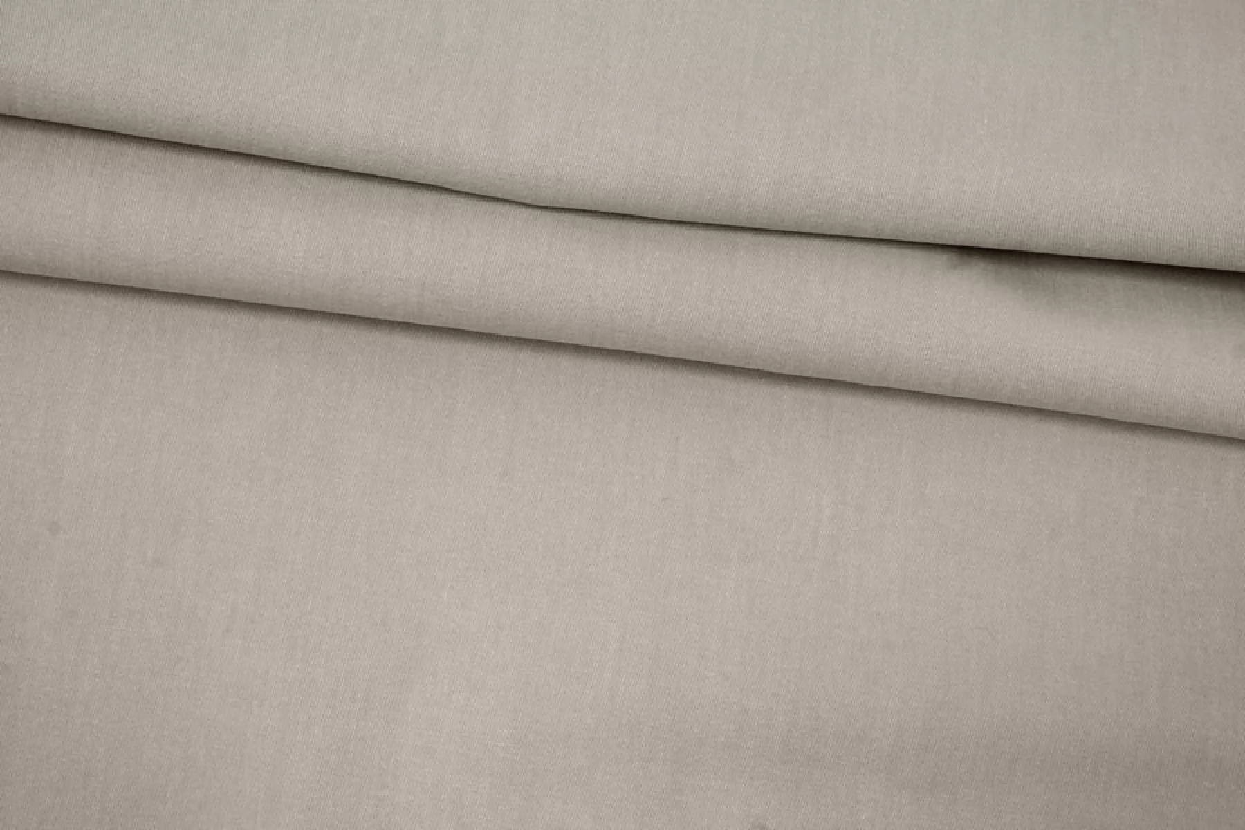 Отличного качества костюмный хлопок от Burberry диагонального плетения, с бархатистой поверхностью, в серо-бежевом цвете. Тактильно материал очень приятный, велюровый. Не просвечивает, не тянется. Мнется средне, держит форму. Шьем костюмы, платья, юбки, брюки. Можно использовать и для пошива тренча либо пыльника, но учитывайте что материал сразу промокает.