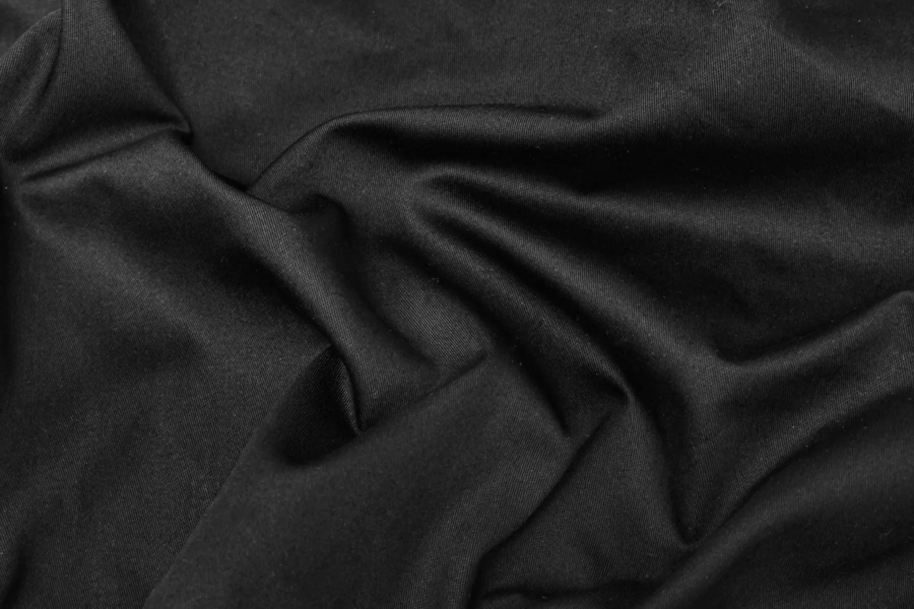Шикарный итальянский хлопок костюмной плотности классического черного цвета. Обладает красивым легким блеском. Плетение диагонально. Материал плотной, пластичный, гладкий. Не тянется. Хорошо держит форму. Не просвечивает. Сминается, но восстанавливается почти полностью. Отличный вариант на платья, брюки, юбки. Учитывайте усадку.