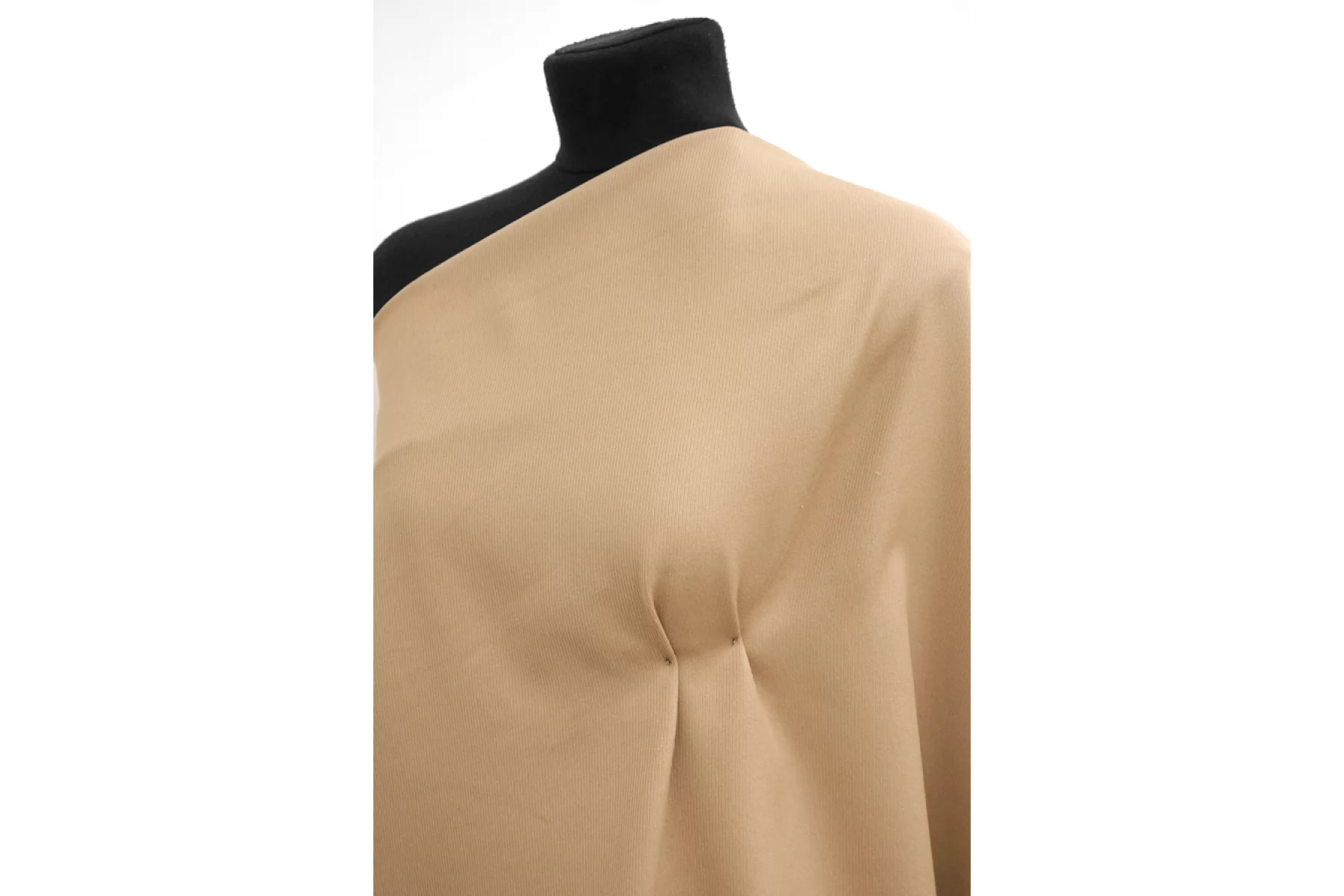 Шикарный итальянский хлопок костюмной плотности в песочном оттенке, с фактурным диагональным плетением. Материал примерно 1мм толщиной, пластичный, мягкий. Не тянется. Держит форму. Не просвечивает. Сминаемость средняя. Отличный вариант на летний костюм, платье, брюки, юбку. Учитывайте усадку.