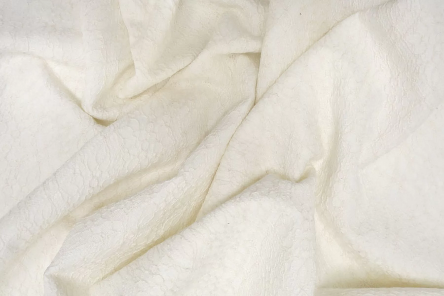 ВНИМАНИЕ!! Присутствуют вкрапления нитей разного цвета каждые 20 см. см. фото. Хлопок светлого молочного цвета, костюмной плотности, цветочное кружево поверх непрозрачной основы. Плотность костюмная, форму материал держит. Тянется. Просвечивает минимально силуэт. Подойдет для пошива необычных жакетов, платьев, юбок. Учитывайте усадку.