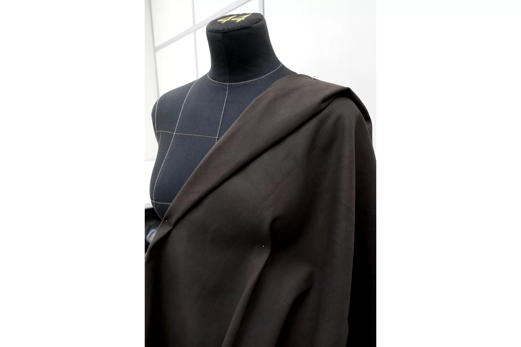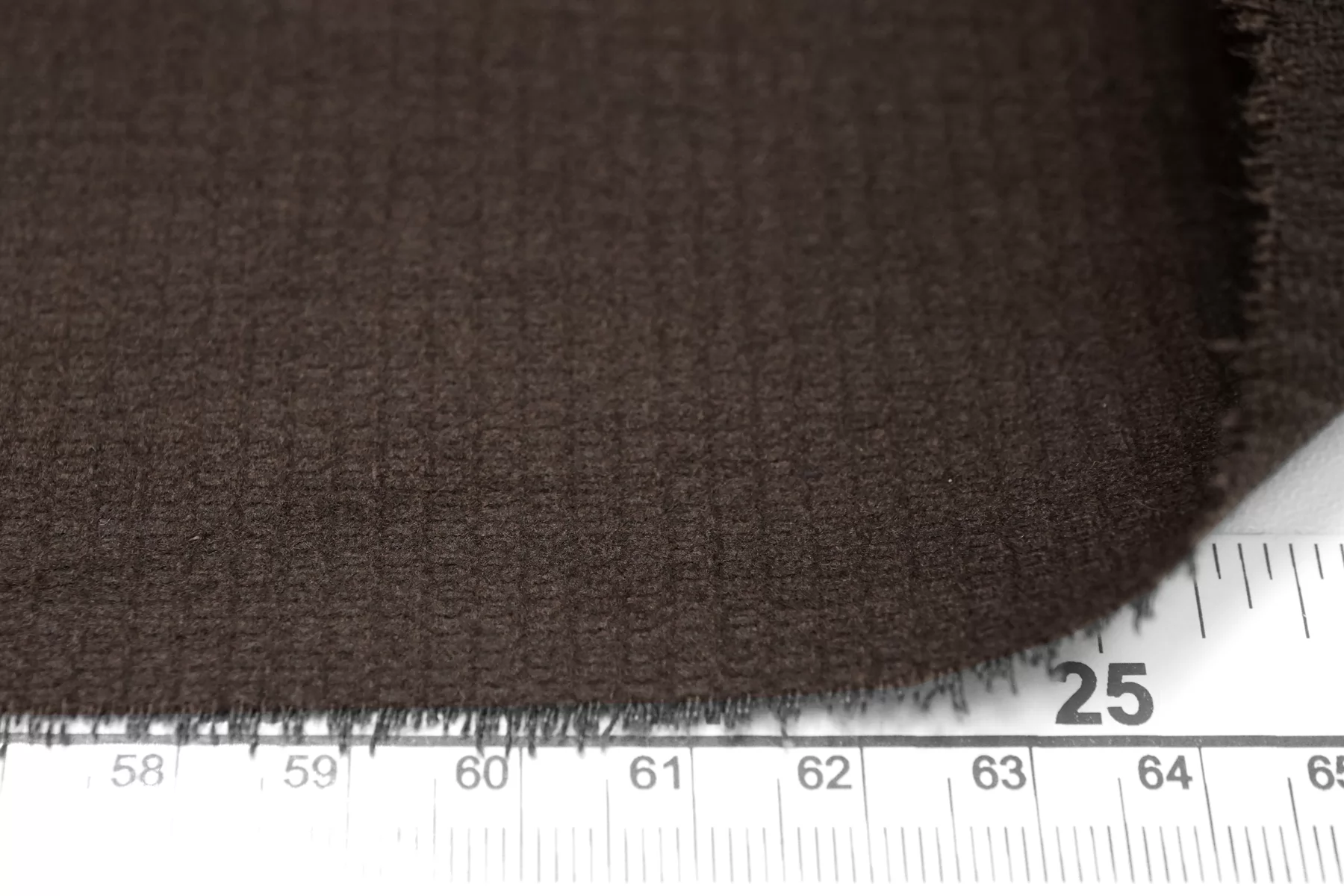 Хлопок костюмной плотности, в тёмном коричневом цвете, с фактурой в рубчик, на изнанке есть небольшое утепление (как велюр). Материал тактильно приятный, с изнанки бархатистый. Не просвечивает, не тянется, хорошо держит форму. Подойдет для формодержащих изделий - курток, джинсовок.