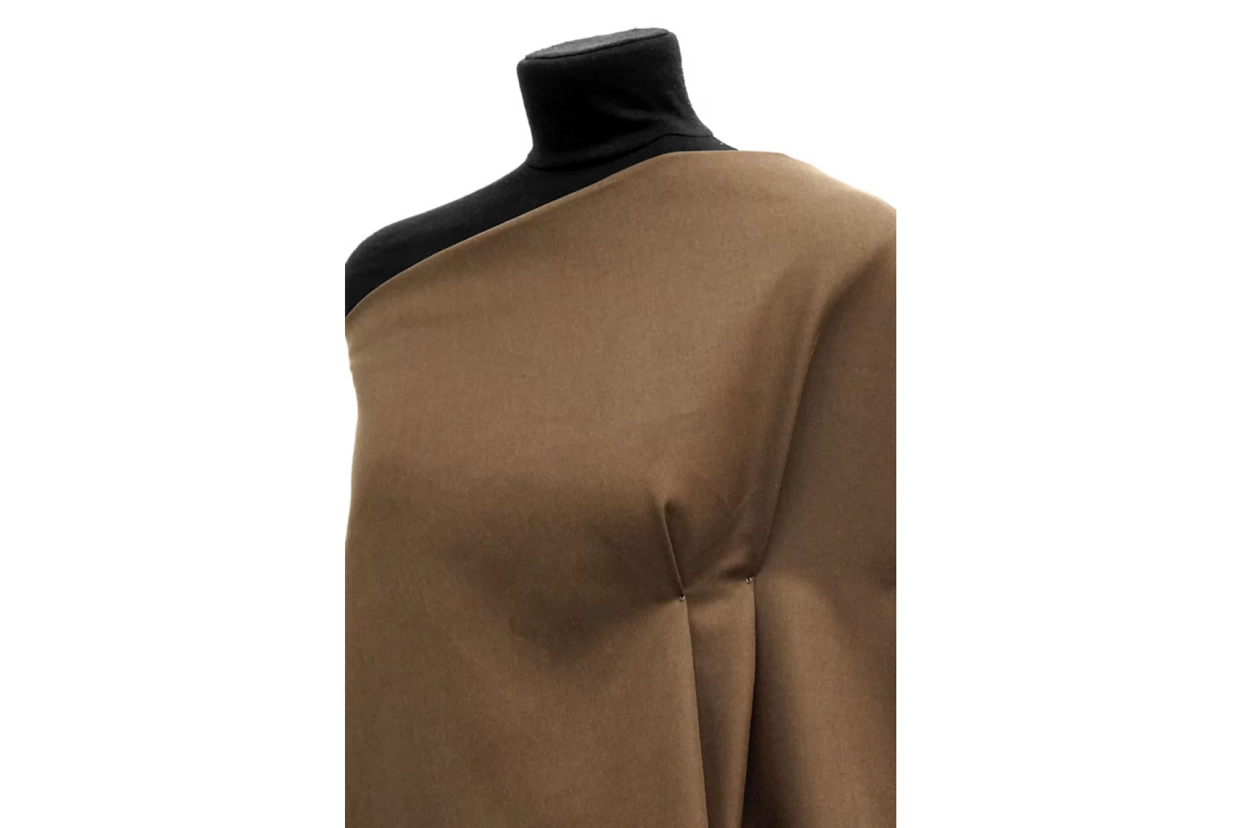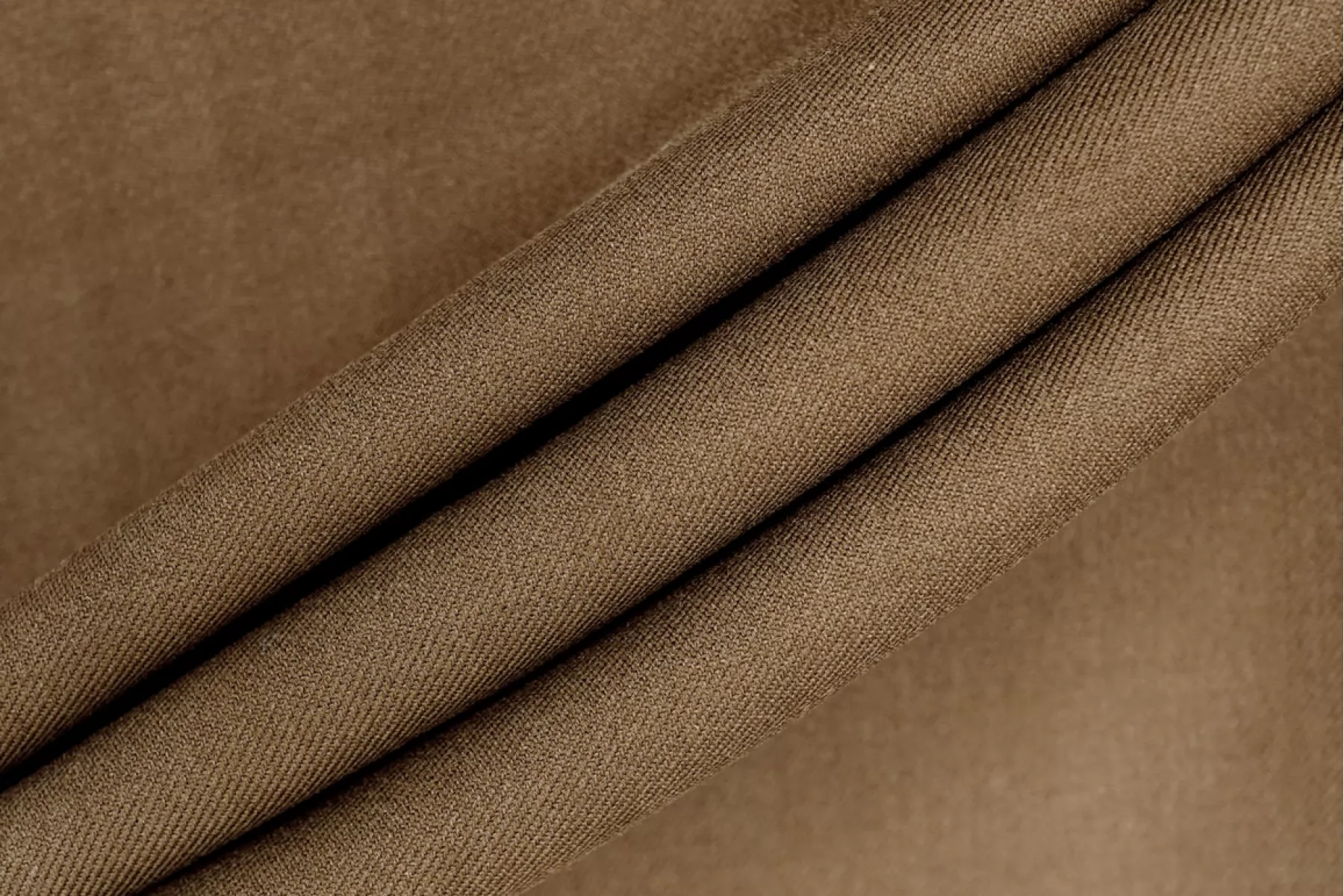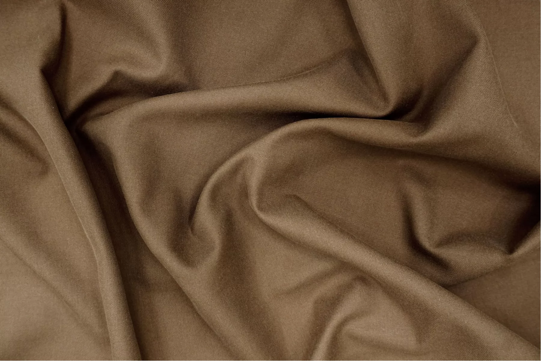 Итальянский костюмный хлопок с выраженной диагональю, оттенок коричневый хаки. Гладкий и мягкий наощупь, примерно 1 мм толщиной. С красивым блеском. Немного тянется, форму держит слао. Не просвечивает. Красив в складке. Подойдет для пошива костюма, платья, тренча, юбки или брюк.